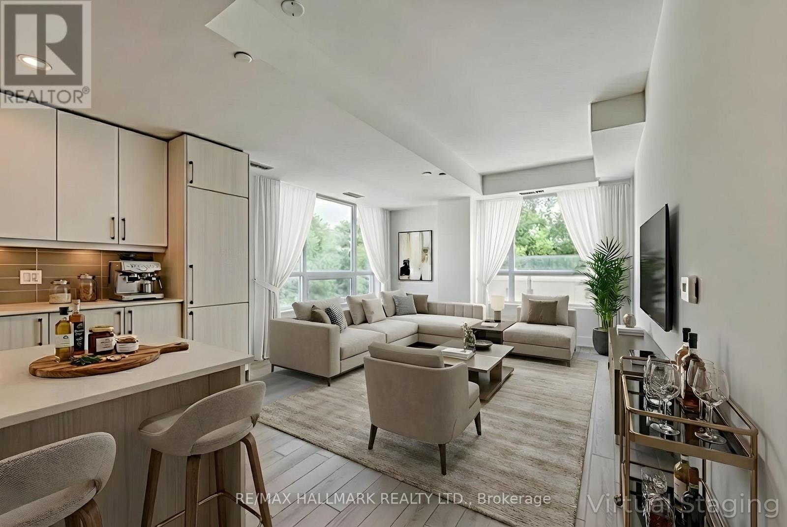 Welcome to Suite 247 at King Terraces, a rare offering that blends luxury, light, lifestyle, and an exceptional level of modern convenience. This southeast-facing corner suite features 963 sq. ft. of refined interior living paired with a sprawling 192 sq. ft. private terrace, creating an effortless indoor-outdoor flow perfect for weekend getaways or everyday retreat-style living.Designed with distinction, this 2-bedroom, 2-bathroom residence offers a split-bedroom layout for enhanced privacy, 9-foot ceilings, and vinyl flooring throughout. Oversized windows flood the home with natural light, highlighting the warm and sophisticated ambiance in every room. The contemporary chef's kitchen is finished with integrated appliances, sleek quartz countertops, and modern cabinetry, ideal for entertaining or unwinding in style.The open-concept living and dining area extends seamlessly to the terrace, bringing fresh air and outdoor tranquility into your daily routine. The primary bedroom features a spa-inspired ensuite with a walk-in glass shower, while the secondary bedroom provides its own quiet comfort with access to a nearby full bath.Unique to this suite is its EV parking space, a rare and highly sought-after feature in the building, along with a storage locker and high-speed internet included for added convenience.Residents of King Terraces enjoy access to 5-star, resort-calibre amenities, including a spa-like outdoor swimming pool, a steam room, a rooftop lounge, a state-of-the-art fitness centre, an elegant party lounge, and 24-hour concierge. The building also includes advanced digital security systems, offering secure, keyless door access for peace of mind.Perfectly situated near major transit, top private schools, boutique shopping, fine dining, and just a short drive to the airport, Suite 247 delivers a lifestyle of modern luxury, comfort, and unmatched convenience. (id:4555)