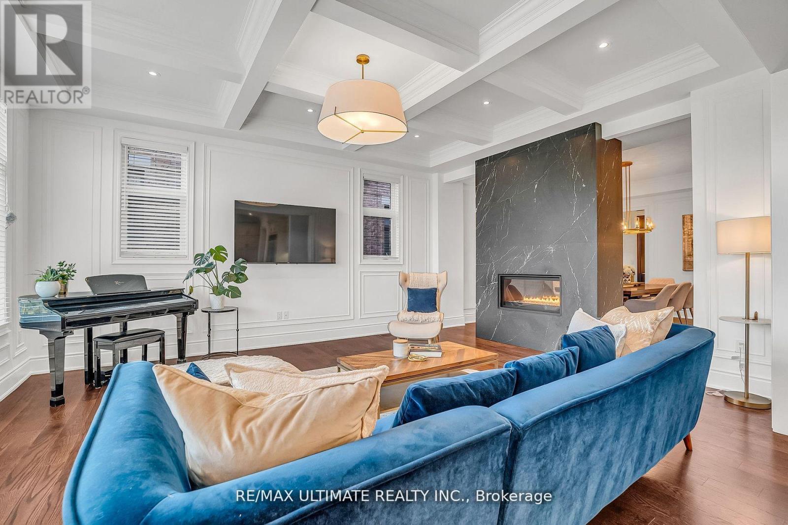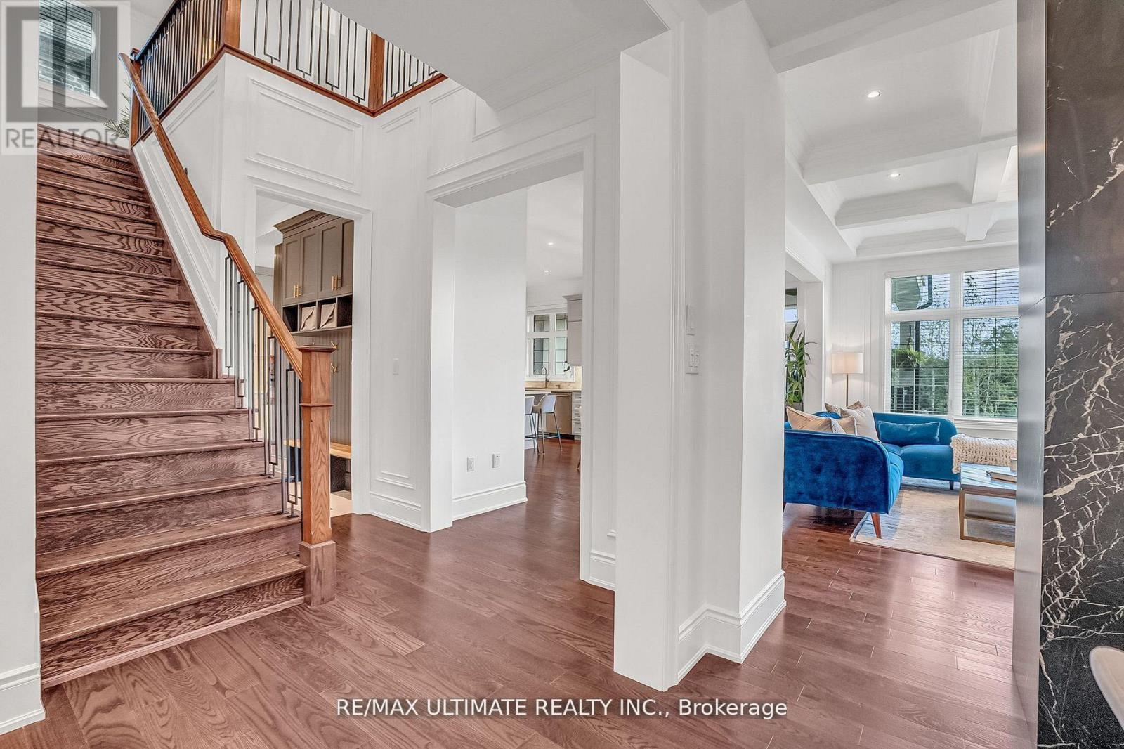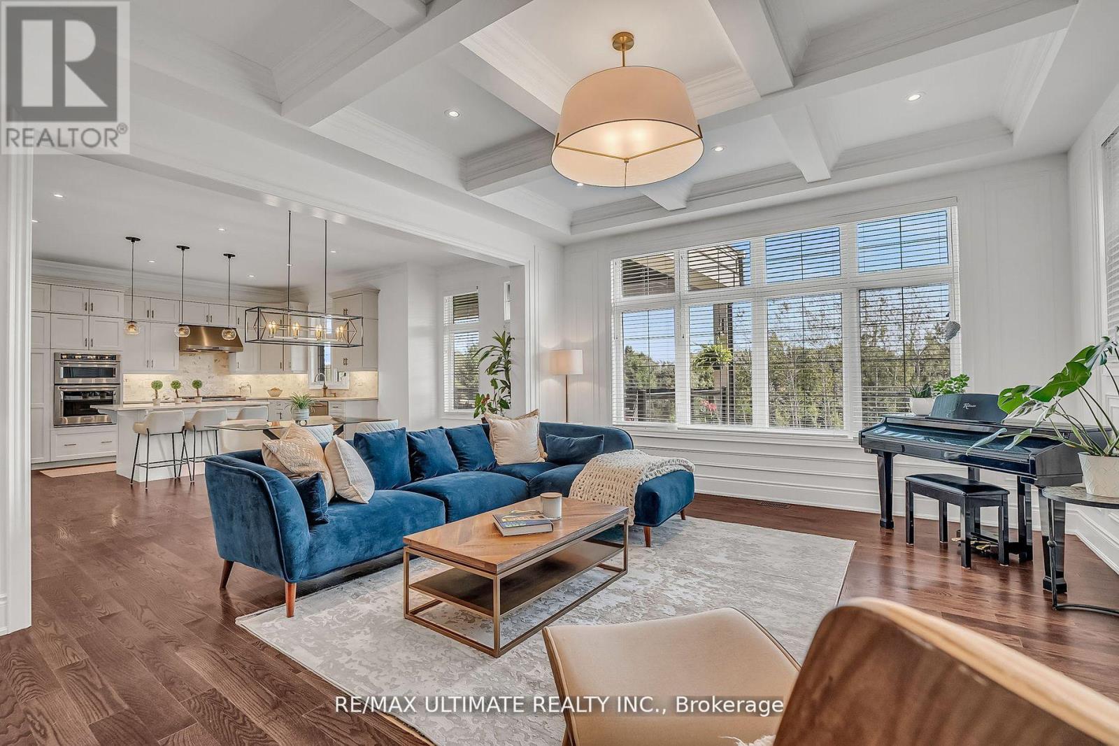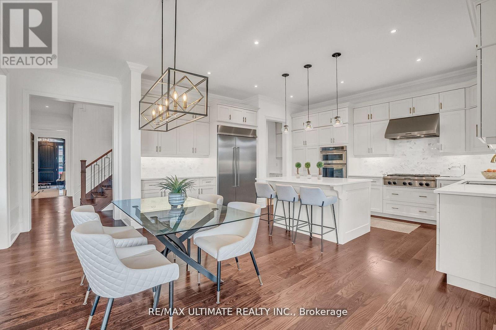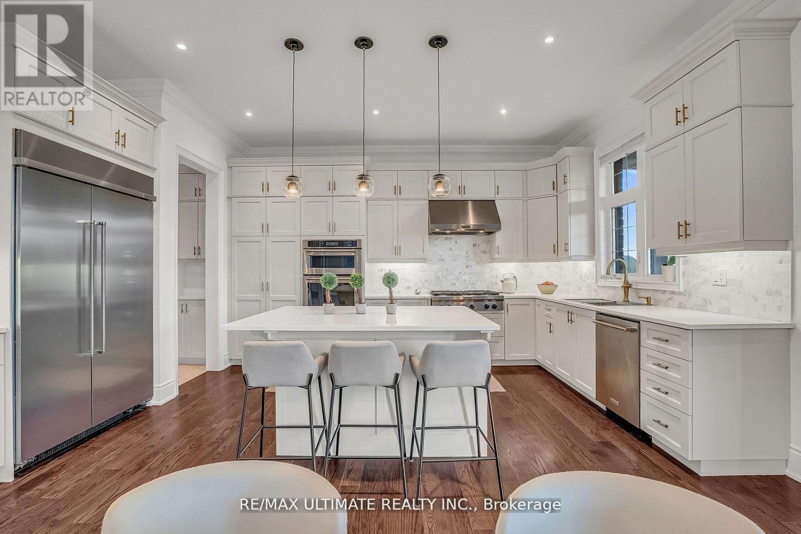 Executive sun filled luxury meets nature on a ravine lot tucked on a quiet cul de sac. Stunning just under 4000 ft2 executive home on a south-facing ravine lot with walkout lower level. Featuring 10 ft ceilings on main, 9 ft upstairs, 9ft underpinned lower, hardwood floors, and designer finishes throughout. The dream kitchen boasts quartz countertop, custom cabinetry, hidden pantry wall, servery and ample storage. Over 300k in improvements of custom upgrades and designer finishes. Open concept living room with dual-sided fireplace flows into the formal dining, perfect for entertaining. Upstairs offers a flexible family room (easily a 5th bedroom), laundry, and 4 generous bedrooms, each with its own ensuite or semi-ensuite. The primary retreat includes a spa-like ensuite, his & hers vanities with free standing tub and oversized shower. Elevator space designed in. Enjoy outdoor living on the new oversized covered Loggia overlooking the ravine w/ gas fireplace and BBQ gas line. Add a pool or fire pit to the backyard. See feature sheet for details. Minutes to Hwy 400, GO Transit, Country Day School, Villanova and Zancor Recreation details. Don't miss this must see multi-generational home. (id:4555)