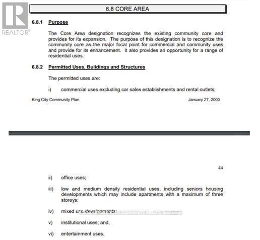 Extraordinary opportunity located right in the heart of King City, a truly exceptional 53 x 200 ft developable lot that is bursting with potential and ready to shape the future of the King City Core! Currently operating as a professional office, this charming property boasts a well-designed layout, including 5-6 offices, a reception area, a spacious boardroom, a kitchen, 2 bathrooms, and a convenient kitchenette. The expansive lot features ample parking for 8-10 vehicles, with room for expansion to accommodate even more. This property is ideal for a variety of professional uses such as medical practices, law firms, accounting offices, engineering firms, or real estate agencies. It also holds the potential to be converted into a residential property to suit your vision. Strategically located just steps from the Keele and King Road intersection, this property offers excellent visibility, signage opportunities, and proximity to public transit, ensuring convenience for clients and employees alike. The full basement provides additional storage, while three separate entrances offer flexibility for multi-use configurations. With no heritage designation, the property allows for future development or expansion without restrictions, making it a truly valuable investment. Whether you're looking to renovate for your business needs, convert into a residence, or develop for future growth, the possibilities are endless. (id:4555)