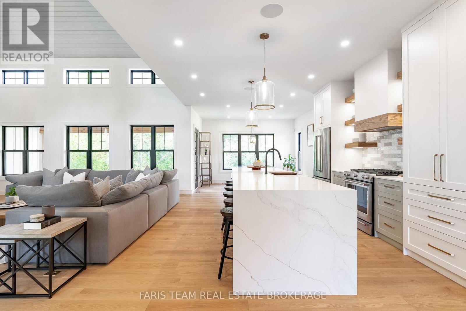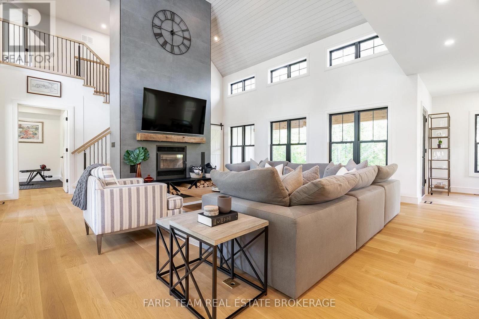 Top 5 Reasons You Will Love This Home: 1) Set on an expansive 33-acre homestead, this private luxury retreat is immersed in a nature-filled backdrop, boasting acres of private trails ideal for hiking and snowmobiling, creating a rare opportunity for year-round recreation, exploration, and outdoor living in total privacy 2) Step into modern luxury with this four bedroom, three bathroom home, just two years old, showcasing a chef-inspired kitchen with quartzite countertops, a striking fireplace, engineered hardwood floors, and sleek porcelain tiles throughout 3) Built for comfort and efficiency, the home is crafted with spray foam insulation and advanced Zip System exterior sheathing, delivering exceptional durability, impressive energy efficiency, and year-round climate control 4) Thoughtfully curated for modern living, the home includes a built-in Sonos sound system, designer plumbing fixtures, security cameras, and a 400-amp electrical service, ensuring convenience and future-ready functionality 5) With an approved minor variance and a thoughtfully designed septic system, the property allows for future expansion, ideal for a guest house, workshop, or additional living space, while remaining close to amenities despite its peaceful, secluded setting. 2,786 above grade sq.ft. plus an unfinished crawl space. (id:4555)