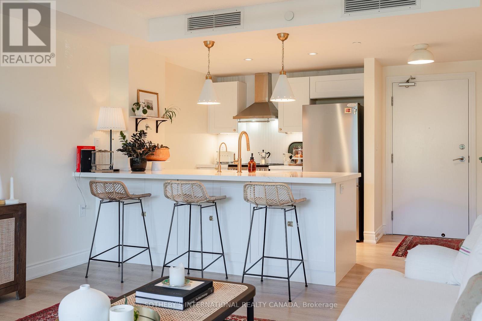 It's not often that you find a condominium fitting into a natural landscape. And it's not often that you find one that takes advantage of village life. 149 Church Street is focused on both with its beautiful setting and a stroll away from bespoke coffee shops, boutiques and sourdough! Larger than most, Suite 216 includes updated bathrooms, with heated floors, a kitchen that includes morning coffee over quartz counters and cabinetry that marries well with a collection of cookbooks. A rare light-filled dining area and garden view terrace as well as new flooring and custom light fixtures complete the picture. Laundry, HWT and heating unit within each suite. This smaller boutique building includes a pool, exercise room, party room with kitchen, games and library spaces. A private green space. The village has a life of its own with events throughout the year that bring local interests and community together. (id:4555)