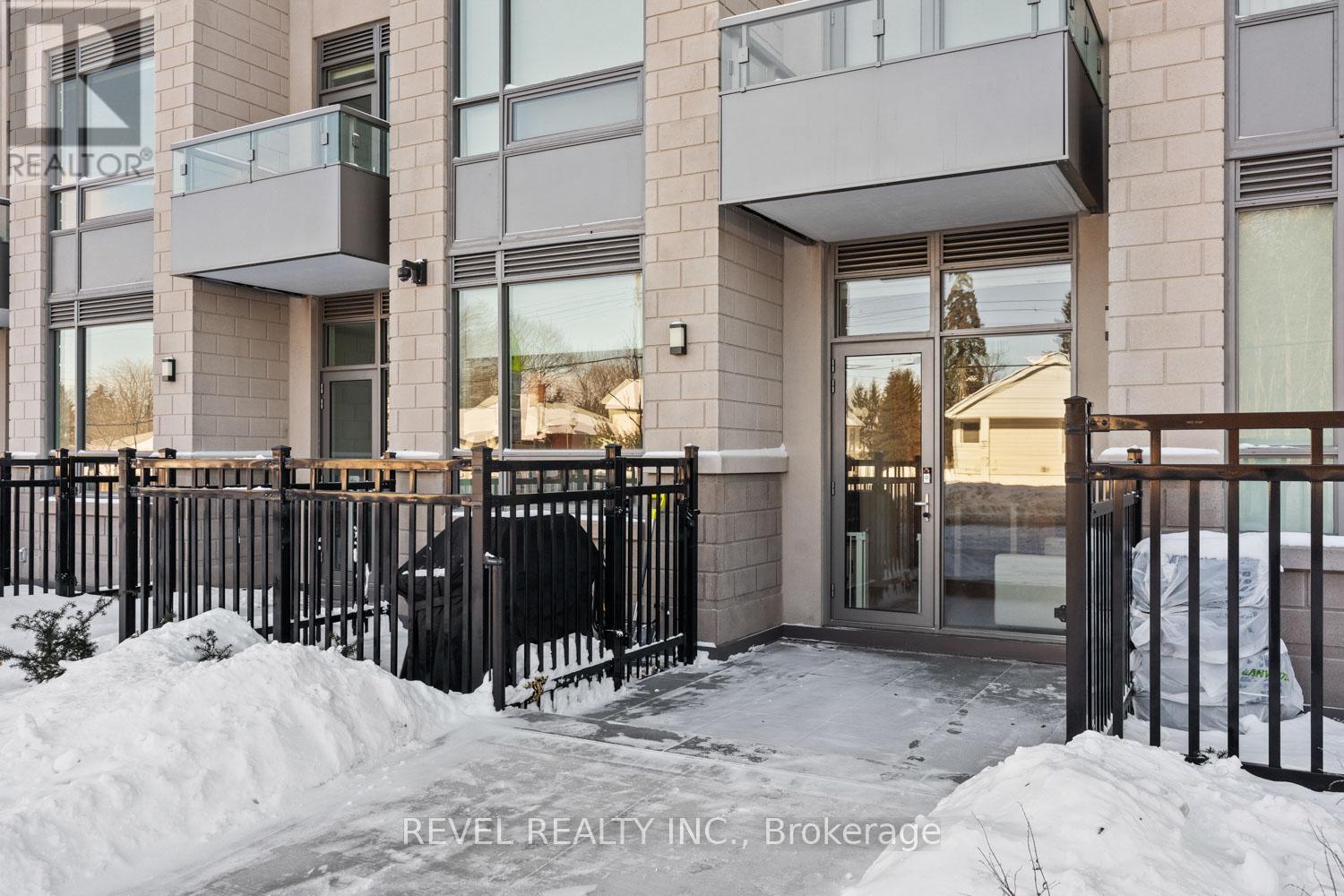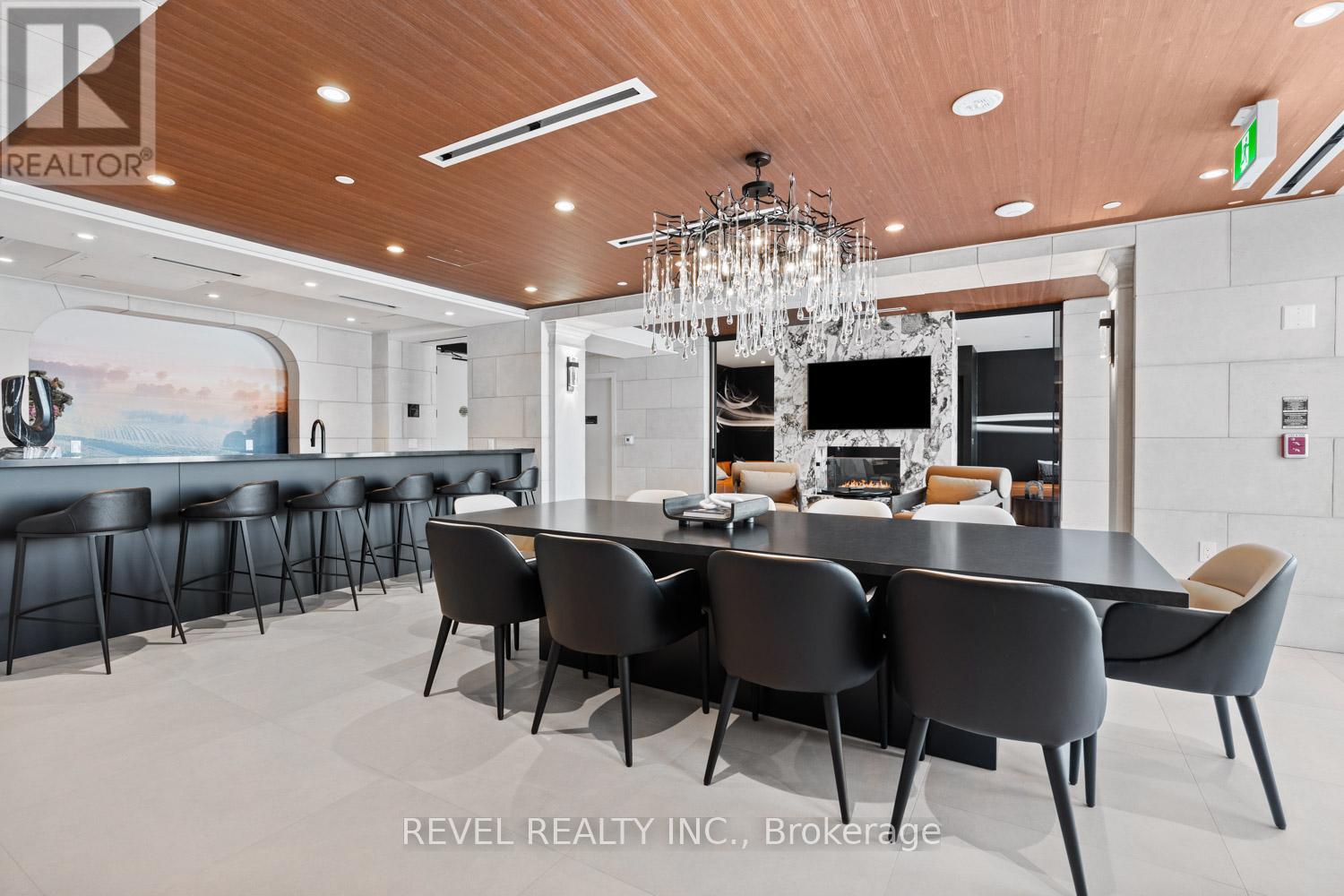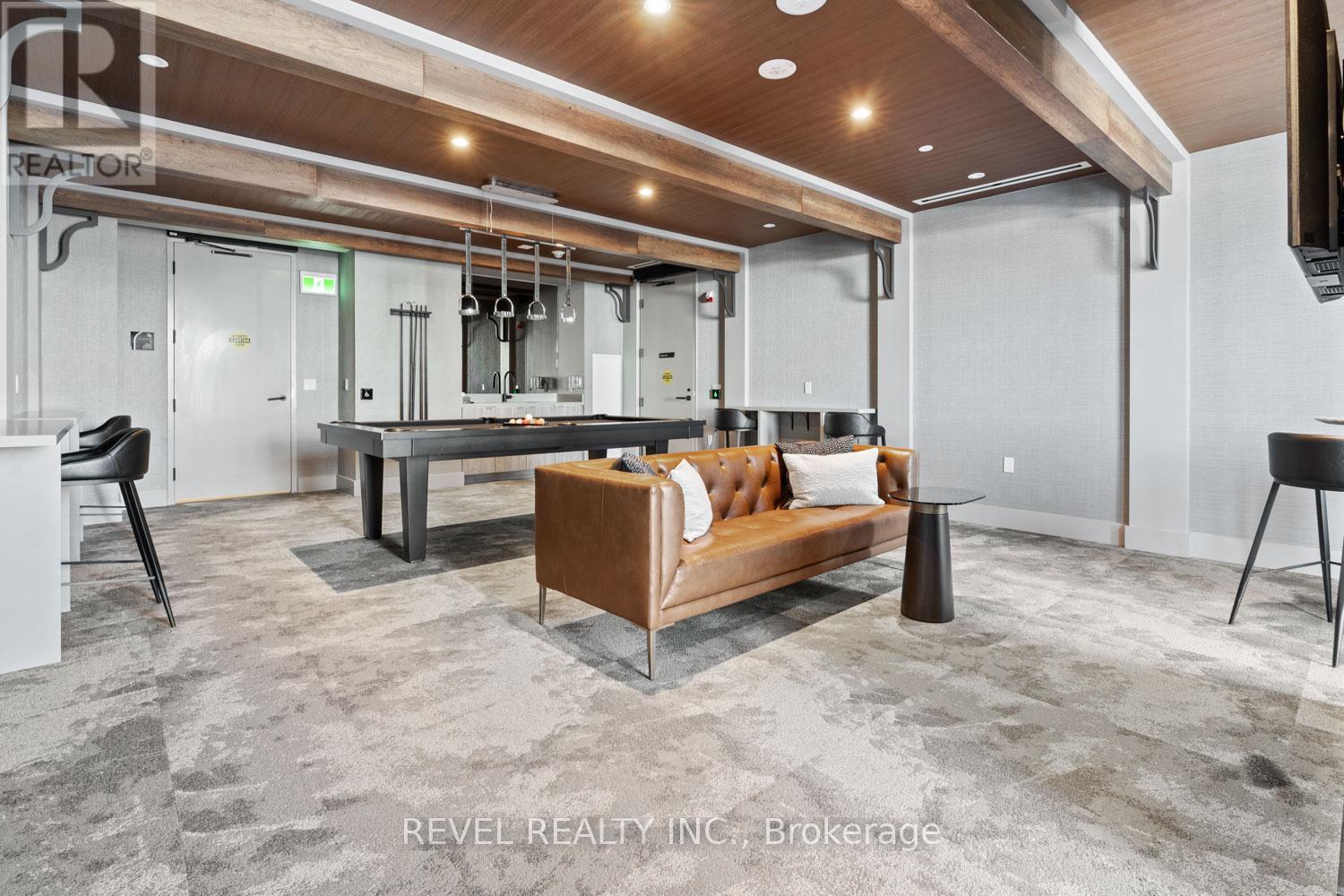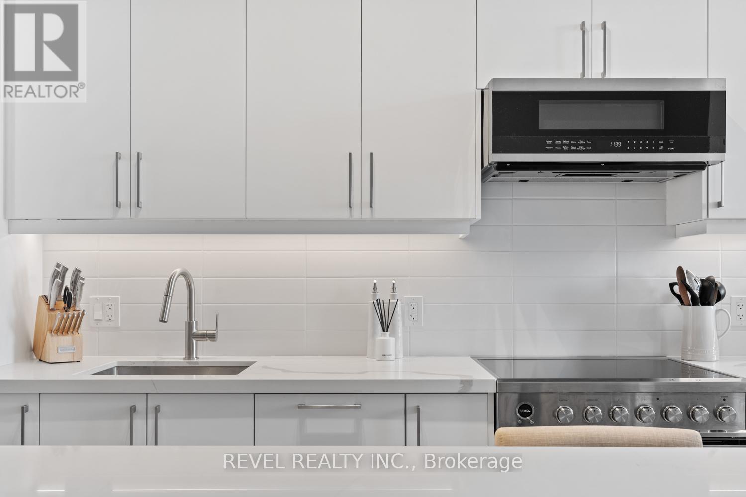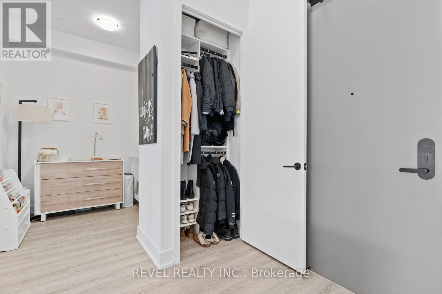 Welcome to Suite 123, a beautifully designed 667 sq. ft. unit + private outdoor patio. A residence that blends modern comfort with upscale, custom finishes. Featuring 10-foot ceilings and floor-to-ceiling windows in the living area, this home is filled with natural light and offers an airy, sophisticated atmosphere.The open-concept kitchen has been fully upgraded, showcasing custom cabinetry extended to the ceiling, integrated appliances with full size stove and microwave , and a stunning custom quartz countertop island with seating for up to 10-perfect for entertaining, hosting, or everyday living. Thoughtfully designed custom closets throughout elevate both function and style. A spacious den offers versatility as a home office or guest space, while two full bathrooms provide added convenience and privacy. Step outside from your private ground floor entrance to your walk-out terrace, complete with a dedicated gas line for bbq and water bib, creating an ideal setting for outdoor dining, entertaining, or relaxing evenings at home. Residents of King Terraces enjoy access to a curated collection of amenities, including a resort-style pool, sauna, steam room, rooftop terrace, fitness centre, elegant party lounge, and 24-hour concierge service. Suite 123 is where luxury design meets everyday ease-a rare ground-floor retreat with exceptional upgrades and seamless indoor-outdoor living. (id:4555)