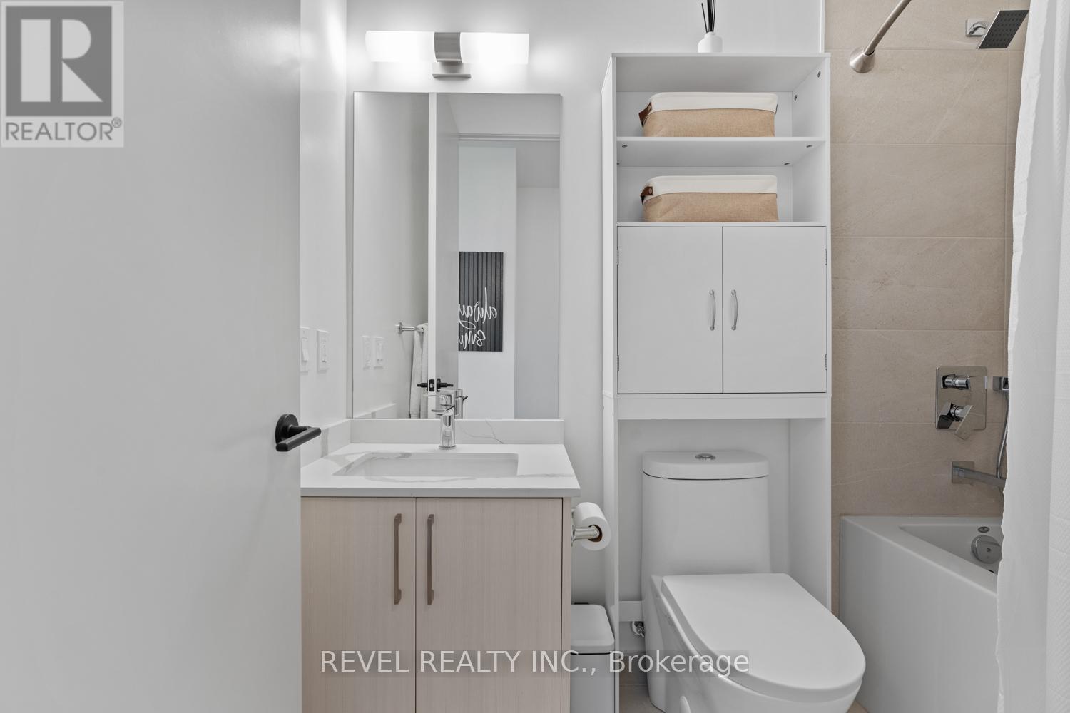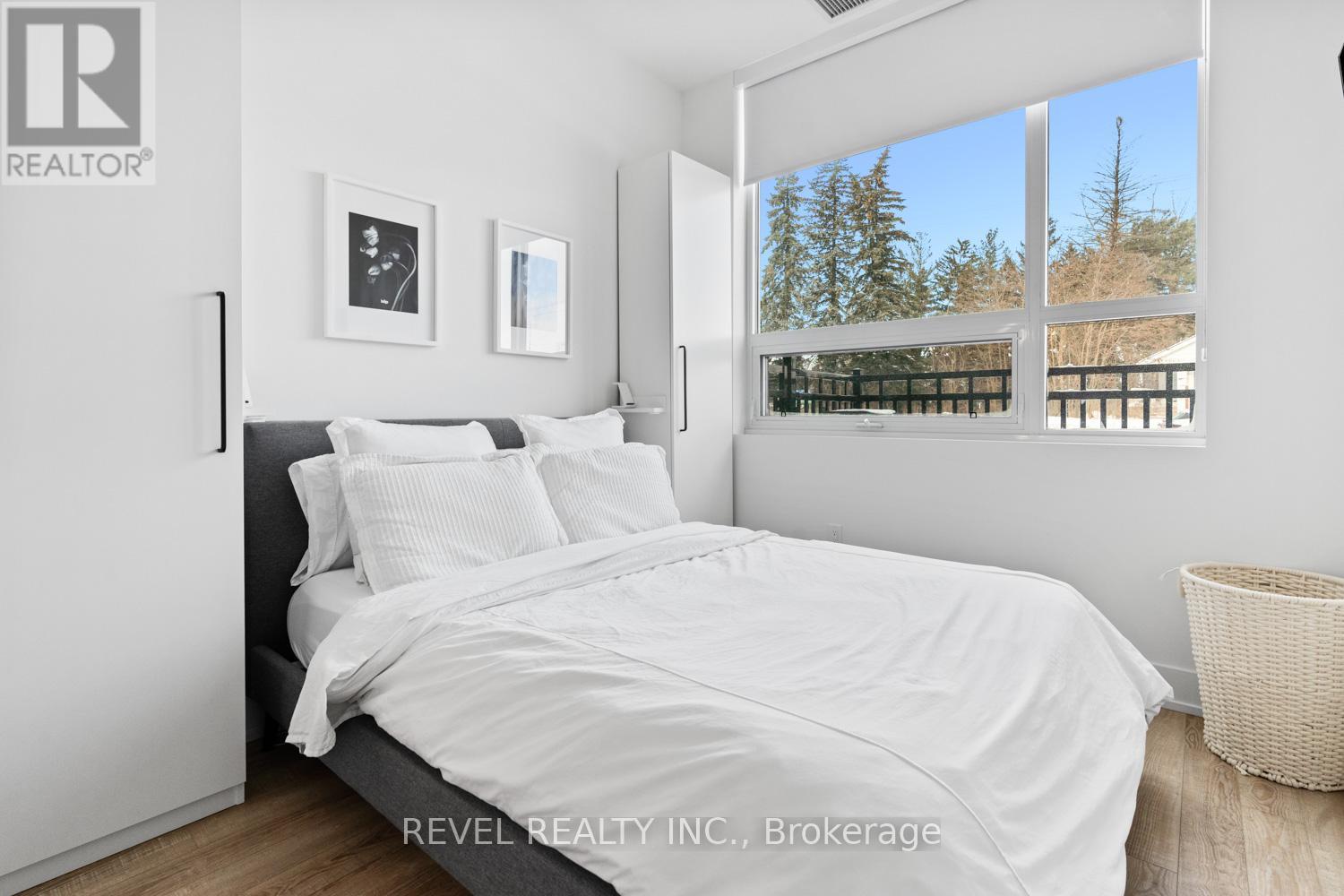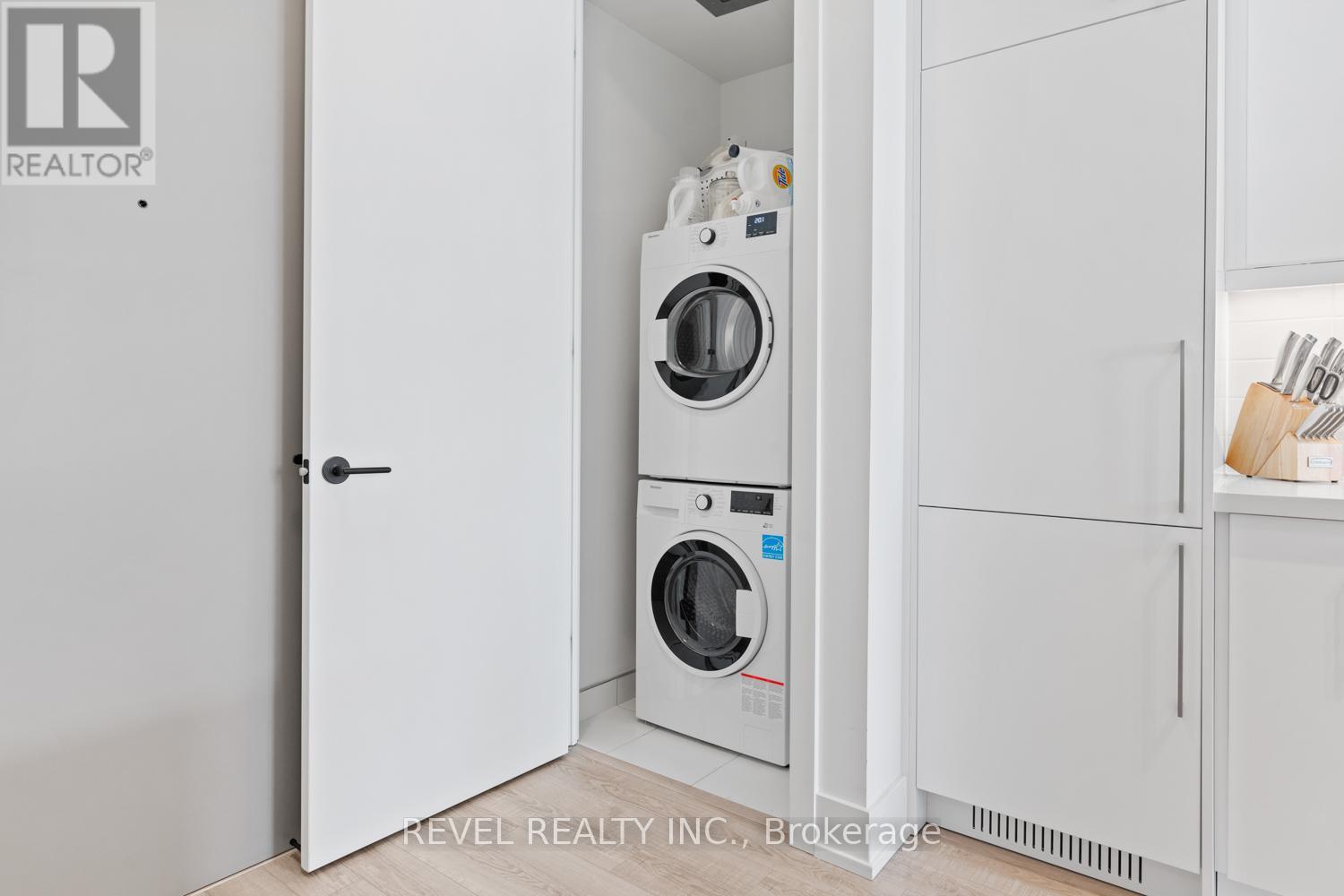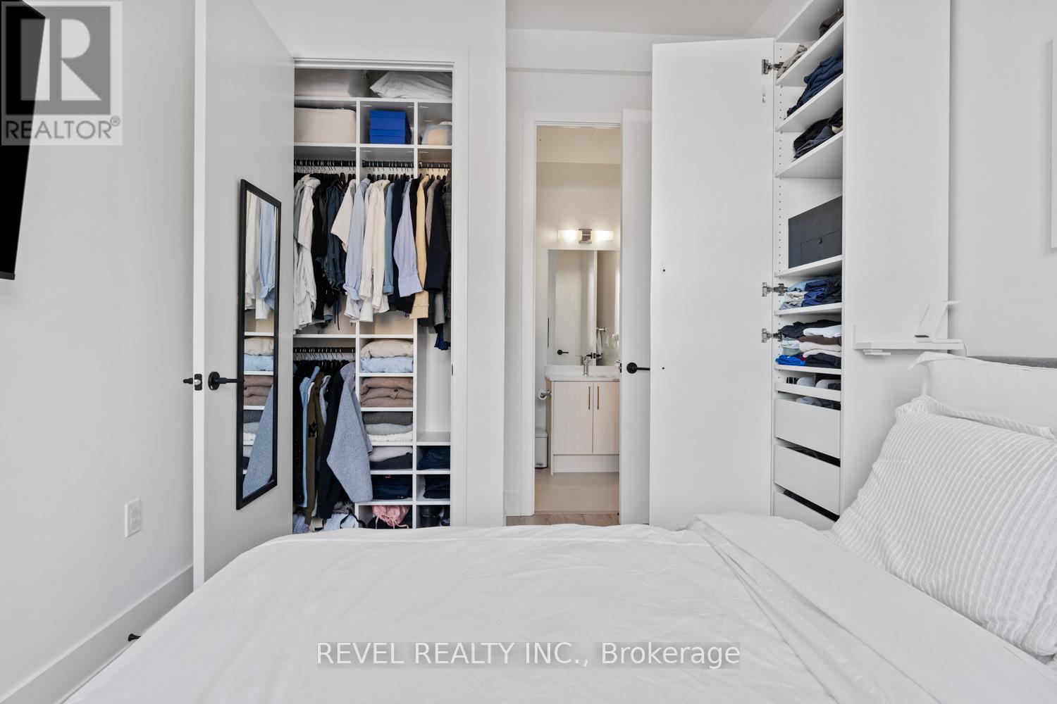 Welcome to Suite 123, a beautifully designed 667 sq. ft. unit + private outdoor patio. A residence that blends modern comfort with upscale, custom finishes. Featuring 10-foot ceilings and floor-to-ceiling windows in the living area, this home is filled with natural light and offers an airy, sophisticated atmosphere.The open-concept kitchen has been fully upgraded, showcasing custom cabinetry extended to the ceiling, integrated appliances with full size stove and microwave , and a stunning custom quartz countertop island with seating for up to 10-perfect for entertaining, hosting, or everyday living. Thoughtfully designed custom closets throughout elevate both function and style. A spacious den offers versatility as a home office or guest space, while two full bathrooms provide added convenience and privacy. Step outside from your private ground floor entrance to your walk-out terrace, complete with a dedicated gas line for bbq and water bib, creating an ideal setting for outdoor dining, entertaining, or relaxing evenings at home. Residents of King Terraces enjoy access to a curated collection of amenities, including a resort-style pool, sauna, steam room, rooftop terrace, fitness centre, elegant party lounge, and 24-hour concierge service. Suite 123 is where luxury design meets everyday ease-a rare ground-floor retreat with exceptional upgrades and seamless indoor-outdoor living. (id:4555)