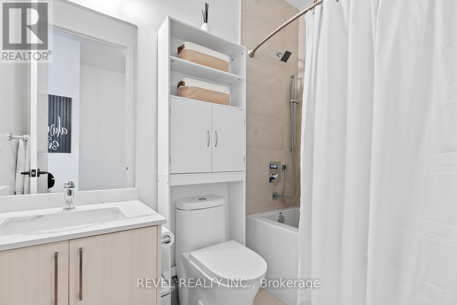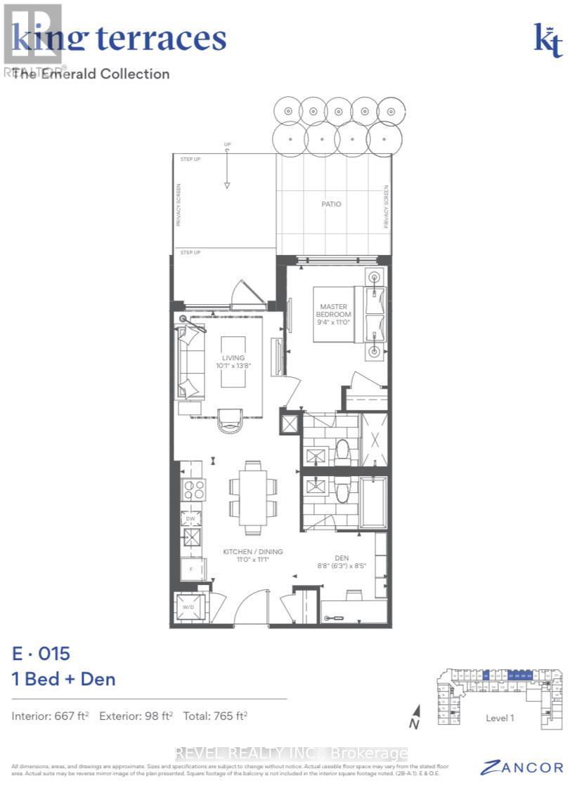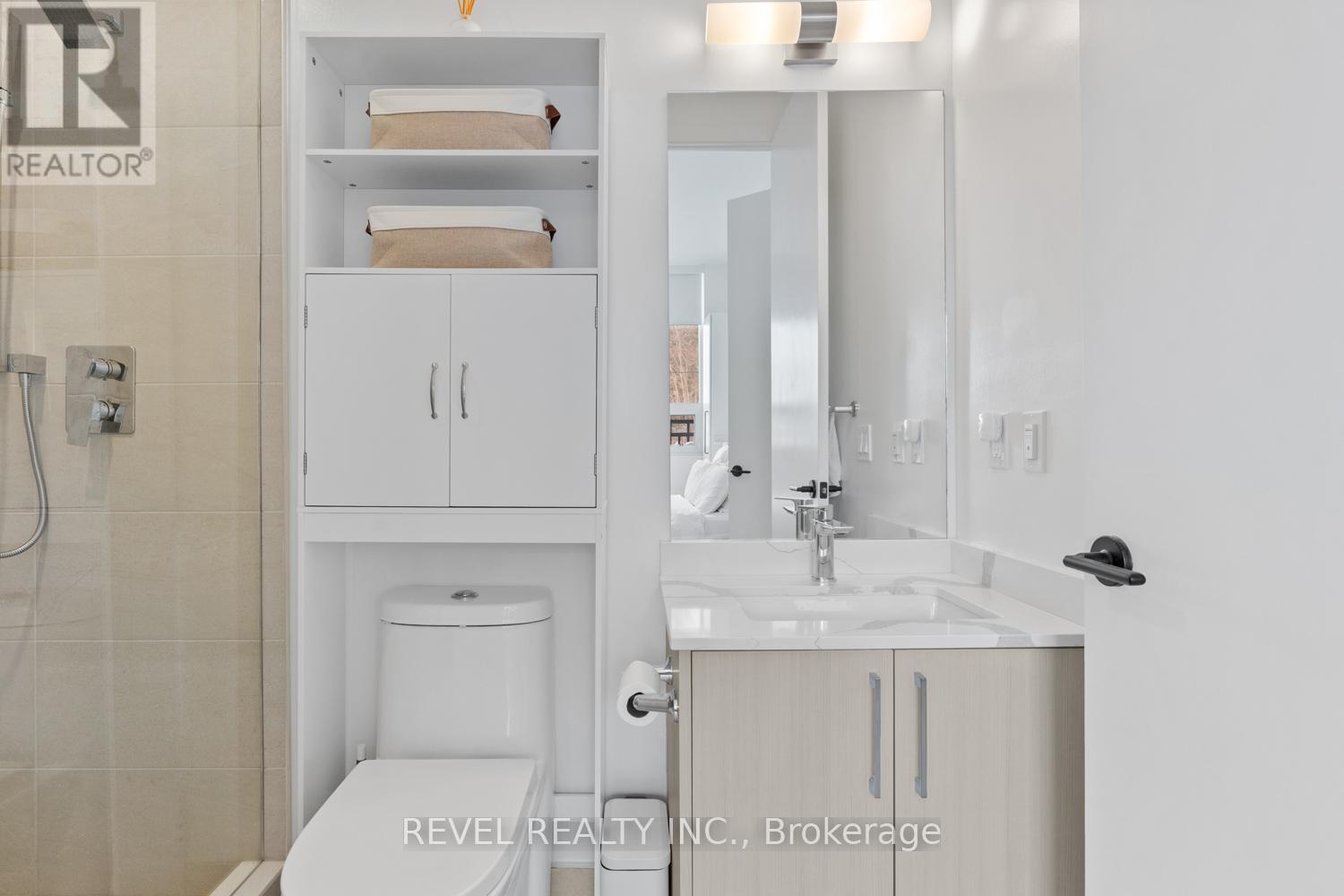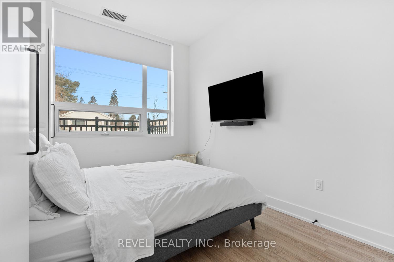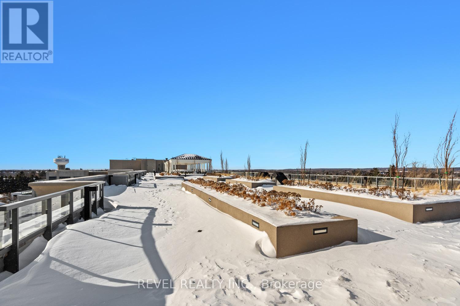 Welcome to Suite 123, a beautifully designed 667 sq. ft. unit + private outdoor patio. A residence that blends modern comfort with upscale, custom finishes. Featuring 10-foot ceilings and floor-to-ceiling windows in the living area, this home is filled with natural light and offers an airy, sophisticated atmosphere.The open-concept kitchen has been fully upgraded, showcasing custom cabinetry extended to the ceiling, integrated appliances with full size stove and microwave , and a stunning custom quartz countertop island with seating for up to 10-perfect for entertaining, hosting, or everyday living. Thoughtfully designed custom closets throughout elevate both function and style. A spacious den offers versatility as a home office or guest space, while two full bathrooms provide added convenience and privacy. Step outside from your private ground floor entrance to your walk-out terrace, complete with a dedicated gas line for bbq and water bib, creating an ideal setting for outdoor dining, entertaining, or relaxing evenings at home. Residents of King Terraces enjoy access to a curated collection of amenities, including a resort-style pool, sauna, steam room, rooftop terrace, fitness centre, elegant party lounge, and 24-hour concierge service. Suite 123 is where luxury design meets everyday ease-a rare ground-floor retreat with exceptional upgrades and seamless indoor-outdoor living. (id:4555)