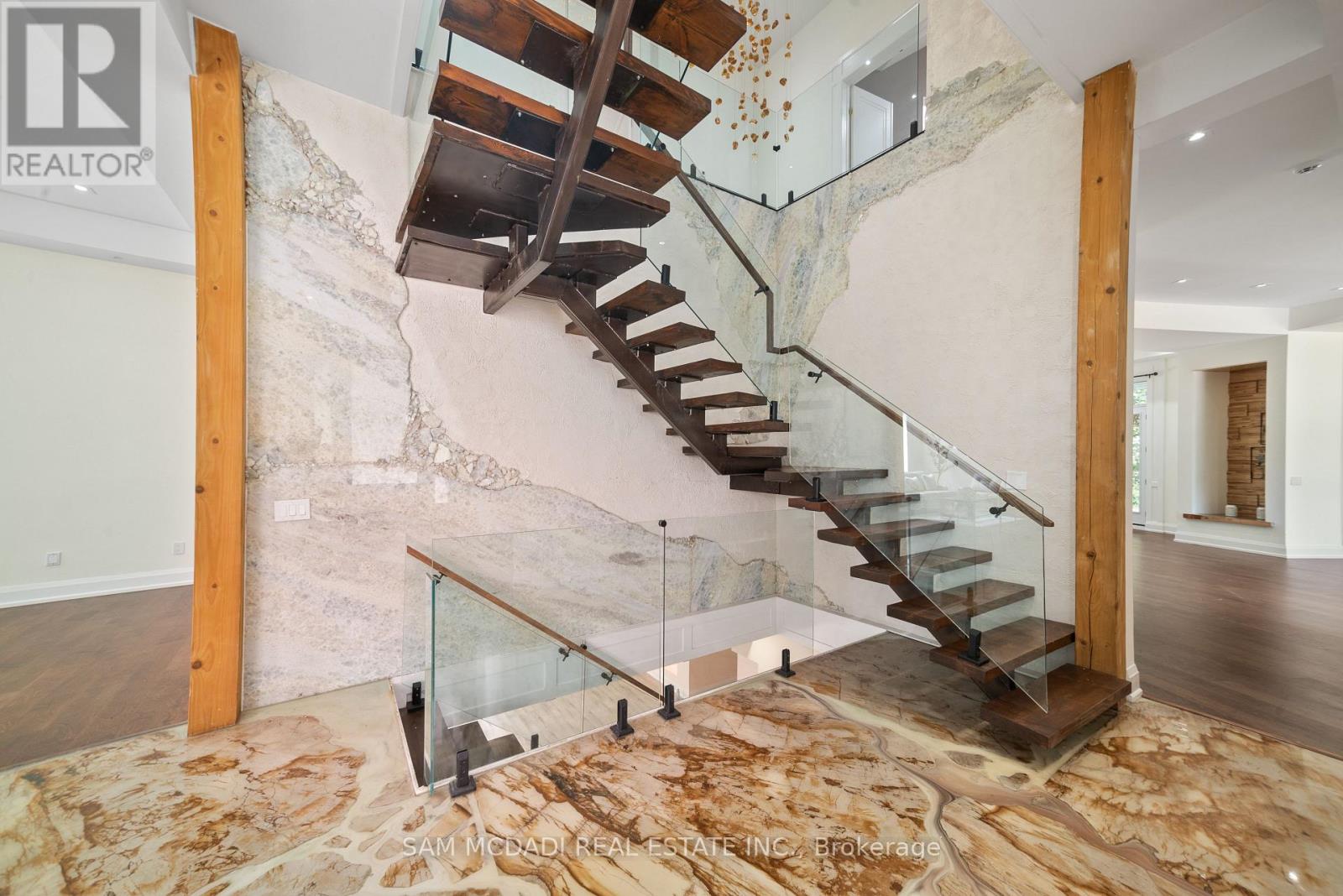 Set on a secluded almost 2-acre estate, this newly constructed architectural masterpiece offers over 13,000 square feet of refined indoor-outdoor living. Gated, grand, and privately positioned along Glenview Heights Lane, boasting modern luxury with timeless craftsmanship, designed for the most discerning of buyers. An inviting open-to-above foyer welcomes you inside, from dramatic ceiling heights to custom lighting, every detail has been thoughtfully curated to evoke elegance and ease. Expansive principal rooms flow effortlessly across the main level, including a formal dining room with fireplace, sunlit office retreat, and a sprawling family room with oversized windows framing the treetop views. The culinary kitchen is both stylish and functional, anchored by not one but two centre islands, custom cabinetry, premium built-in appliances, and a walk-in pantry. Whether hosting lavish dinner parties or casual gatherings, this space offers endless versatility. Above, the primary suite is an indulgent retreat, complete with a private terrace, spa-like 5-piece ensuite, and dual walk-in closets. Each additional bedroom is a suite unto itself, with vaulted ceilings, ensuite baths, and walk-in closets that speak to the elevated design throughout. For multigenerational or extended living, a private guest wing features its own kitchen, living area, and 3-piece bath. The fully finished walk-out basement spans over 3,600 square feet, offering a dynamic recreational space with lounge zones, and seamless access to the serene backyard. Intentionally designed with practicality in mind, this estate is equipped with 2 kitchens, 9-car parking, and surrounded by mature forest that ensures complete privacy and year-round tranquility. Positioned in a peaceful wooded enclave just moments from golf courses, conservation lands, and top-rated schools, this one-of-a-kind residence is a rare offering! (id:4555)