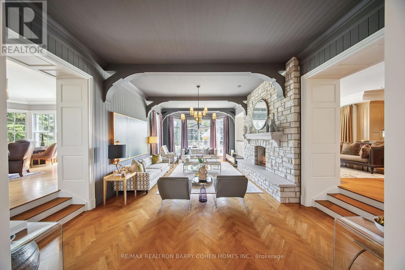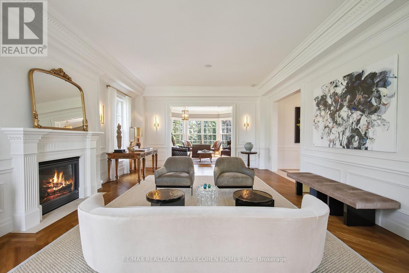 Exquisite Georgian-Inspired Custom Estate Set Within The Coveted Fairfield Estates, Gracefully Positioned On A Premium Corner Parcel. Crafted With A Timeless Brick And Indiana Limestone Façade, Framed By Professionally Curated Grounds Featuring Mature Trees And Impeccably Manicured Gardens. Features '24 Redesigned And Constructed Lower Level, Brick And Indiana Limestone Exterior Framed By Impeccably Landscaped Gardens Complete With Mature Trees And Lush Manicured Gardens That Surround The Entire Property. Residence Features 20-Car Private Drive & 4-Vehicle Garage Equipped With 2 Ev Charging Stations. Main Foyer Leads To Stunning 2 Storey Entrance Hall, Main Floor Office/Library, Elegantly-Appointed Principal Rooms With Oak Hardwood Floors, Custom Crown Moulding, Exceptional Millwork, And Integrated Speakers Throughout. Sunken Great Room With Soaring Ceilings And Floor-To-Ceiling Double-Sided Wood Burning Fireplace With Stone Surround. Gourmet Kitchen Features A Large Central Island, Viking Professional Appliances, Breakfast Area, Sitting Area With Fireplace, Servery & Walk-Out To Outdoor Living And Dining Area. Primary Suite Is The Ultimate Retreat Featuring Custom His & Hers Walk-In Closets Plus His & Hers Ensuites. Upper Level Boasts 4 Additional Spacious Bedrooms, Each With Their Own 4-Piece Ensuite, Upper Level Family Room And 2nd Office/Meditation Room. Lower Level Features An Enviable Custom 350+ Bottle Wine Room, Wet Bar With Dual Zone Temperature-Controlled 78 Bottle Wine Fridge With Seating Area, Lounge, Theatre with 100" Screen/Projector, Fitness Room Complete With Separate Spa And Sauna Plus Shower, Nanny Suite With 3-Piece Ensuite & Lower Level Laundry. Sprawling Rear Gardens Feature Salt Water Pool With Loggia, Spa, Covered Outdoor Living And Dining Area, And Multiple Entertaining Spaces. Located In One Of York Region's Finest Neighbourhoods, Near Top-Rated Private Schools, Award-Winning Golf Courses & Conservation Areas. (id:4555)