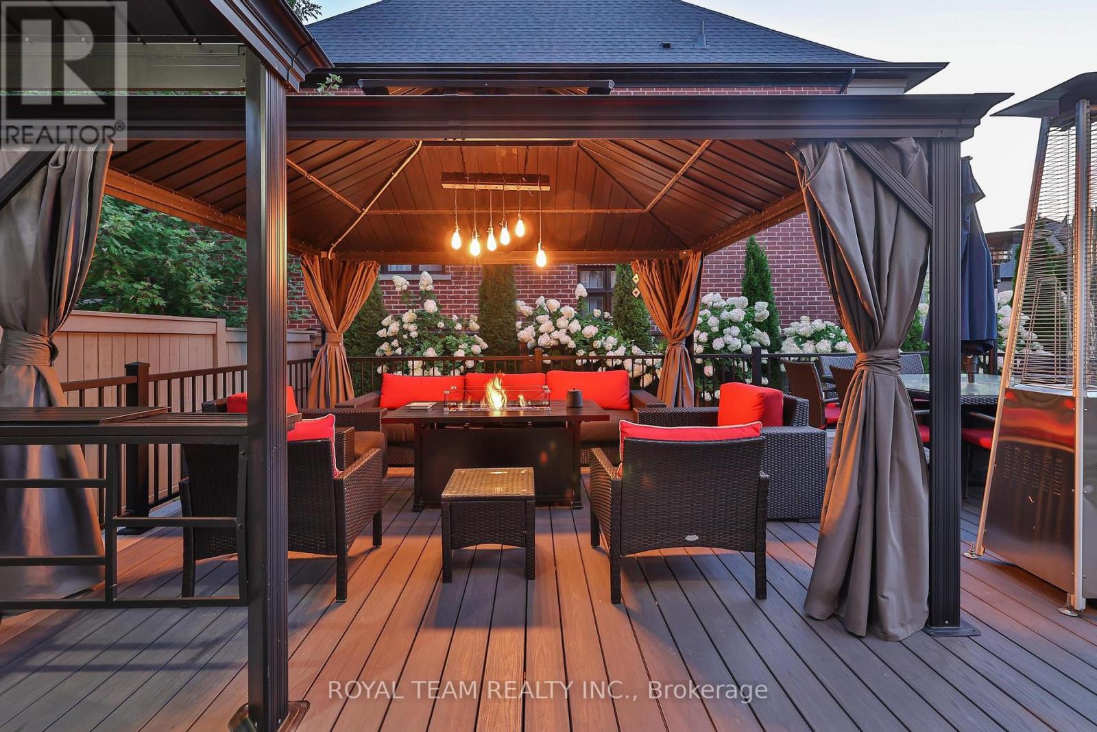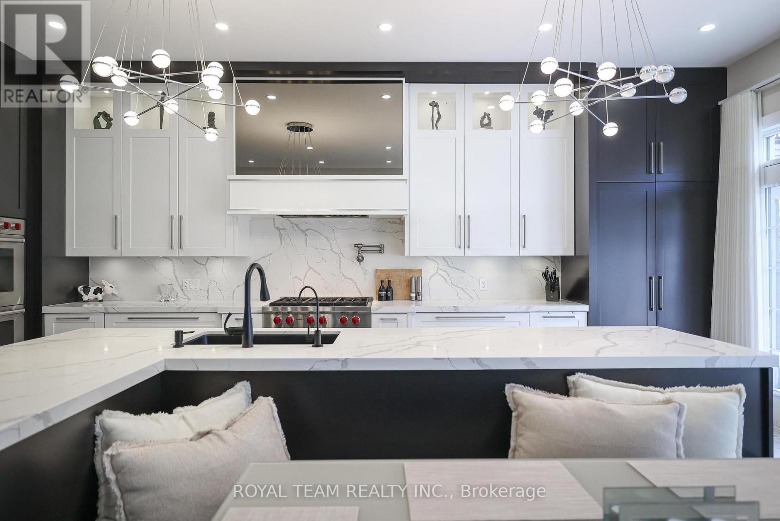 Luxurious Custom Residence in the Prestigious Castles of King! This elegant showpiece was inspired by the Model Home and upgraded with all the bells and whistles, offering approx 5,000sq/ft of exquisite living space with 5 bedrooms, 6 bathrooms, and refined finishes throughout. Designed for todays lifestyle, the home features soaring 10 ft ceilings on the main, 9 ft ceilings on the second and basement levels, and a dramatic cathedral living room that creates a sense of grandeur.The thoughtfully planned layout includes two main-floor offices, ideal for working from home, and four spacious bedrooms upstairs, each with its own ensuite for ultimate comfort and privacy. Retreat to the spa-inspired primary ensuite with Calacatta porcelain finishes, frameless glass shower, freestanding soaker tub, and marble counters. The chefs kitchen is a true masterpiece, boasting Wolf and Frigidaire appliances, a Marvel beverage centre, Bosch dishwasher, Sharp microwave drawer, Blanco Silgranit sink, and Calacatta quartz counters. The kitchen also features a large built-in breakfast table! Elegant 5 hand-scraped hardwood, crown moulding, custom millwork, and smart-home upgrades elevate every space. Outdoors, over $150,000 was invested in professional landscaping including stone walkways, a composite deck, two gazebos, outdoor fireplace table, sprinkler system, and gas lines for both BBQ and fireplace. A stone and brick elevation, 2-car garage plus 5-car driveway, and security cameras complete this remarkable property! See the feature sheet attached for a full list of everything this exquisite home has to offer!A true masterpiece of luxury and sophistication, this exceptional home offers unparalleled comfort in one of the most sought-after neighborhoods in prime King city location! (id:4555)