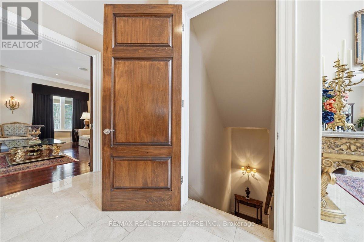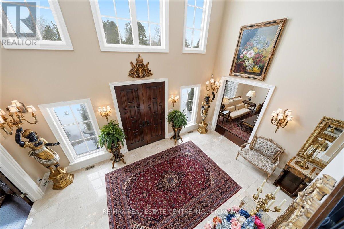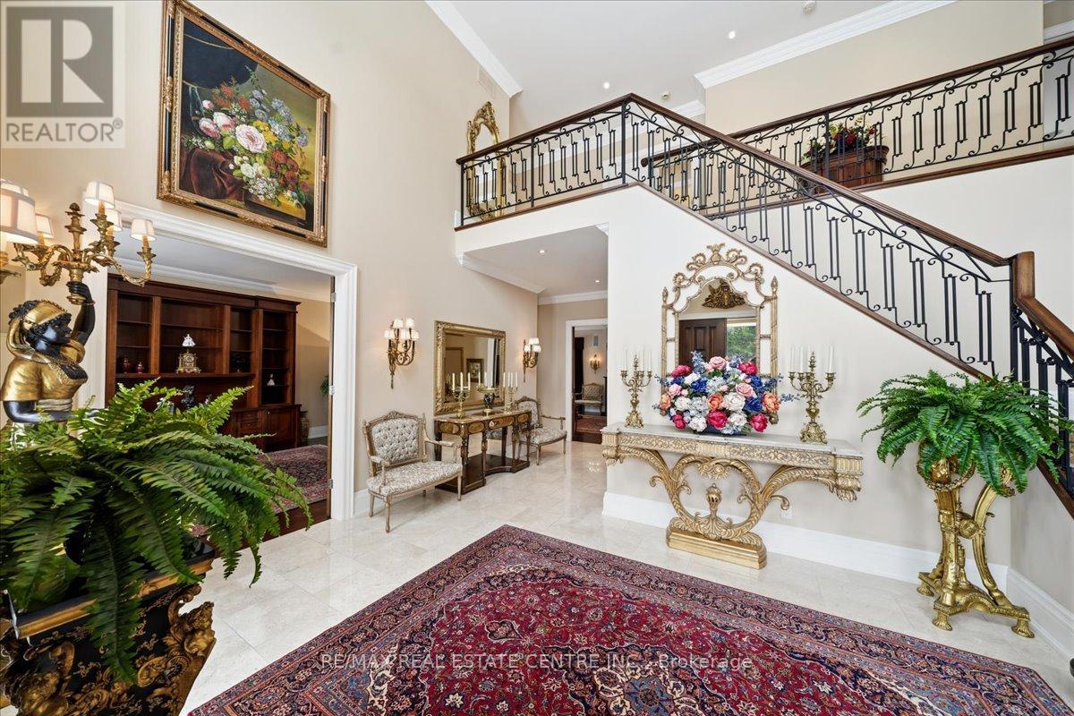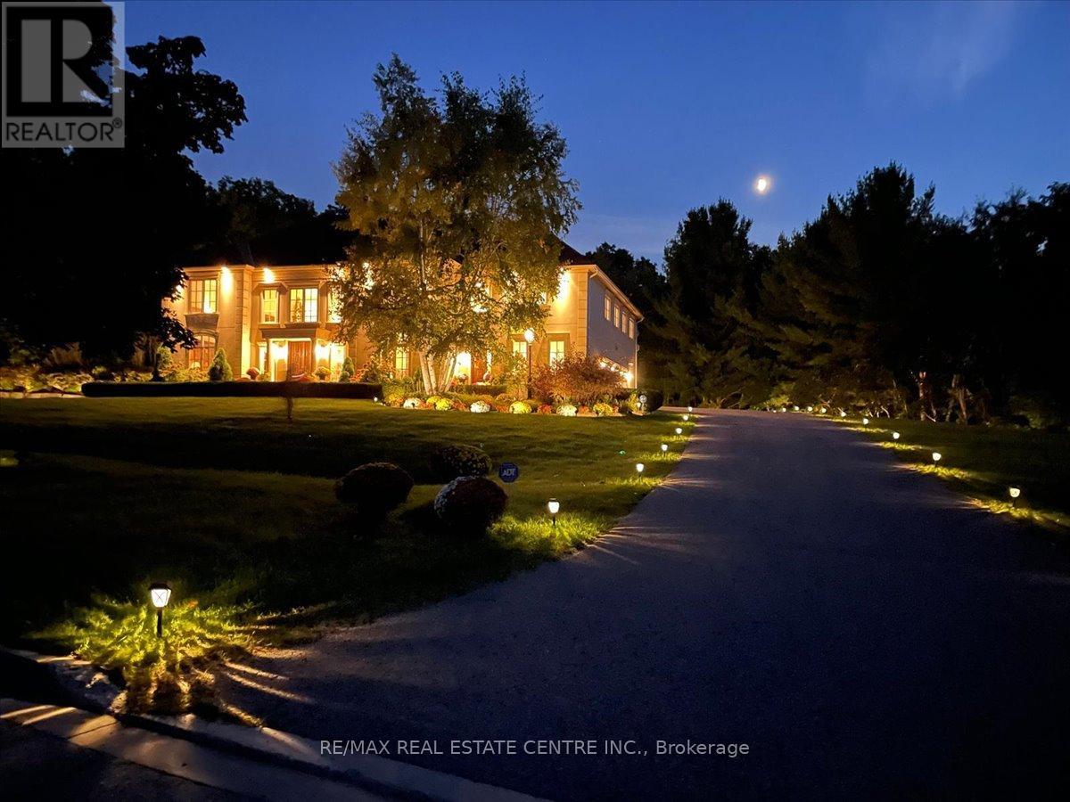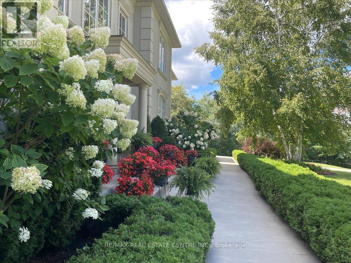 Exceptional estate living at 65 Kingwood Drive, a rare multi-generational residence on approx. 2.5 acres at the end of a private cul-de-sac in prestigious Kings Glen Estates. Featuring an extraordinary 671-ft frontage-the largest on the street-and backing onto Centennial Park, this property offers unparalleled privacy, lush gardens, ravine views, and natural serenity. A grand marble foyer with 20-ft ceilings and sweeping staircase introduces over 7,000 sq. ft. of elegant living space. Principal rooms showcase cherry hardwood floors, custom millwork, 9- ft walnut doors, and oversized windows with tranquil views. The approx. 500-sq.-ft. gourmet kitchen features a 45-8q.-ft. centre island, granite counters, premium appliances, and a filled breakfast area with seamless outdoor access. The home offers 5+1 bedrooms and 7 bathrooms, including a private primary retreat with spa- inspired ensuite, dressing area, and a massive terrace overlooking the ravine. (see Pics)A fully self-contained secondary suite with private entrance, living/dining area, kitchenette, bedroom with ensuite, and walkout deck is ideal for extended family or guests. Enhanced with ZON whole-home audio, in-ceiling speakers, and smart intercom, the grounds feature a roughed-in Par-3 golf area, secluded pool-ready plateau, private winter toboggan slope, and direct access to King Trails at Centennial Park. A rare opportunity combining timeless architecture, natural beauty, and functional luxury in one of King's most coveted enclaves. (id:4555)