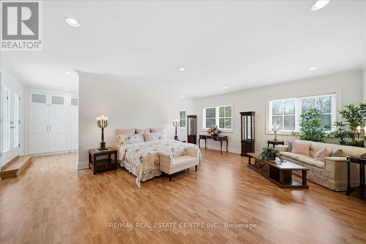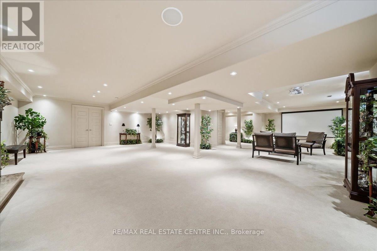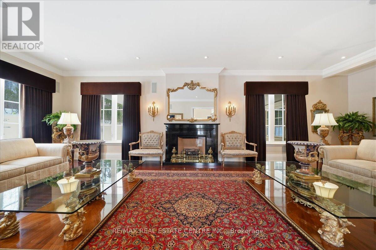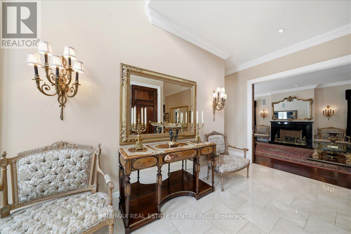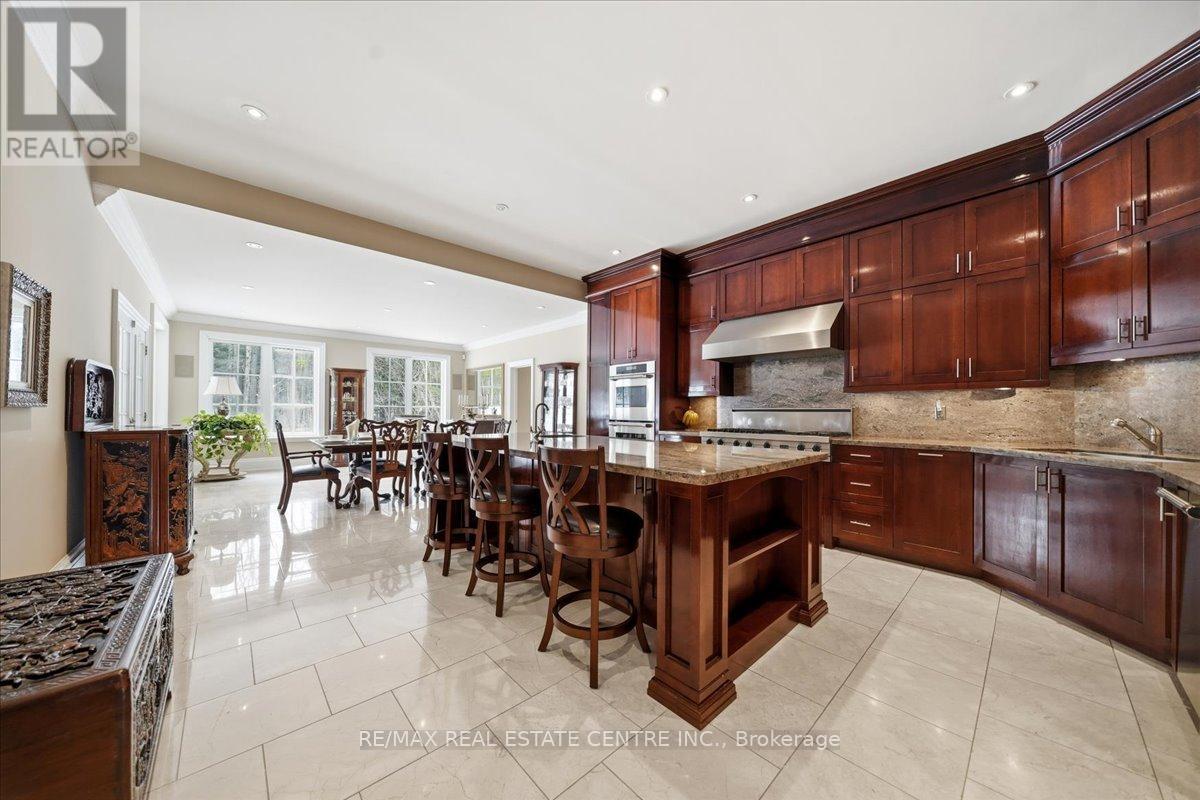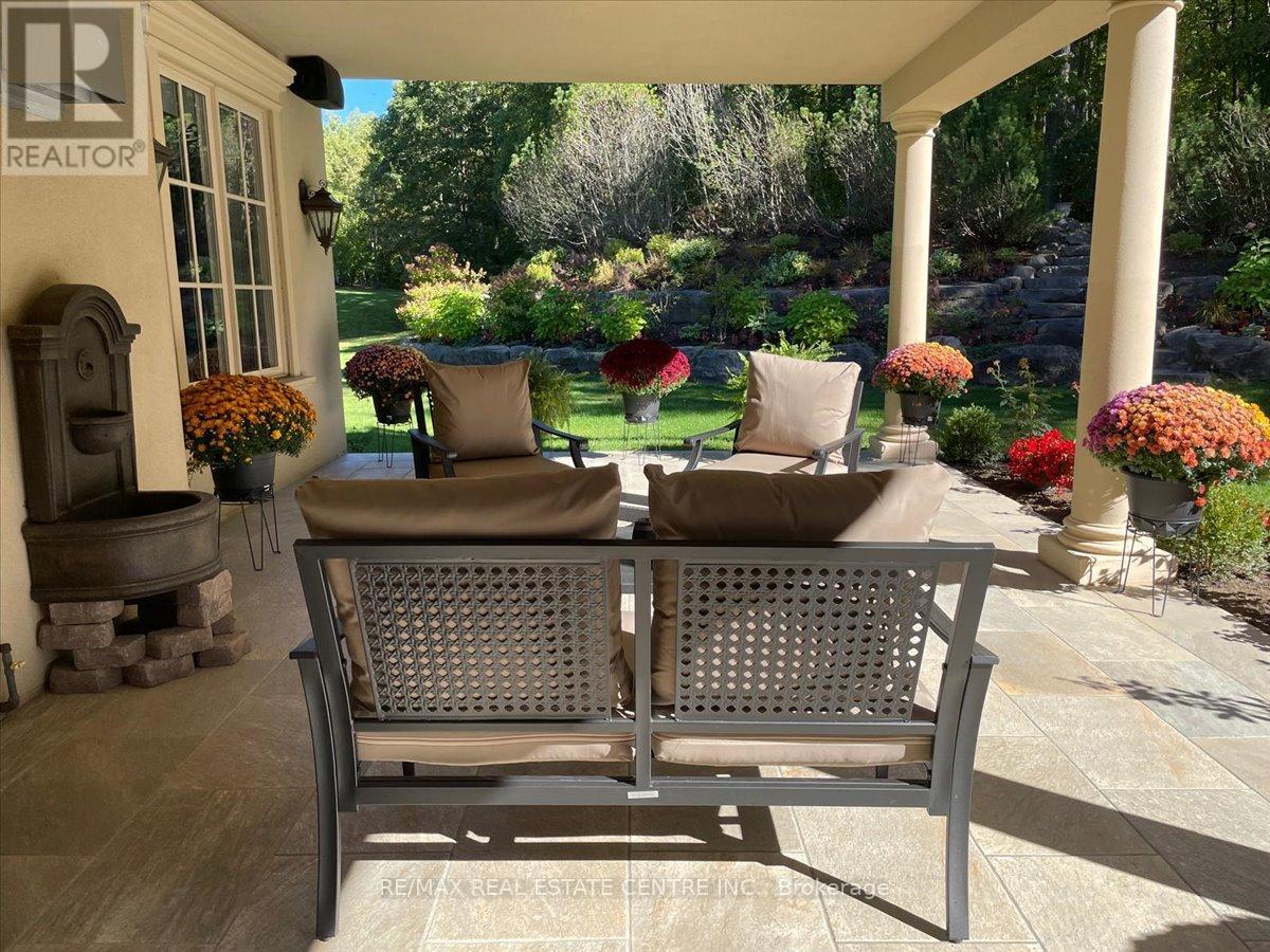 Exceptional estate living at 65 Kingwood Drive, a rare multi-generational residence on approx. 2.5 acres at the end of a private cul-de-sac in prestigious Kings Glen Estates. Featuring an extraordinary 671-ft frontage-the largest on the street-and backing onto Centennial Park, this property offers unparalleled privacy, lush gardens, ravine views, and natural serenity. A grand marble foyer with 20-ft ceilings and sweeping staircase introduces over 7,000 sq. ft. of elegant living space. Principal rooms showcase cherry hardwood floors, custom millwork, 9- ft walnut doors, and oversized windows with tranquil views. The approx. 500-sq.-ft. gourmet kitchen features a 45-8q.-ft. centre island, granite counters, premium appliances, and a filled breakfast area with seamless outdoor access. The home offers 5+1 bedrooms and 7 bathrooms, including a private primary retreat with spa- inspired ensuite, dressing area, and a massive terrace overlooking the ravine. (see Pics)A fully self-contained secondary suite with private entrance, living/dining area, kitchenette, bedroom with ensuite, and walkout deck is ideal for extended family or guests. Enhanced with ZON whole-home audio, in-ceiling speakers, and smart intercom, the grounds feature a roughed-in Par-3 golf area, secluded pool-ready plateau, private winter toboggan slope, and direct access to King Trails at Centennial Park. A rare opportunity combining timeless architecture, natural beauty, and functional luxury in one of King's most coveted enclaves. (id:4555)