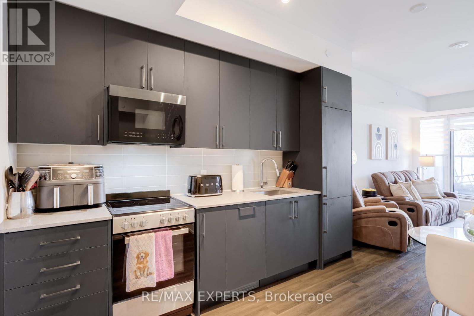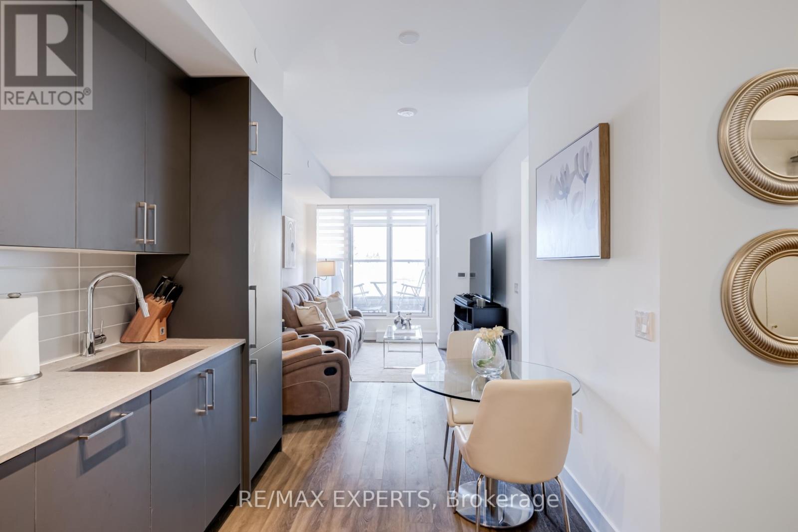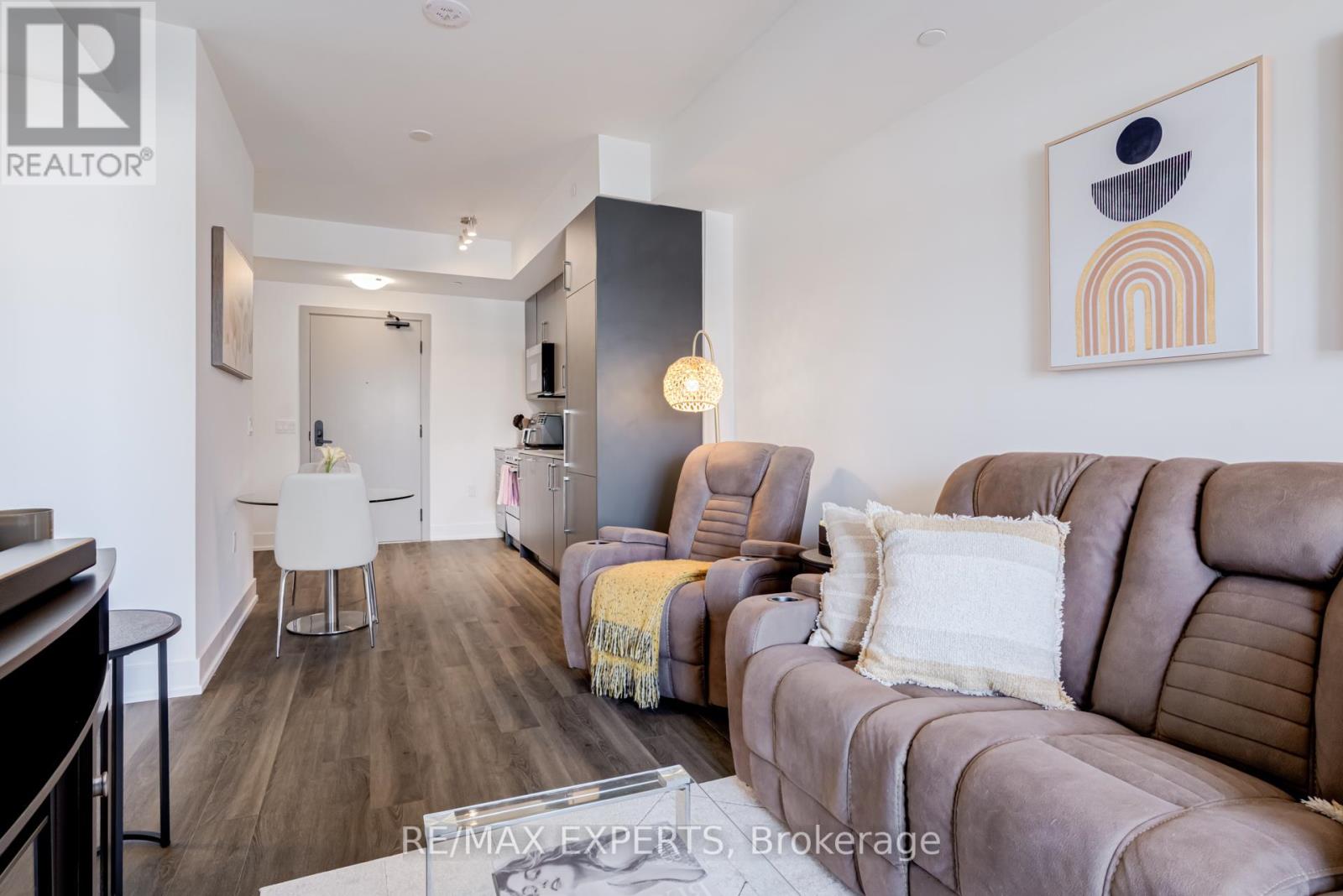 Welcome to Suite 336 at King Terraces, A Beautifully designed Residence Offering A Total of 664 sq. ft. of Modern Comfort and Smart Functionality in one of King City's Most Desirable Boutique Communities. This Thoughtfully laid-out Suite Features an Open-concept Design that Seamlessly Connects the Kitchen, Living & Dining Areas-Ideal for Everyday Living & Entertaining. The Sleek Kitchen Showcases Quartz Countertops, Integrated Appliances & Contemporary Cabinetry, Blending Style with Practicality. Large Windows Fill the Space with Natural Light, Creating a Bright & Inviting Atmosphere. The Spacious Primary Bedroom Offers a Peaceful Retreat, while the Versatile Den Provides the Perfect Space for a Home Office or Guest Area. A Beautifully Finished Bathroom with Clean, Modern Lines Completes the Interior. Residents of King Terraces Enjoy Resort-style amenities Including a Rooftop Terrace with BBQs, Indoor Pool, Fitness Centre, Yoga Studio, Steam Room, Sauna, Party Lounge, Games Room, Children's Playroom, Private Guest Suite, Dog Wash station, Bike Wash Station & 24-hour Concierge Service. Ideally Located Steps to Parks, Scenic Trails, the Zancor Community Centre, King City Library & Seniors Centre & Just Minutes from Shopping, Dining, Top-rated Public & Private Schools & Highway 400. A Complimentary Shuttle Service to the Nearby King City GO Station Makes Commuting Effortless. Suite 336 Offers Style, Convenience & Exceptional Lifestyle Value in the Heart of King City. (id:4555)