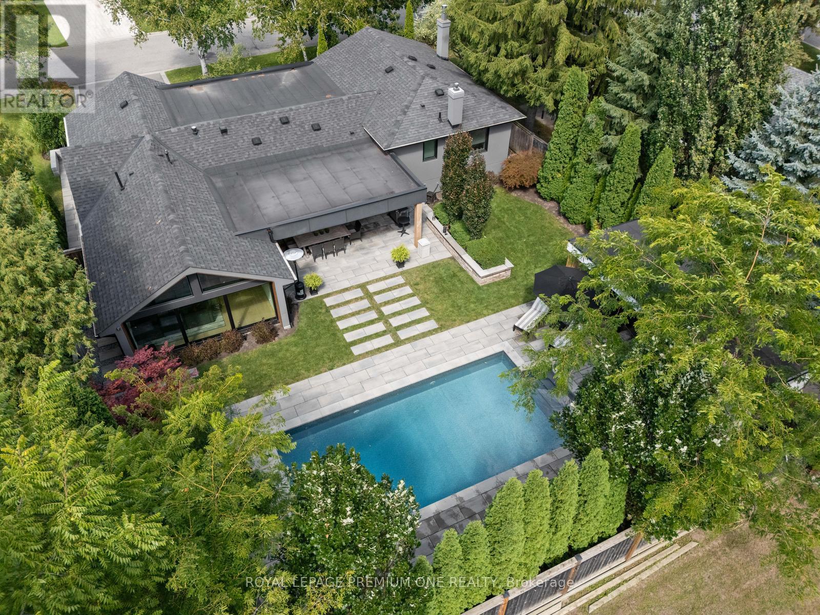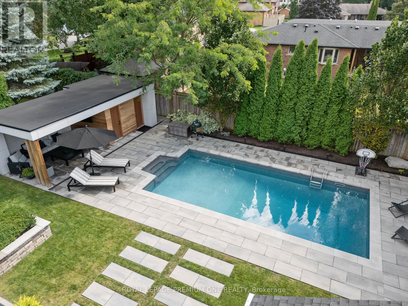 Welcome home to 49 Norman Drive! This modern architectural masterpiece presents a rare and unique offering blending refined luxury and clean contemporary lines in the heart of King City. The custom front opens to a bright, open concept layout featuring large custom windows, functional sightlines and oak hardwood flooring thru-out the living space. The reimagined Chef's Kitchen designed by Muti Kitchens is an entertainers delight boasting sleek custom cabinetry, a large center island with honed granite counters and a cascading waterfall. Complimented further by top-of-the-line Miele appliances and an extended breakfast table area. The spacious dining area is the perfect setting for hosting dinner soirees and seamlessly flows into the outdoor Loggia area, where guests can enjoy after-dinner cocktails overlooking the gorgeous backyard oasis. The large, bright living room features a beautiful, vaulted ceiling and a large, picturesque window offering stunning views of the backyard oasis. A two-sided gas Fireplace adds warmth & coziness for evening relaxation. The stunning backyard oasis provides the perfect backdrop for summer entertaining with family & friends, featuring a 15x28ft inground saltwater pool and a cedar-finished Cabana outfitted with a 4pc bathroom & kitchenette. The manicured landscaped grounds and loggia area offer a serene setting for al fresco dining. The Primary bedroom includes access to a spa-inspired semi-ensuite with heated floors, porcelain slab walls, floating vanities, and a zero-entry shower. The lower level provides additional living space with a large recreational room, an office and a 4-pc bath. Located in close proximity to numerous amenities with easy access to Hwy 400 & the King City GO Station. Steps to beautiful restaurants/shops and top-rated schools (Villanova, Country Day School). King Valley & Kings Riding Golf Clubs & the New Zancor Recreational Center. Your refined luxury lifestyle awaits at 49 Norman Dr in King City! (id:4555)