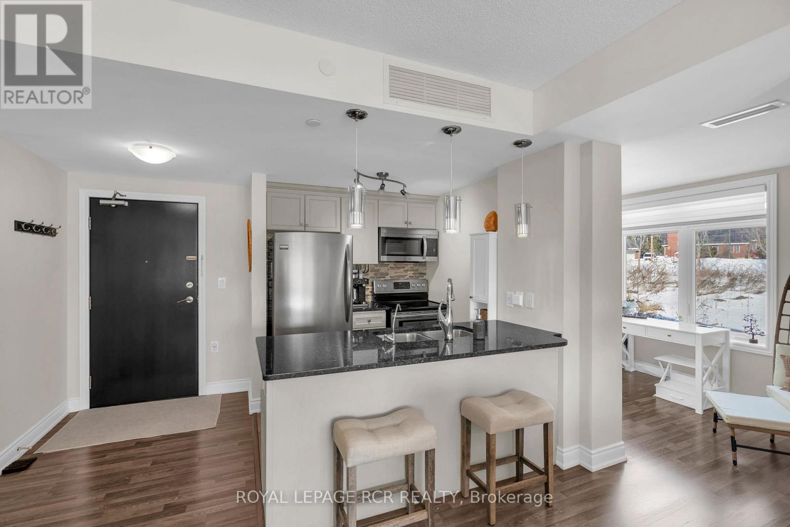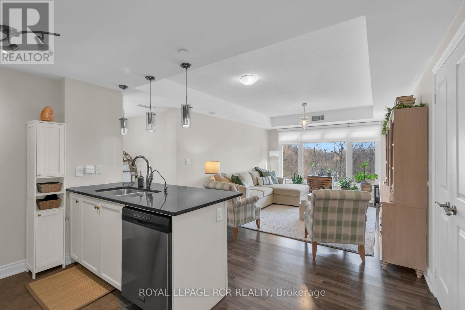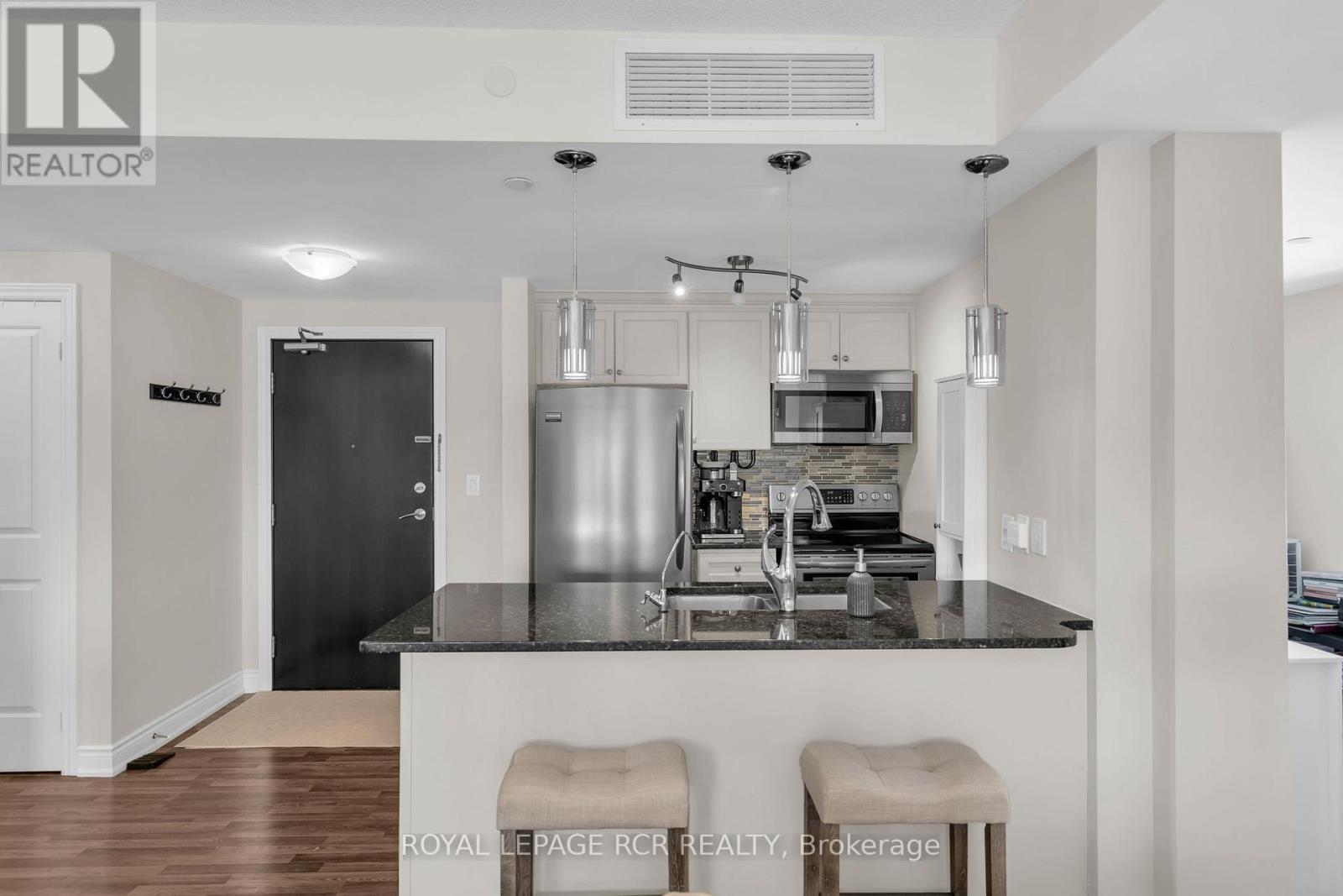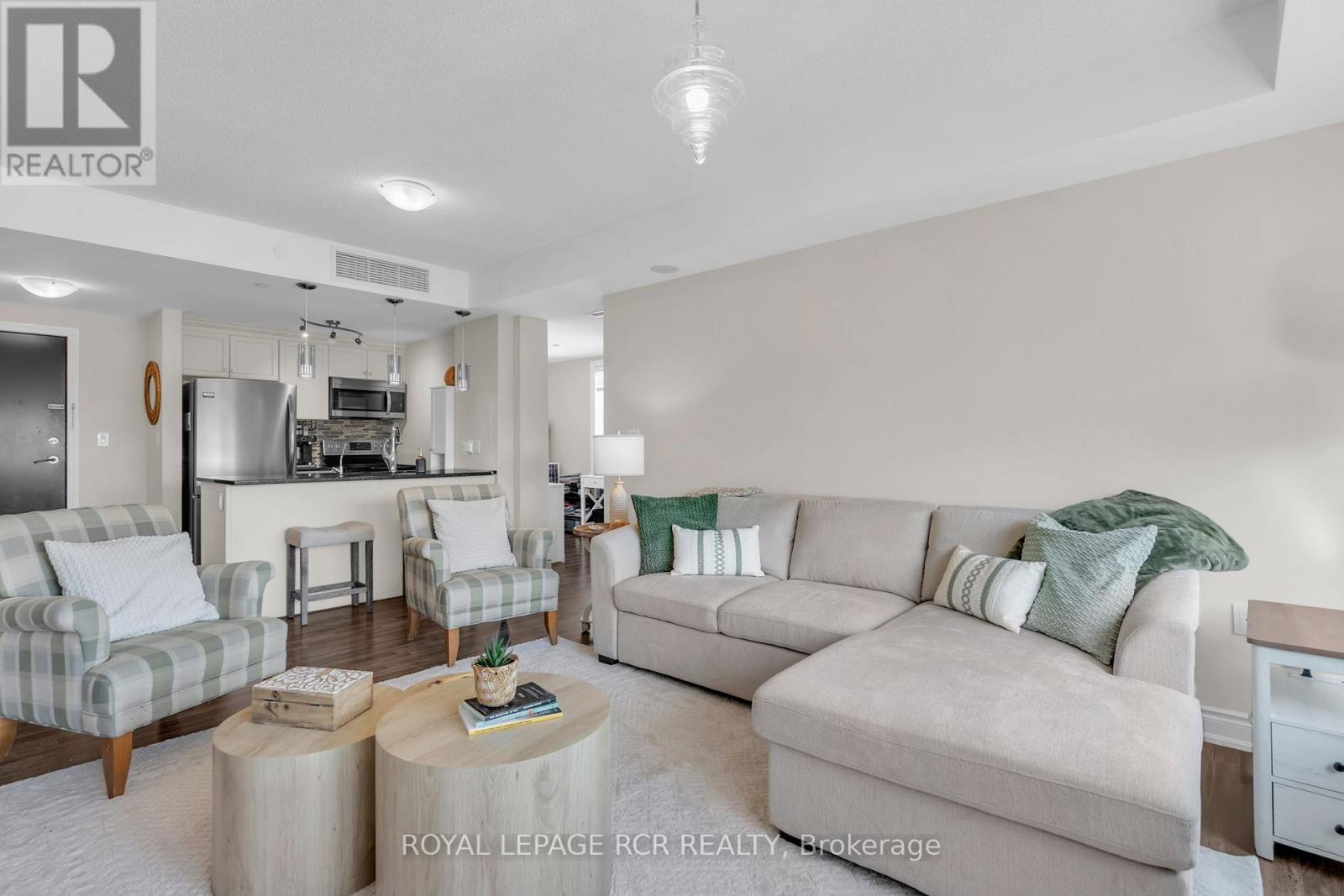 Welcome to the charming village of Schomberg! This spectacular corner unit offers a bright and spacious open-concept layout with breathtaking ravine views. Featuring 1 bedroom plus a versatile den, this suite is ideal for professionals or anyone seeking a stylish and comfortable place to call home. Natural light pours in from two sides through oversized windows - a unique advantage of this desirable corner unit, creating an airy and inviting living space. The modern kitchen is equipped with stainless steel appliances, granite countertops, and ample cabinetry, flowing seamlessly into the living and dining areas, perfect for both everyday living and entertaining. The primary bedroom is generously sized, complemented by a well-appointed 4-piece bathroom and the convenience of in-suite laundry. The den provides flexible space for a home office, guest area, or additional storage. Residents enjoy excellent building amenities including an indoor pool, fitness centre, and party room. Located just minutes from Schomberg's vibrant Main Street, you'll have easy access to charming shops, restaurants, grocery and hardware stores, as well as nearby Fox Trail Park and scenic walking trails. Commuting is simple with quick access to Highways 27, 9, and 400, and convenient transit options nearby. This rental also includes one covered parking space and a storage locker. Experience the perfect blend of small-town charm and modern convenience in this exceptional Schomberg condo. (id:4555)