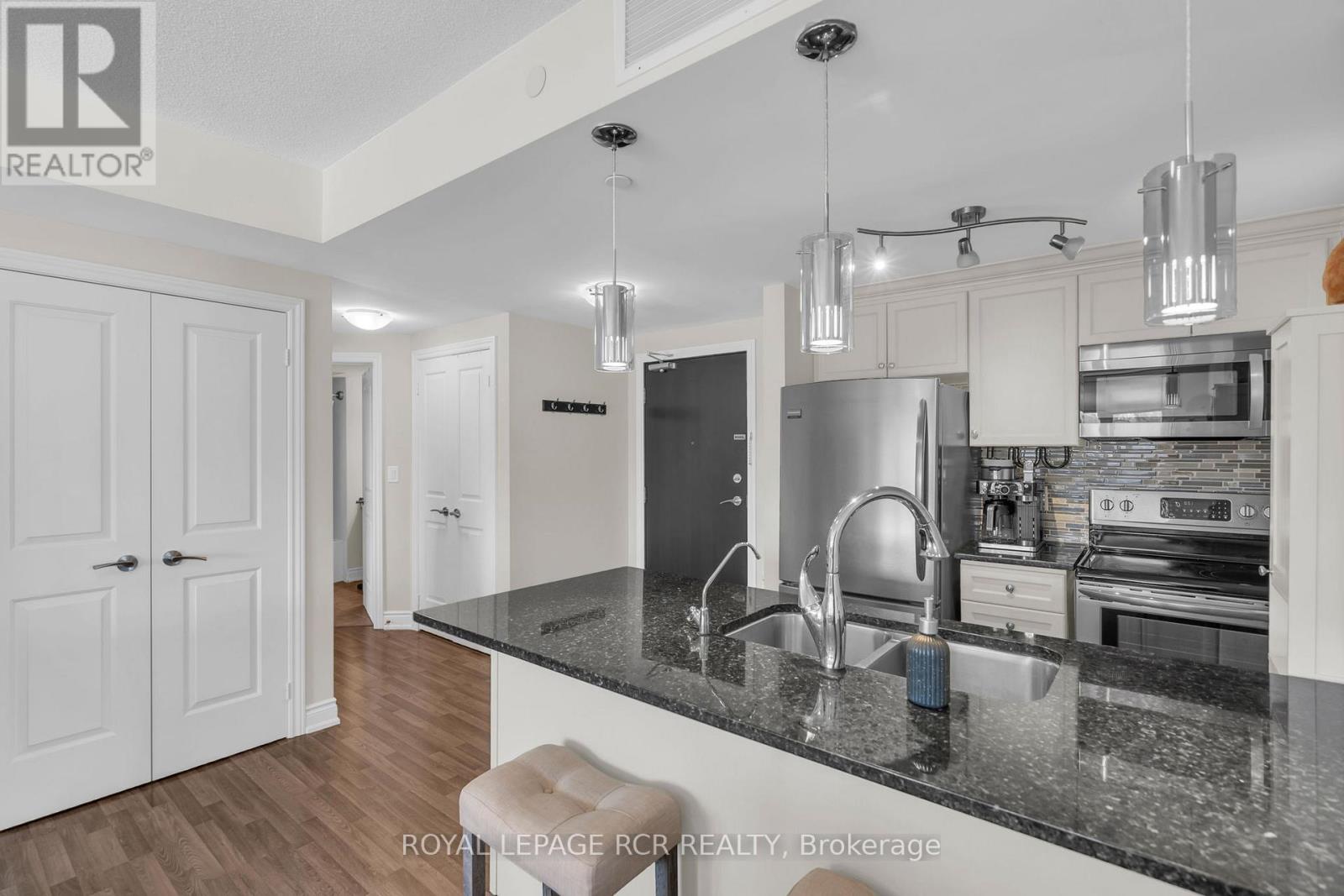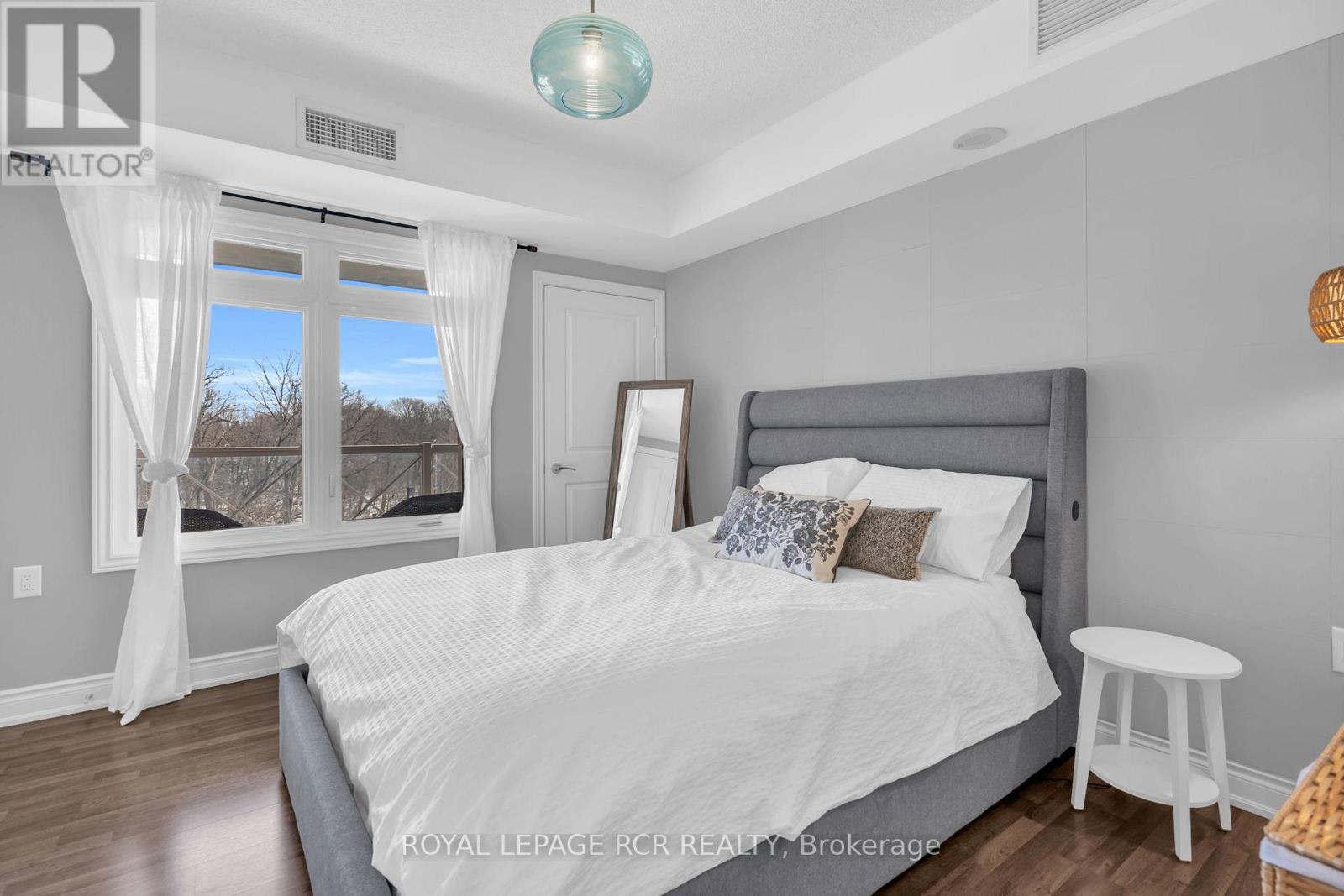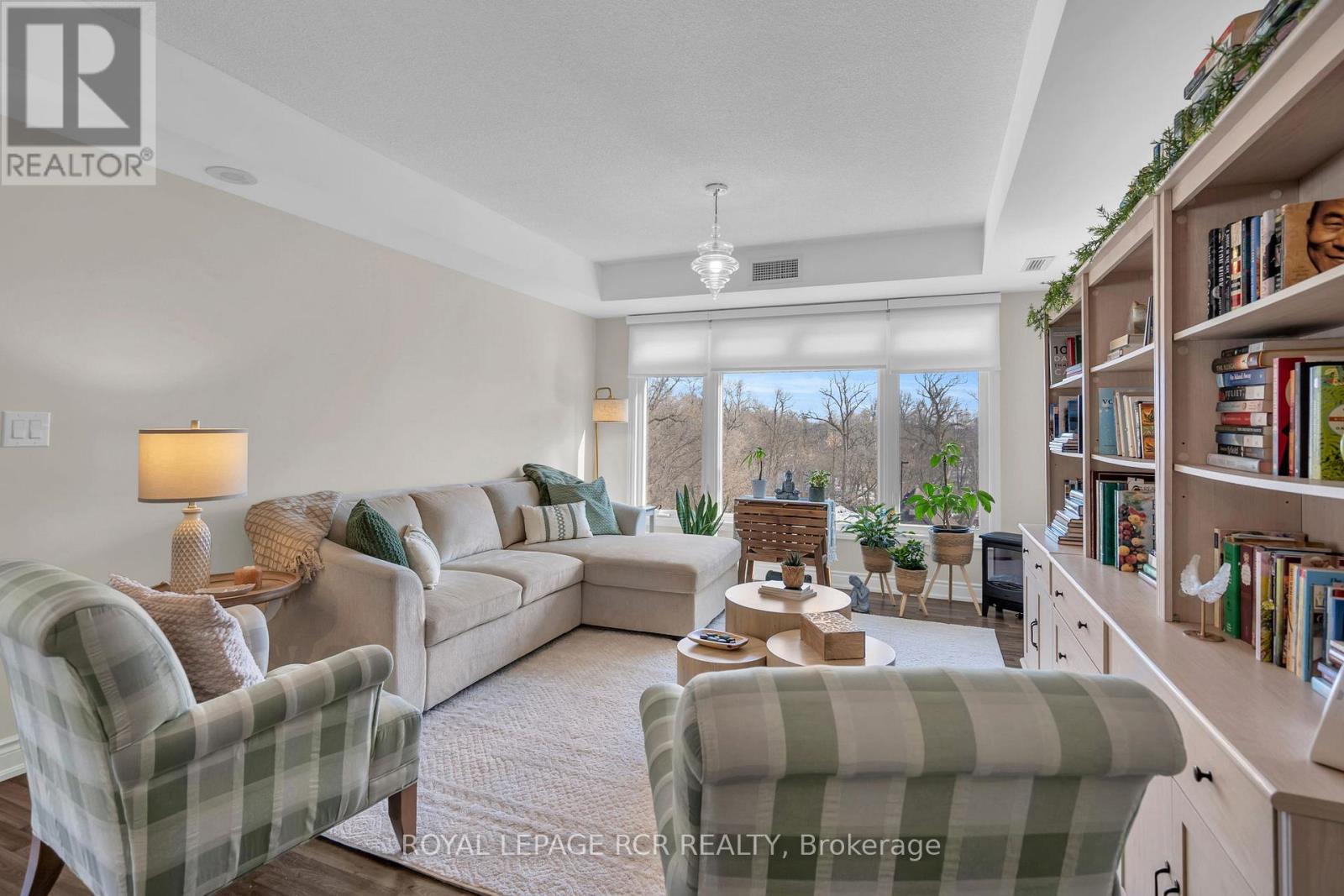 Welcome to the charming village of Schomberg! This spectacular corner unit offers a bright and spacious open-concept layout with breathtaking ravine views. Featuring 1 bedroom plus a versatile den, this suite is ideal for professionals or anyone seeking a stylish and comfortable place to call home. Natural light pours in from two sides through oversized windows - a unique advantage of this desirable corner unit, creating an airy and inviting living space. The modern kitchen is equipped with stainless steel appliances, granite countertops, and ample cabinetry, flowing seamlessly into the living and dining areas, perfect for both everyday living and entertaining. The primary bedroom is generously sized, complemented by a well-appointed 4-piece bathroom and the convenience of in-suite laundry. The den provides flexible space for a home office, guest area, or additional storage. Residents enjoy excellent building amenities including an indoor pool, fitness centre, and party room. Located just minutes from Schomberg's vibrant Main Street, you'll have easy access to charming shops, restaurants, grocery and hardware stores, as well as nearby Fox Trail Park and scenic walking trails. Commuting is simple with quick access to Highways 27, 9, and 400, and convenient transit options nearby. This rental also includes one covered parking space and a storage locker. Experience the perfect blend of small-town charm and modern convenience in this exceptional Schomberg condo. (id:4555)