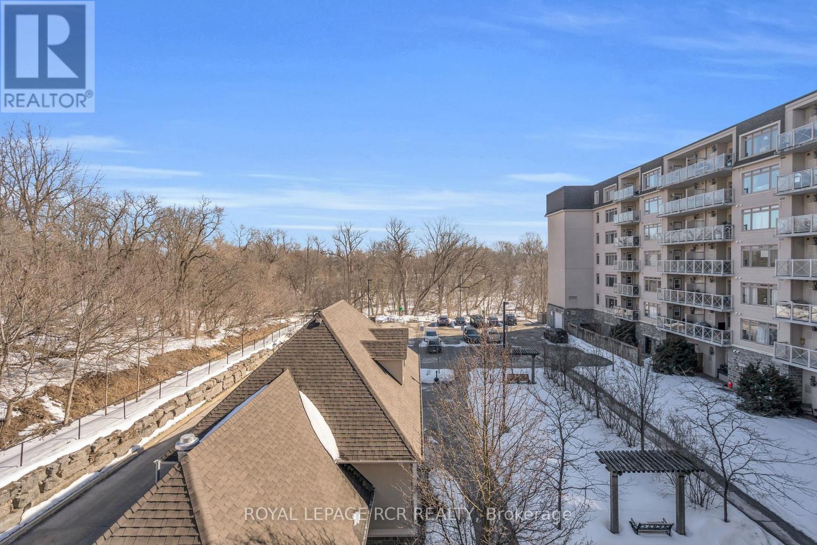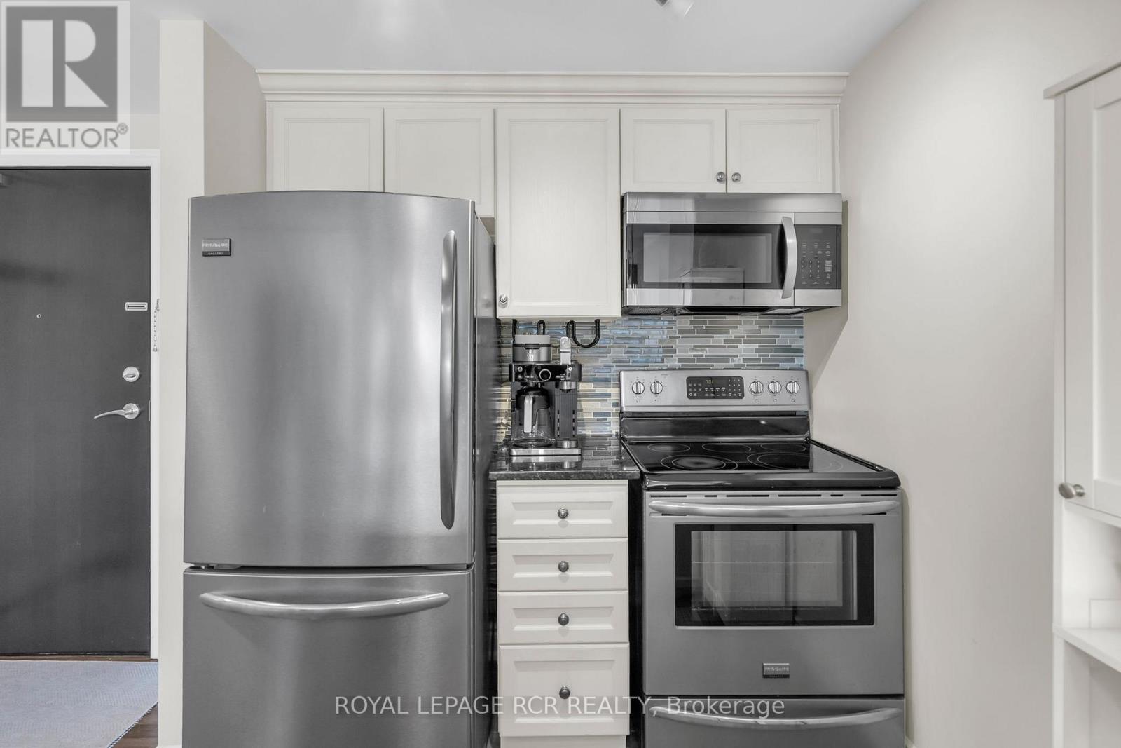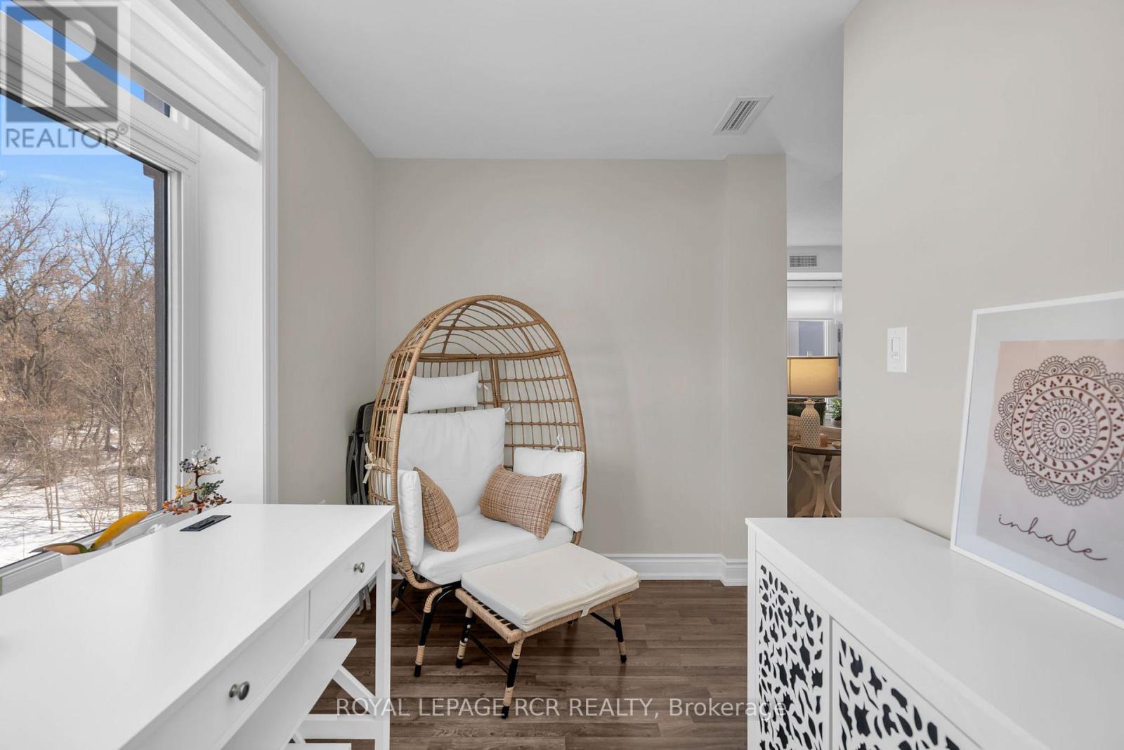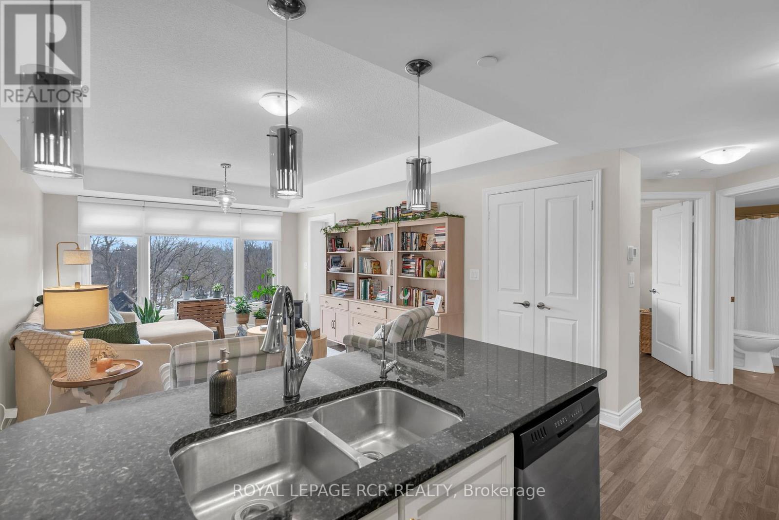 Welcome to the charming village of Schomberg! This spectacular corner unit offers a bright and spacious open-concept layout with breathtaking ravine views. Featuring 1 bedroom plus a versatile den, this suite is ideal for professionals or anyone seeking a stylish and comfortable place to call home. Natural light pours in from two sides through oversized windows - a unique advantage of this desirable corner unit, creating an airy and inviting living space. The modern kitchen is equipped with stainless steel appliances, granite countertops, and ample cabinetry, flowing seamlessly into the living and dining areas, perfect for both everyday living and entertaining. The primary bedroom is generously sized, complemented by a well-appointed 4-piece bathroom and the convenience of in-suite laundry. The den provides flexible space for a home office, guest area, or additional storage. Residents enjoy excellent building amenities including an indoor pool, fitness centre, and party room. Located just minutes from Schomberg's vibrant Main Street, you'll have easy access to charming shops, restaurants, grocery and hardware stores, as well as nearby Fox Trail Park and scenic walking trails. Commuting is simple with quick access to Highways 27, 9, and 400, and convenient transit options nearby. This rental also includes one covered parking space and a storage locker. Experience the perfect blend of small-town charm and modern convenience in this exceptional Schomberg condo. (id:4555)