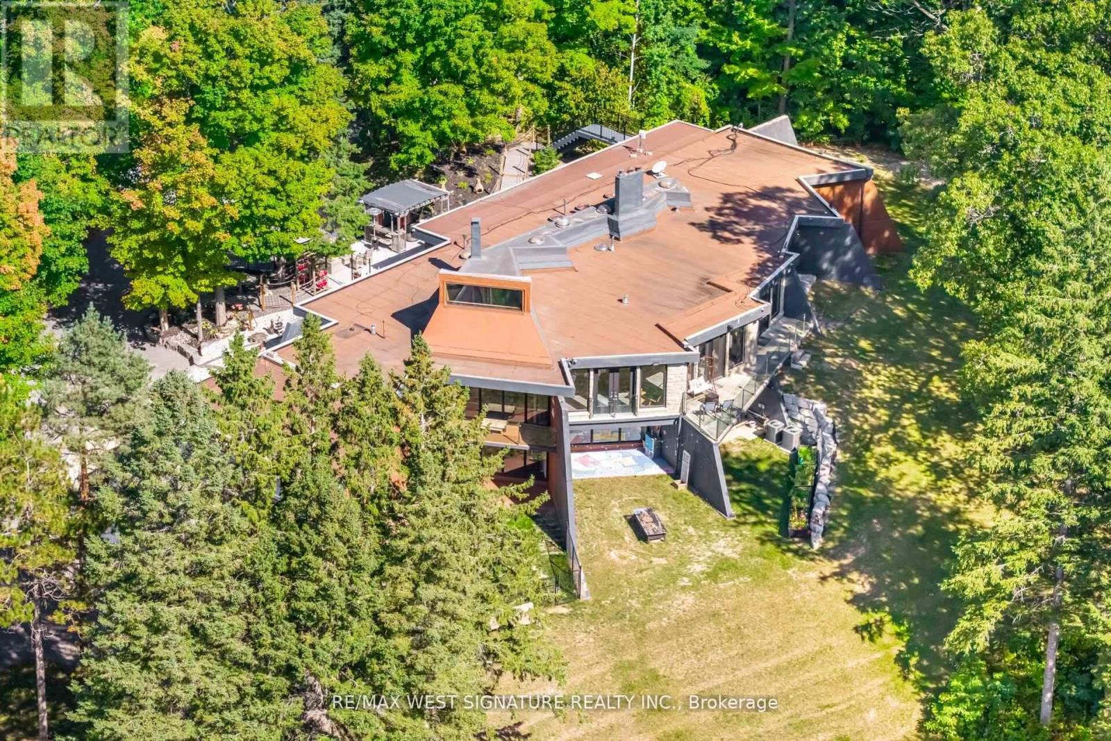 Stunning 6 Bedroom, 6 Bathroom custom built home of approx 10,000SF perfectly suited for large/extended multi generational family! A long winding tree lined drive leads to the architecturally significant " SUN DIAL HOUSE" This one of a kind modernistic home built with concrete + glass is inspired by design icons Frank Lloyd Wright and Le Corbusier. Sitting on a private 17 Acre property with pond, forest and open land ideal for a tranquil studio or wellness retreat!! Home is completely renovated from top to btm and is perfect for the discerning buyer looking for a statement home in the middle of the bridle path of King. Multiple walkouts to private terraces, soaring ceilings, radiant in-floor heating and picture views abound. Potential for 3 multi-generational families living together!!! A special estate property with interesting provenance and superb location close to the finest private schools, equestrian farms, GO train + more! (id:4555)