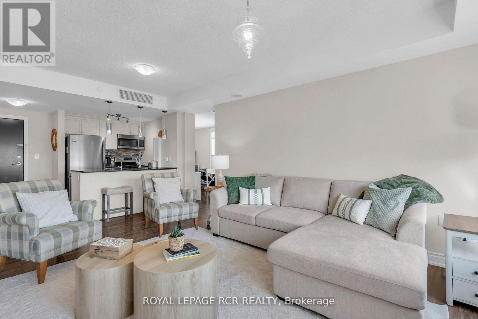 Welcome to the charming village of Schomberg! This spectacular corner unit offers a bright and spacious open-concept layout with breathtaking ravine views. Featuring 1 bedroom plus a versatile den, this suite is ideal for professionals or anyone seeking a stylish and comfortable place to call home. Natural light pours in from two sides through oversized windows - a unique advantage of this desirable corner unit, creating an airy and inviting living space. The modern kitchen is equipped with stainless steel appliances and granite countertops, flowing seamlessly into the living and dining areas, perfect for both everyday living and entertaining. The primary bedroom is generously sized, complemented by a well-appointed 4-piece bathroom and the convenience of in-suite laundry. The den provides flexible space for a home office, guest area, or additional storage. Residents enjoy excellent building amenities including an indoor pool, fitness centre, and party room. Located just minutes from Schomberg's vibrant Main Street, you'll have easy access to charming shops, restaurants, grocery and hardware stores, as well as nearby Fox Trail Park and scenic walking trails. Commuting is simple with quick access to Highways 27, 9, and 400, and convenient transit options nearby. This rental also includes one covered parking space and a storage locker. Experience the perfect blend of small-town charm and modern convenience in this exceptional Schomberg condo. (id:4555)