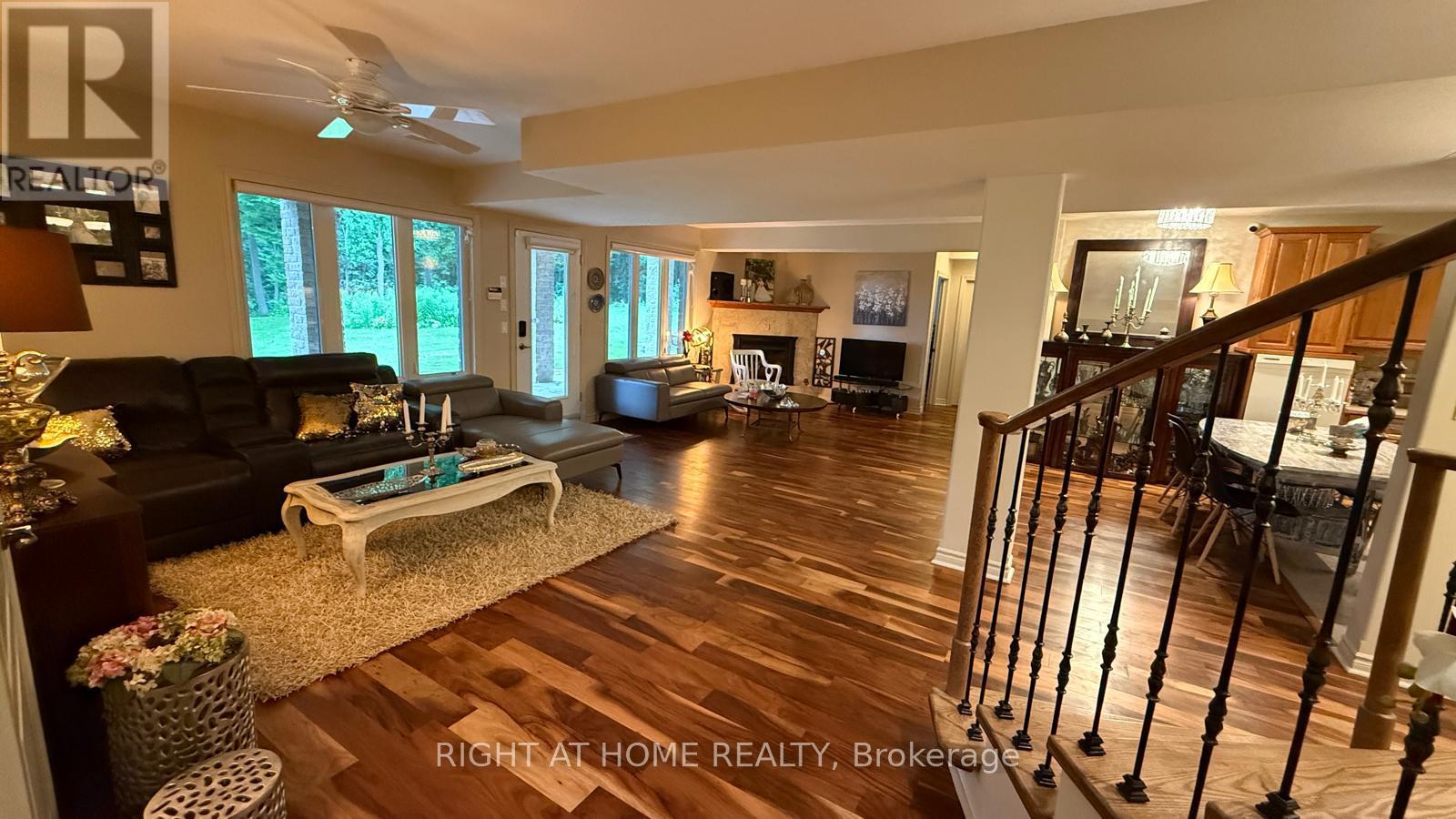 A Custom Masterpiece. This 4,440 sq ft James Selkirk stone estate offers unparalleled luxury on a 2.32-acre cul-de-sac lot-half professionally landscaped, half private hardwood forest. Moments from Hwy 401 and Kingston Mills locks. The main level features soaring vaulted ceilings, rich hardwoods, a chef's kitchen with quartz/built-in appliances, and a primary retreat with a 5-pc ensuite and private access to a 60-ft covered deck.The lower level is a perfect multi-generational solution, featuring a walk-out in-law suite with 4 beds, 2 baths, and cozy in-floor radiant heating. For the collector: a 5-car garage plus driveway for 15+ vehicles. Unrivaled Mechanicals: Brand new indirect hot water tanks (March 2026), Boiler/AC/Metal Roof (2023). Includes 10-zone irrigation, security, and intercom. This is the rare "forever home" that combines scale, privacy, and peak efficiency. (id:4555)