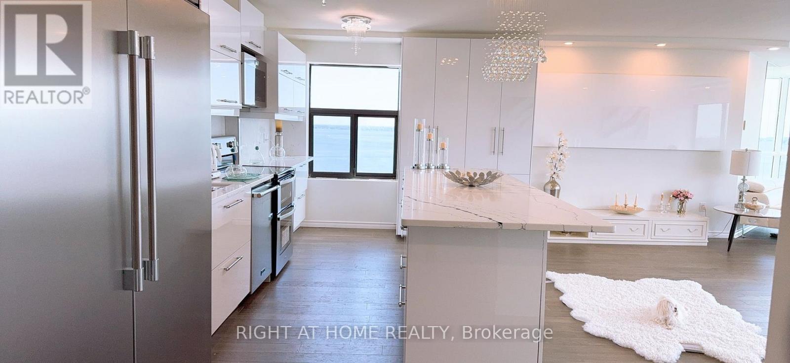 Experience luxury waterfront living in this rare 13th-floor, ~1,816 sq. ft. open-concept suite at the iconic Harbour Place Condominium, located in the heart of downtown Kingston. This fully renovated residence (2025) features brand-new windows installed in 2026, providing breathtaking, unobstructed views of Lake Ontario, Confederation Basin, and Kingston's historic shoreline from every room. Interior Features: 2 spacious bedrooms + den/office and 2 full bathrooms, offering a flexible and functional layout ideal for both everyday living and entertaining. In-suite laundry, generous closets, and a welcoming foyer. Modern, fully renovated interior with elegant finishes, bright open living areas, and floor-to-ceiling window walls framing the waterfront. 1 underground parking space included. $135,000 in special assessments already paid (new roof 2025; building envelope upgrades underway). All utilities included in monthly fees (heat, hydro, water, A/C, common elements, building insurance). Harbour Place is known for its premium resort-style amenities, including: Indoor pool, sauna, fitness centre, squash court, car wash, party room, library and hobby rooms. Residents also enjoy easy access to the marina and the city's exceptional waterfront trail network. Unmatched Location steps from Kingston City Hall, Market Square, waterfront parks, dining, shops, and cultural landmarks, Harbour Place is one of Kingston's most coveted addresses. Your suite directly overlooks the burgeoning Confederation Basin Promenade, a major waterfront enhancement project adding accessible walkways, seating, viewing points, and upgraded public spaces extending along the breakwall. When complete, the promenade will include enhanced swimming access, expanded public areas, and a new waterfront experience-making your view even more valuable (id:4555)