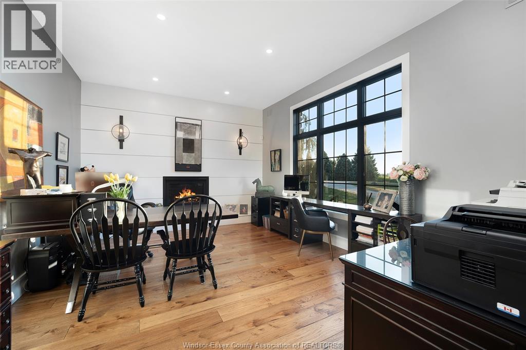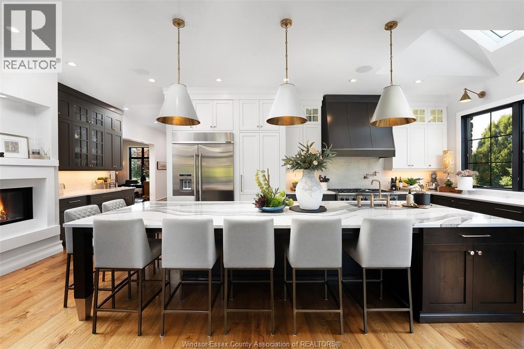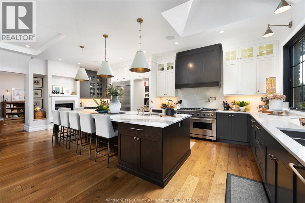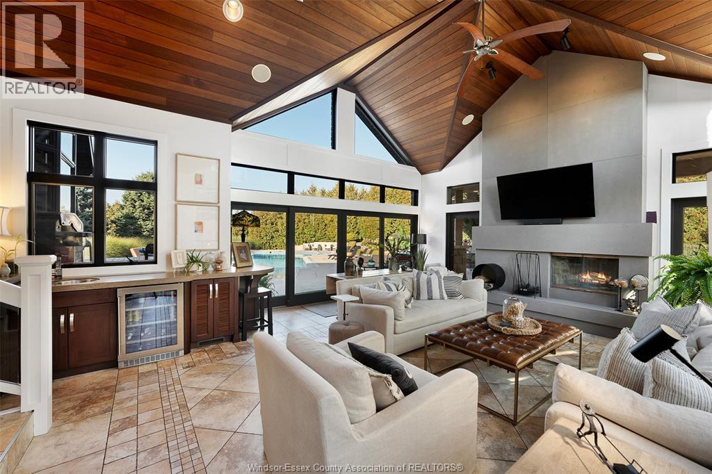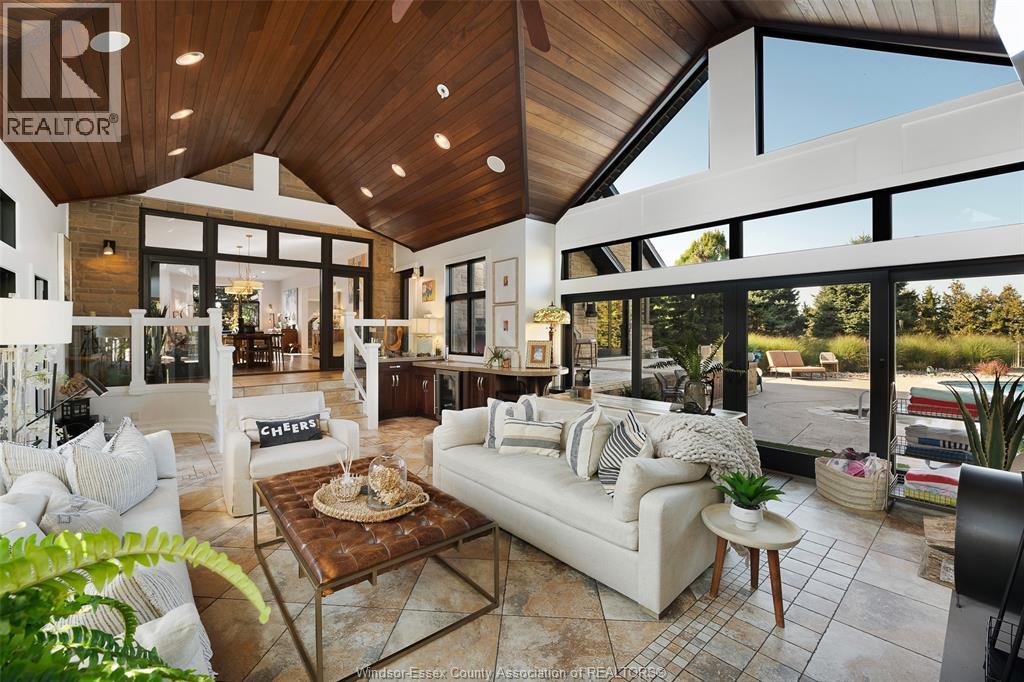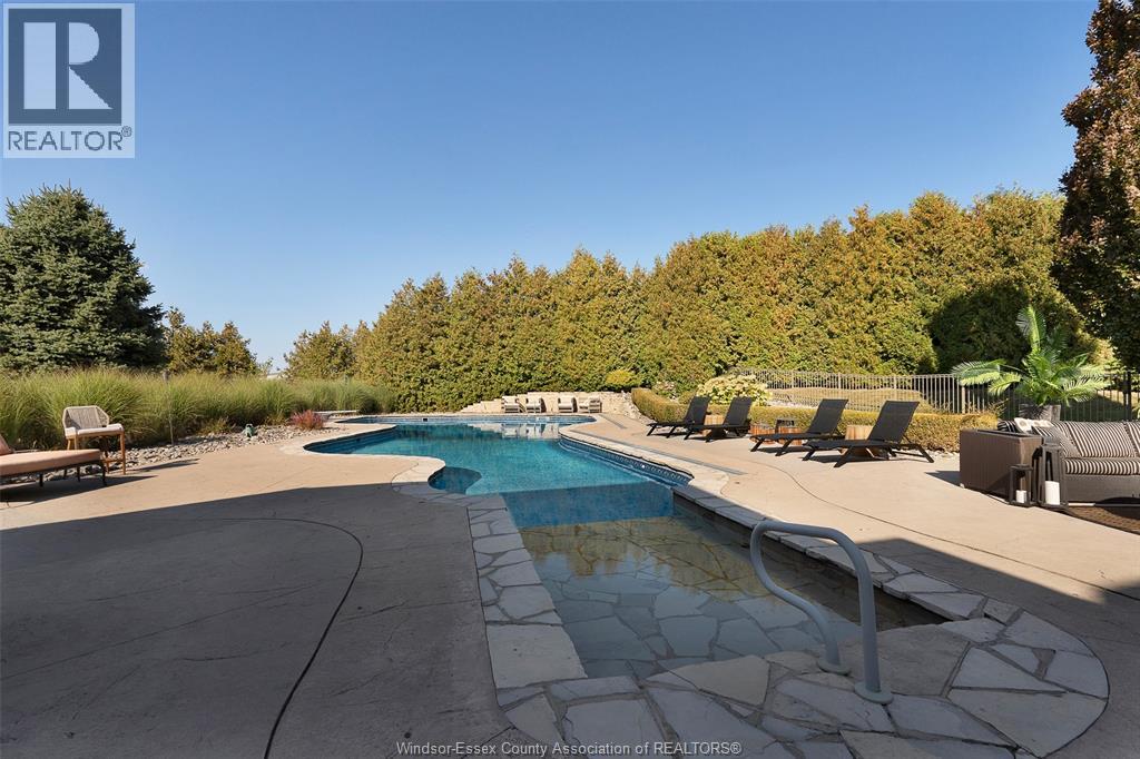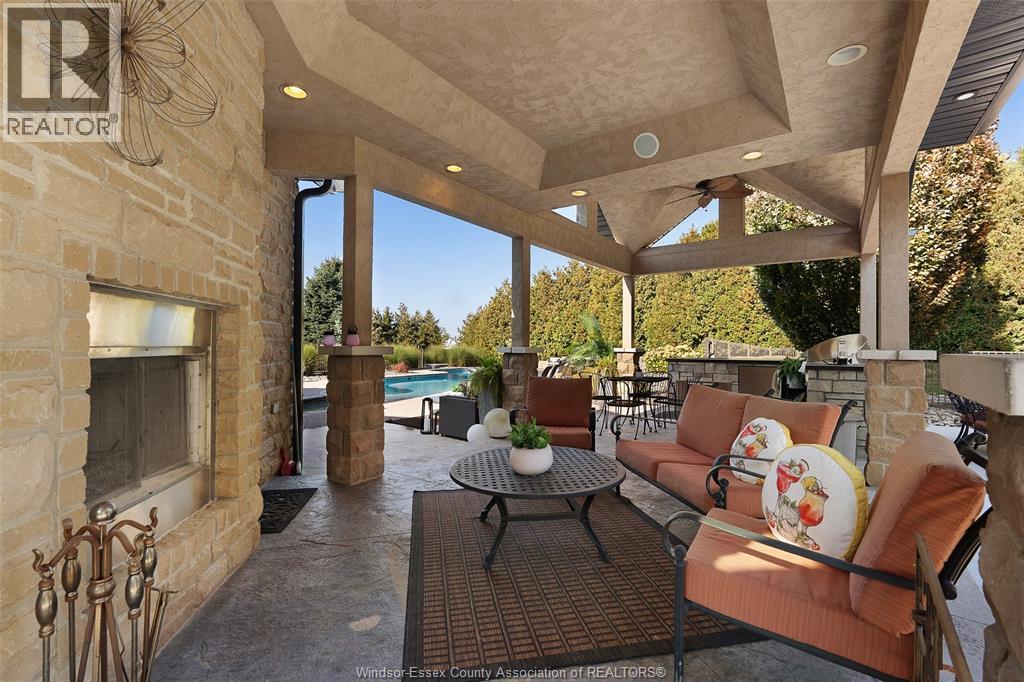 A rare offering — this exquisite custom-built estate with approx 7,500 sq ft is perfectly set on 3+acres of manicured grounds just minutes from charming downtown Kingsville. Every detail is designed for elevated living and effortless entertaining. It features 5 bedrooms, 4.5 baths, 7 fireplaces, soaring 10 ft ceilings, and a stunning full walkout lower level opening to an English sunken garden. This home is complemented with an in-law suite and premium finishes throughout. This smart home has an integrated sound system, automated blinds, and heated floors. Relax in your private retreat with the inground pool, hot tub, and covered lanai, cozy up by the natural fireplace. The tranquil pond and private island offers hammock time or camping for the kids. Chef’s dream kitchen with 14ft Cambria island, walk- in pantry, professional appliances and a dumb-waiter for serving in the lower level. It is flooded with natural light and anchors the home. Primary bedroom features a walk-in closet and a bank of custom cabinetry, en-suite bath and Juliette balcony overlooking mature trees. 3 bedrooms grace the upper floor and lead to the separate in-law suite with lounge and kitchenette area with dedicated entrance. The heated pole barn with separate drive completes this truly exceptional property — a rare fusion of luxury, lifestyle, and location. (id:4555)