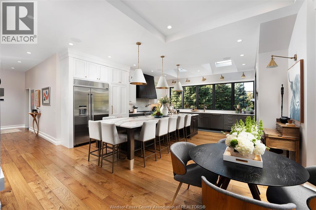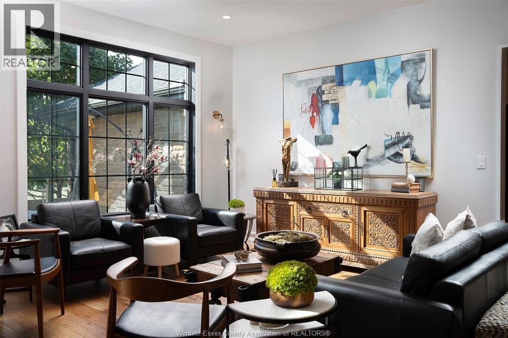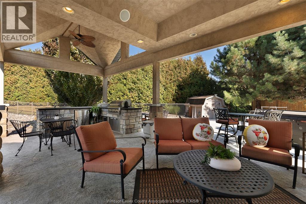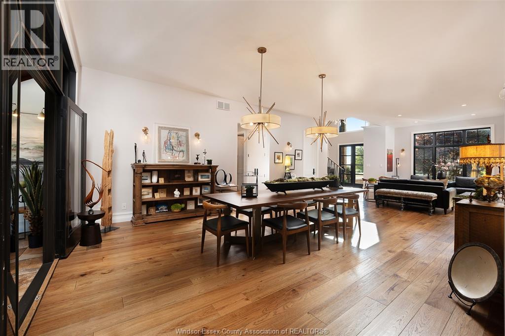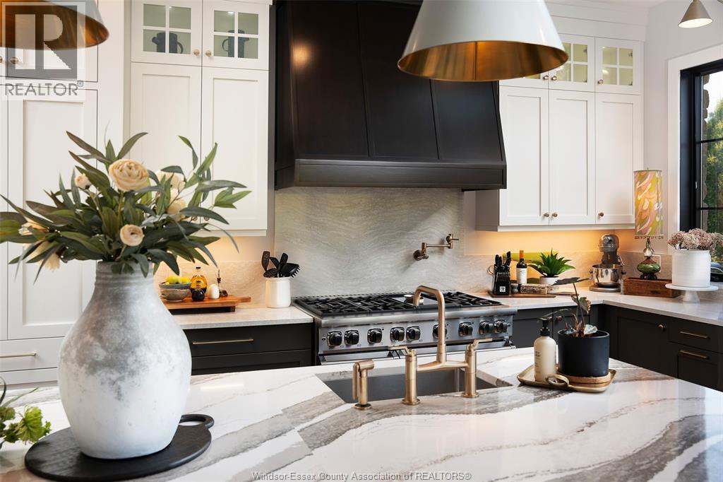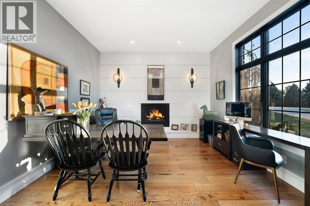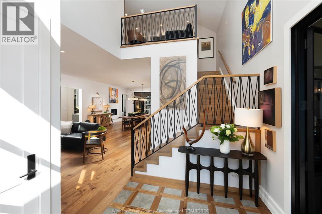 A rare offering — this exquisite custom-built estate with approx 7,500 sq ft is perfectly set on 3+acres of manicured grounds just minutes from charming downtown Kingsville. Every detail is designed for elevated living and effortless entertaining. It features 5 bedrooms, 4.5 baths, 7 fireplaces, soaring 10 ft ceilings, and a stunning full walkout lower level opening to an English sunken garden. This home is complemented with an in-law suite and premium finishes throughout. This smart home has an integrated sound system, automated blinds, and heated floors. Relax in your private retreat with the inground pool, hot tub, and covered lanai, cozy up by the natural fireplace. The tranquil pond and private island offers hammock time or camping for the kids. Chef’s dream kitchen with 14ft Cambria island, walk- in pantry, professional appliances and a dumb-waiter for serving in the lower level. It is flooded with natural light and anchors the home. Primary bedroom features a walk-in closet and a bank of custom cabinetry, en-suite bath and Juliette balcony overlooking mature trees. 3 bedrooms grace the upper floor and lead to the separate in-law suite with lounge and kitchenette area with dedicated entrance. The heated pole barn with separate drive completes this truly exceptional property — a rare fusion of luxury, lifestyle, and location. (id:4555)