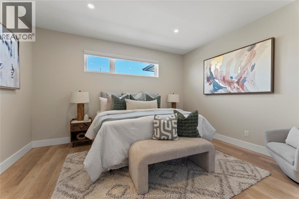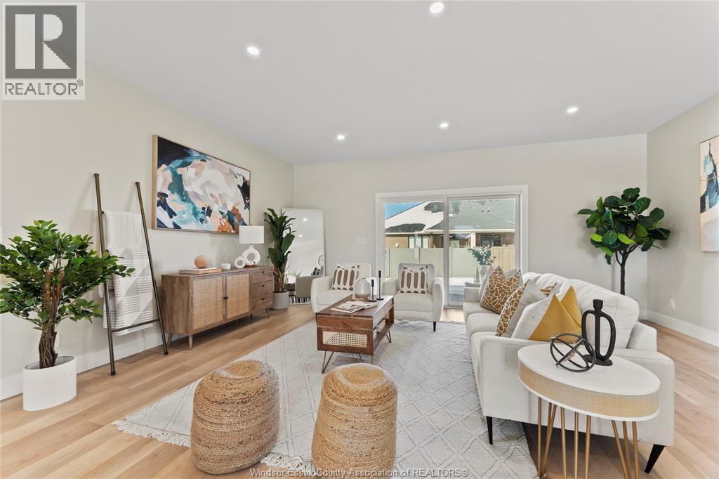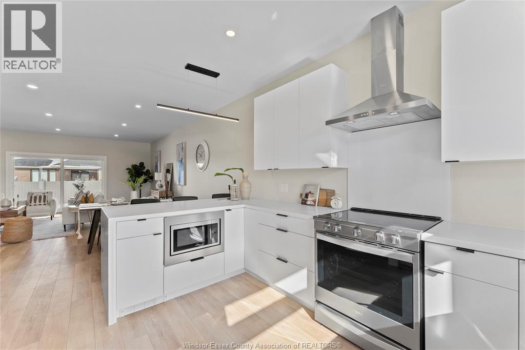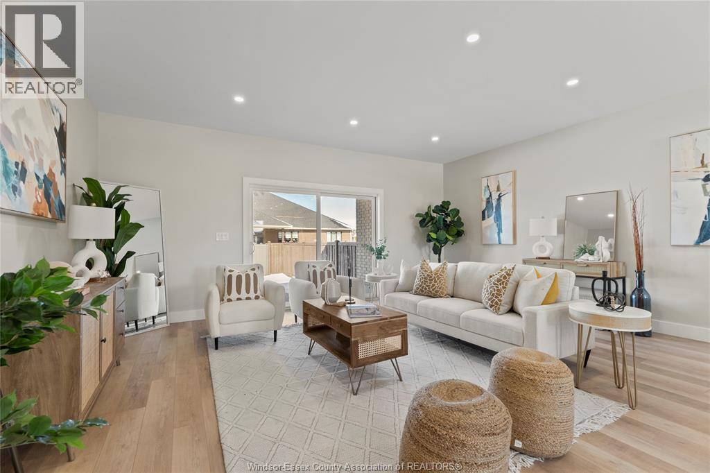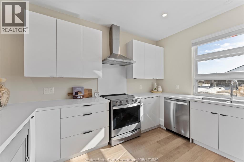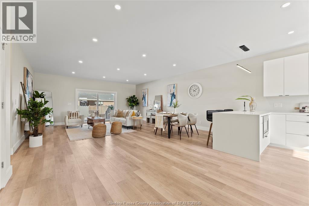 This oversized ranch style semi townhome rests in a prime Kingsville location with upgraded finishes throughout! This 2+1 bedroom, 3 bath contemporary styled design spans approx. 1,550 sqft and is streamlined in a clean and functional retro look. Main floor finishes include porcelain tiles, upgraded wood flooring, curb less walk-in shower, Riobel faucets, clerestory windows, and custom California closets throughout. Open concept kitchen, dining, and family room with warm neutral, nude coloured wood flooring. Fully finished basement with large family & recreation room, spacious bedroom with walk-in California closet, separate 3pc bath and utility. Double car garage leads to organized laundry/mud room. Expansive and fully covered rear patio with outdoor fan, clean modern looking front landscaping, and cement drive. (id:4555)