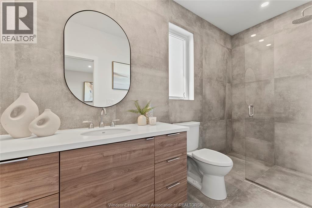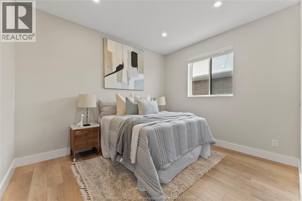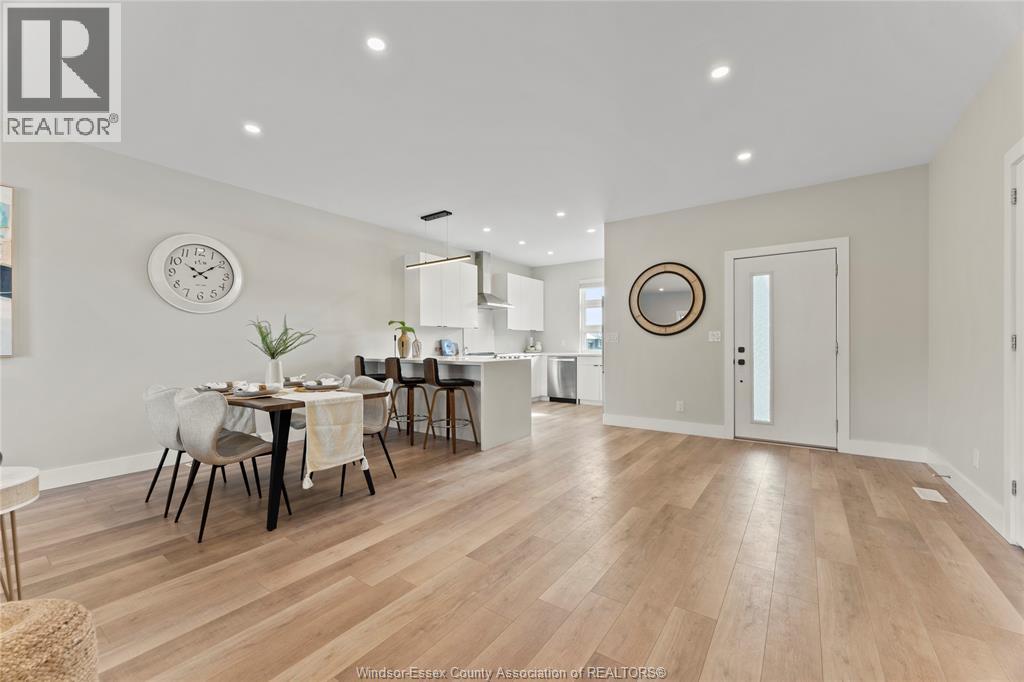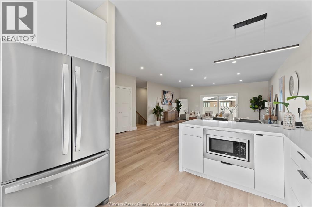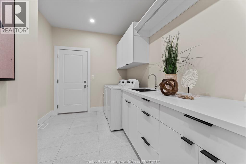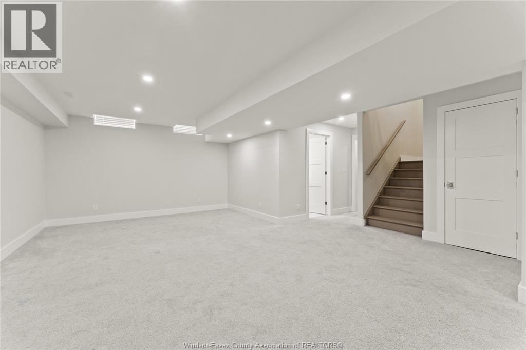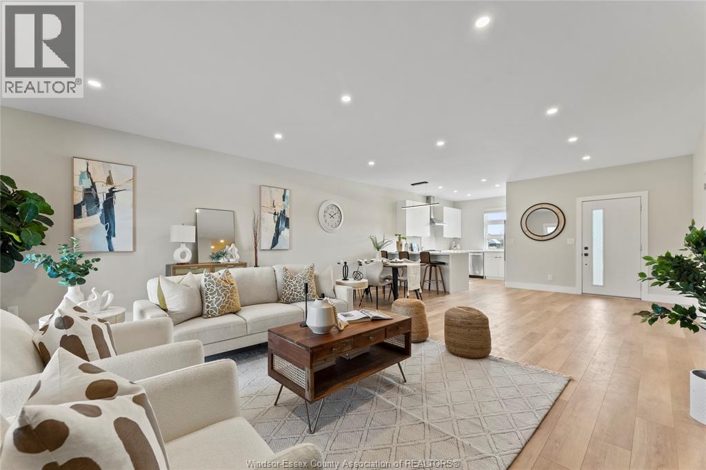 This oversized ranch style semi townhome rests in a prime Kingsville location with upgraded finishes throughout! This 2+1 bedroom, 3 bath contemporary styled design spans approx. 1,550 sqft and is streamlined in a clean and functional retro look. Main floor finishes include porcelain tiles, upgraded wood flooring, curb less walk-in shower, Riobel faucets, clerestory windows, and custom California closets throughout. Open concept kitchen, dining, and family room with warm neutral, nude coloured wood flooring. Fully finished basement with large family & recreation room, spacious bedroom with walk-in California closet, separate 3pc bath and utility. Double car garage leads to organized laundry/mud room. Expansive and fully covered rear patio with outdoor fan, clean modern looking front landscaping, and cement drive. (id:4555)