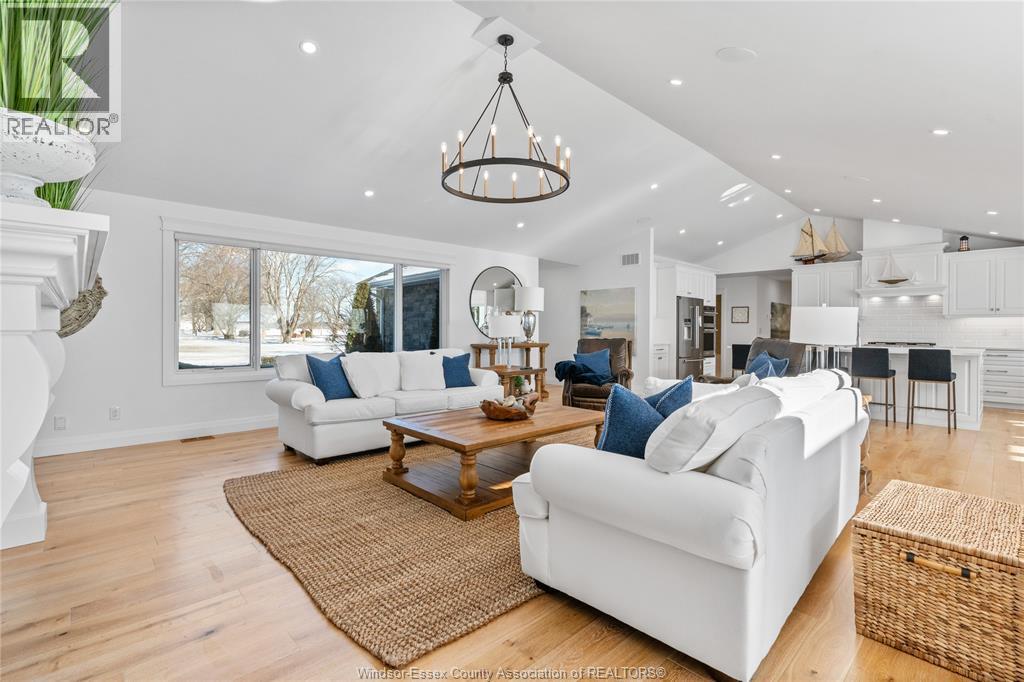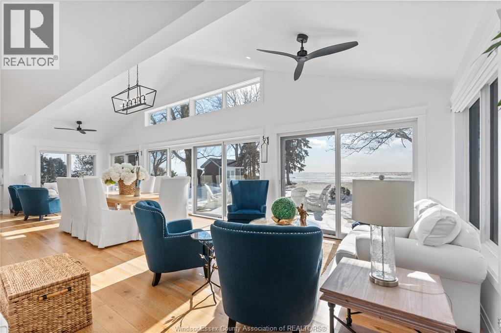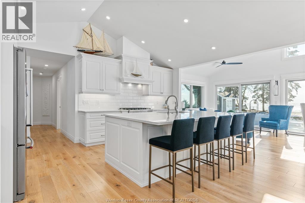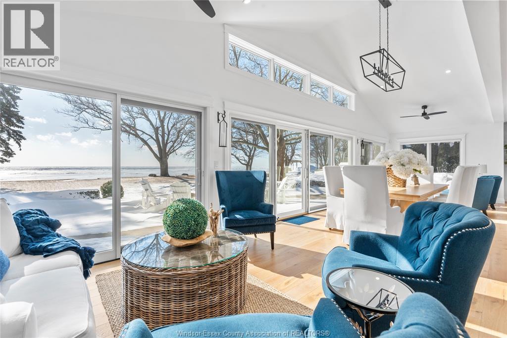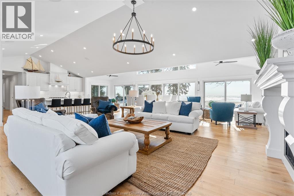 Extraordinary waterfront home, offering 100 feet of frontage and over 500 feet of depth, completely reconstructed in 2020 with only one original wall remaining. This stunning home spans approximately 2,900 sqft and delivers panoramic water views, breathtaking sunrises and sunsets, and direct access to a sandy beach with a new steel breakwall and wide steps—perfect for enjoying life on the water. Designed for both comfort and entertaining, the home features a bright open-concept layout with cathedral ceilings and multiple inviting conversation areas, all framed by expansive waterfront views. The custom kitchen is a true centerpiece, complemented by a walk-in pantry, while the welcoming front entrance includes a walk-in coat closet for everyday convenience. The spacious layout offers 3+1 bedrooms, office and 3 full bathrooms, including a serene primary suite and a second bedroom with waterfront views. Listing agent must be at all viewings. (id:4555)