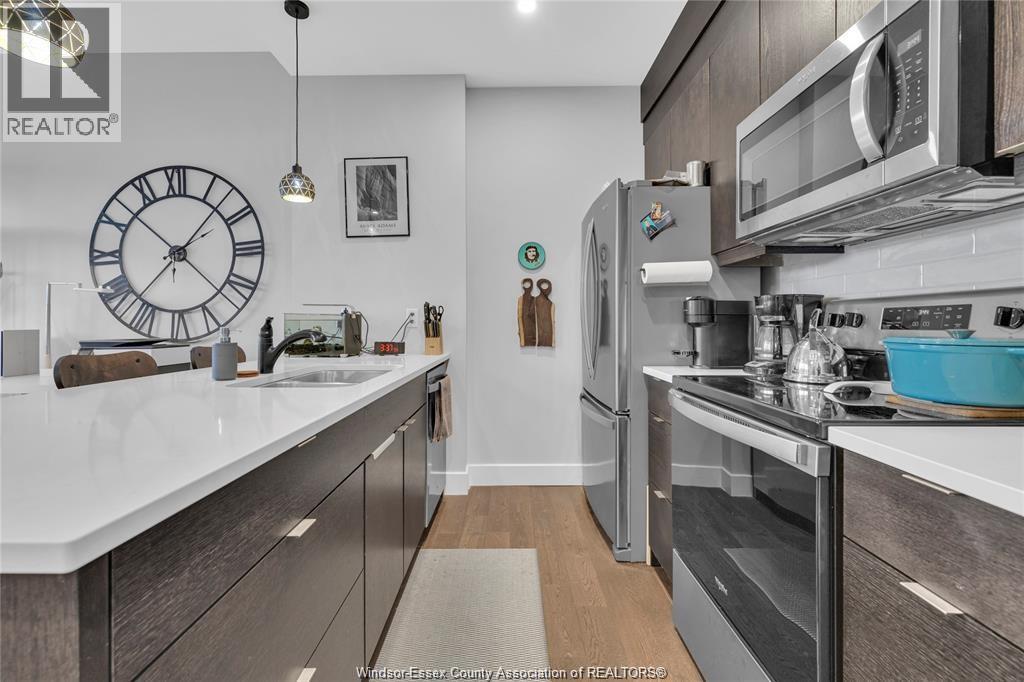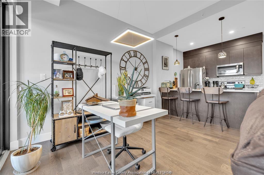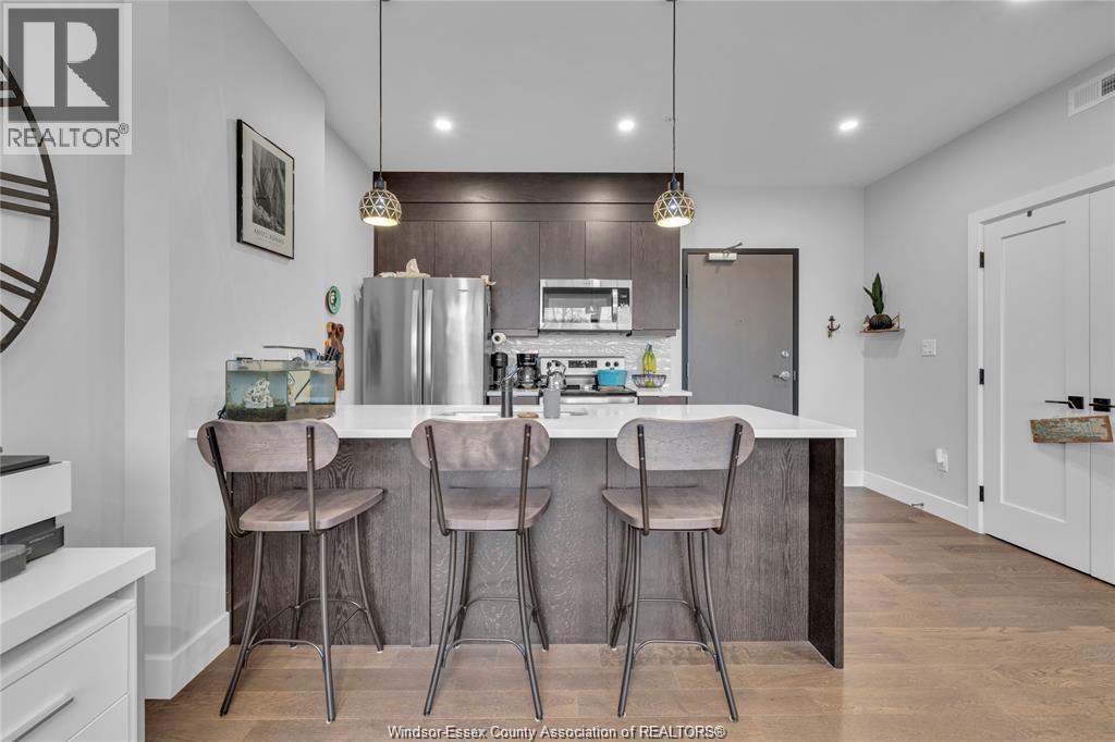 Stunning main level condo in beautiful Kingsville featuring oversized patio doors that fill the space with natural light and open to a private patio/balcony! The open-concept kitchen with island overlooks the dining area and living room with a cozy fireplace, creating a perfect space for both everyday living and entertaining. Beautiful hardwood flooring flows throughout, adding warmth and elegance. This well designed 1-bedroom, 1-bath home also offers the rare convenience of in-suite laundry. An ideal opportunity for first-time buyers, down-sizers, or investors. (id:4555)