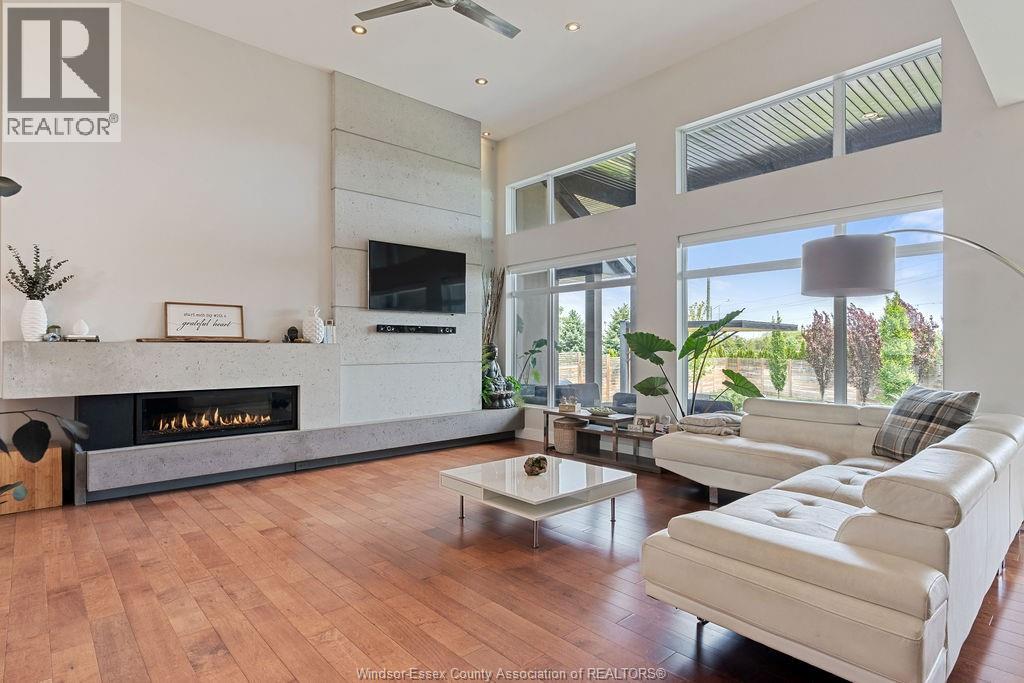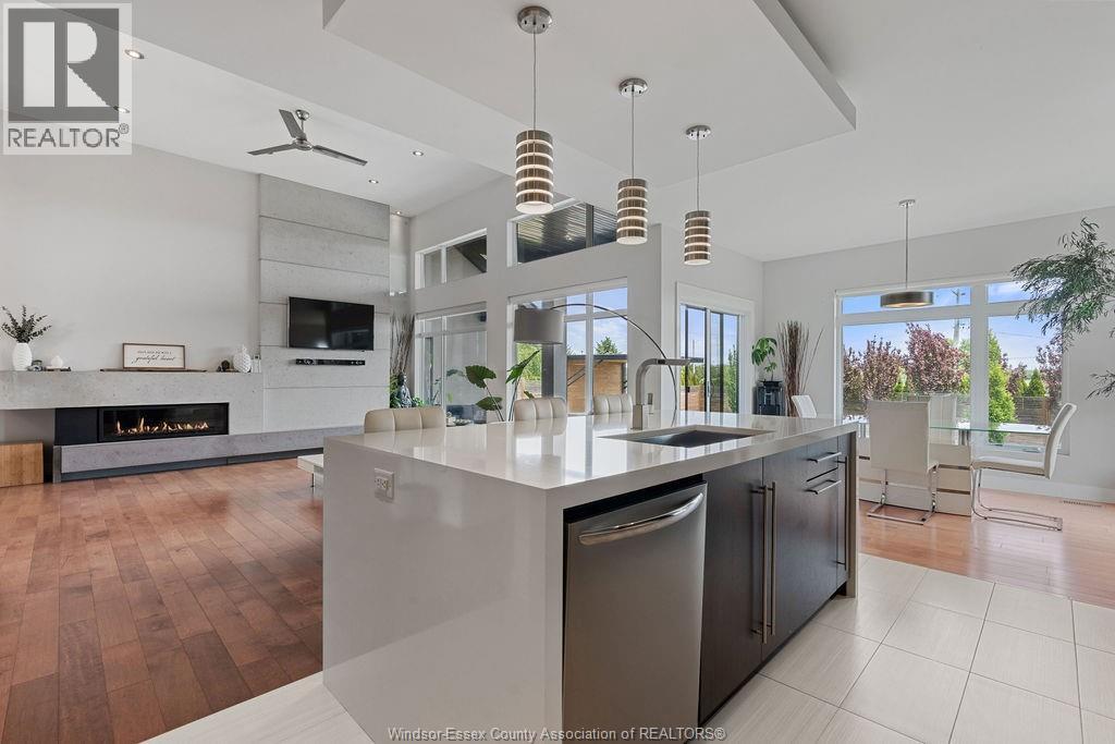 Exceptional ranch offering a seamless blend of modern design, quality craftsmanship, and upscale comfort. Located in a desirable, quiet neighbourhood, this home showcases elegant finishes and thoughtfully selected details throughout. The designer kitchen features Cambria quartz countertops with dramatic waterfall edges, sleek cabinetry, and a hidden walk-in pantry—perfect for both everyday living and entertaining. The open-concept layout is highlighted by soaring 15-foot ceilings, a striking linear gas fireplace, and bold architectural accents, creating a space that is both impressive and inviting. The lower level provides two additional bedrooms, ample storage, and versatile living space to accommodate family, guests, or home office needs. Outside, the private backyard offers a tranquil retreat with custom lighting, water features, and a covered porch—ideal for relaxing or entertaining during the warmer months. A rare opportunity to own a turn-key home that seamlessly combines luxury, privacy, and function. (id:4555)