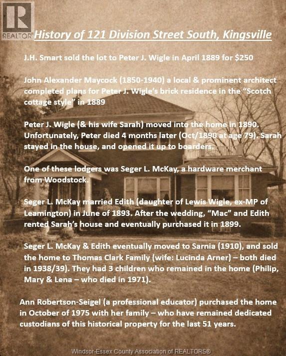 Lovingly maintained by the same family for over 50 years, this 1890 ""Scotch Cottage"" style estate offers a rare blend of historic charm and modern potential. Situated on a sprawling 0.5+ acre lot on a prestigious tree-lined street, this full-brick residence is just steps from downtown Kingsville and the shores of Lake Erie. The home features a steel roof, classic hardwood (under carpet) and ceramic flooring. Outside, the perennial gardens and courtyard are shaded by mature trees, creating a private sanctuary. A professionally built detached cottage in the backyard offers the perfect footprint for a creative studio or ""she-shed."" Currently configured as a duplex with separate entrances, this versatile property can easily serve as a grand single-family home, a multi-generational ""granny flat,"" or a lucrative B&B. While the kitchen and baths await your personal touch, they beautifully preserve the character of the era. All measurements are approximate. (id:4555)