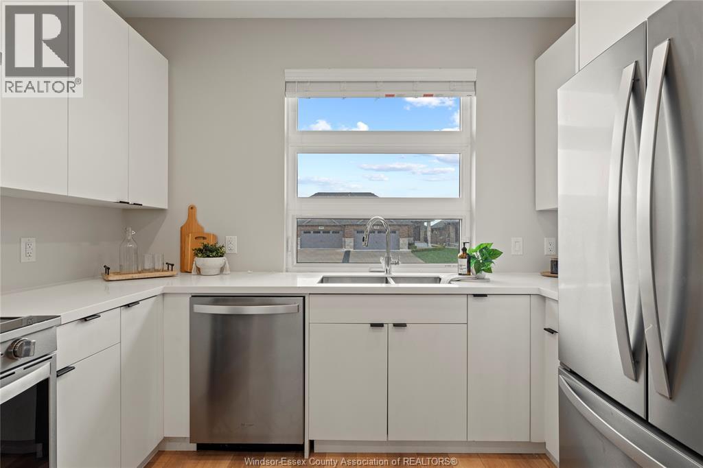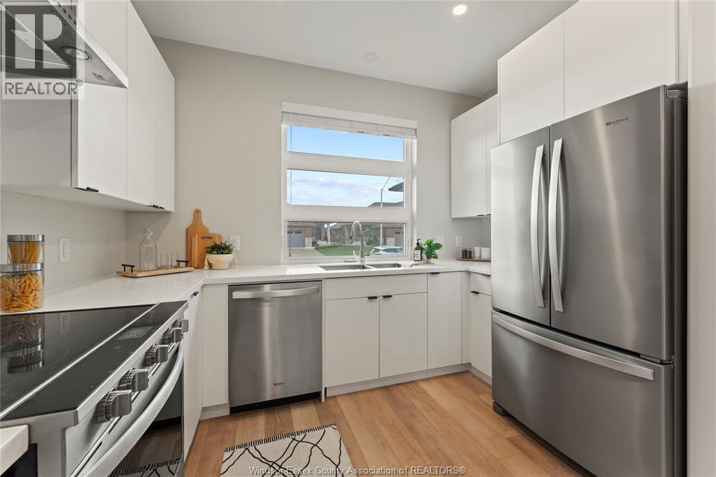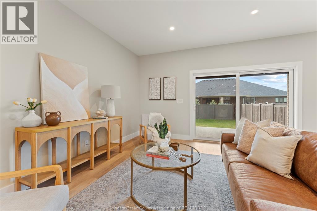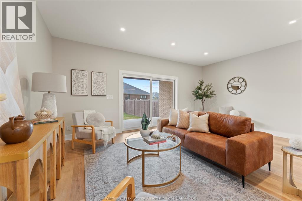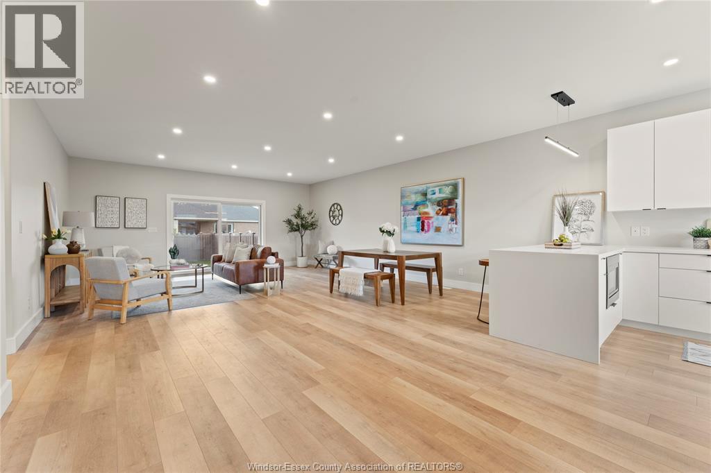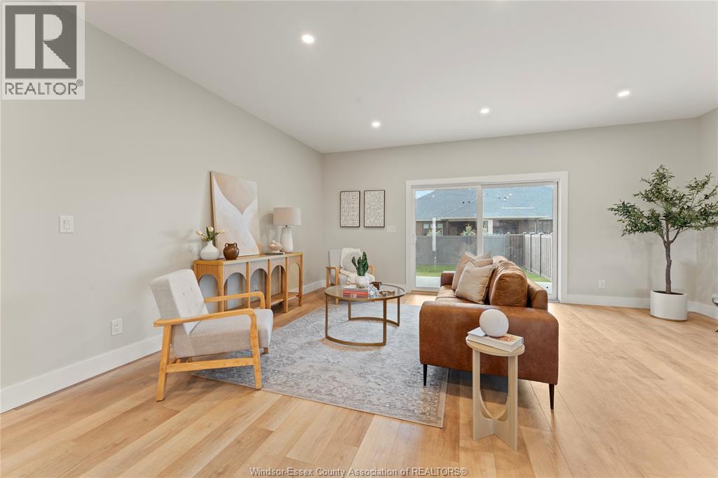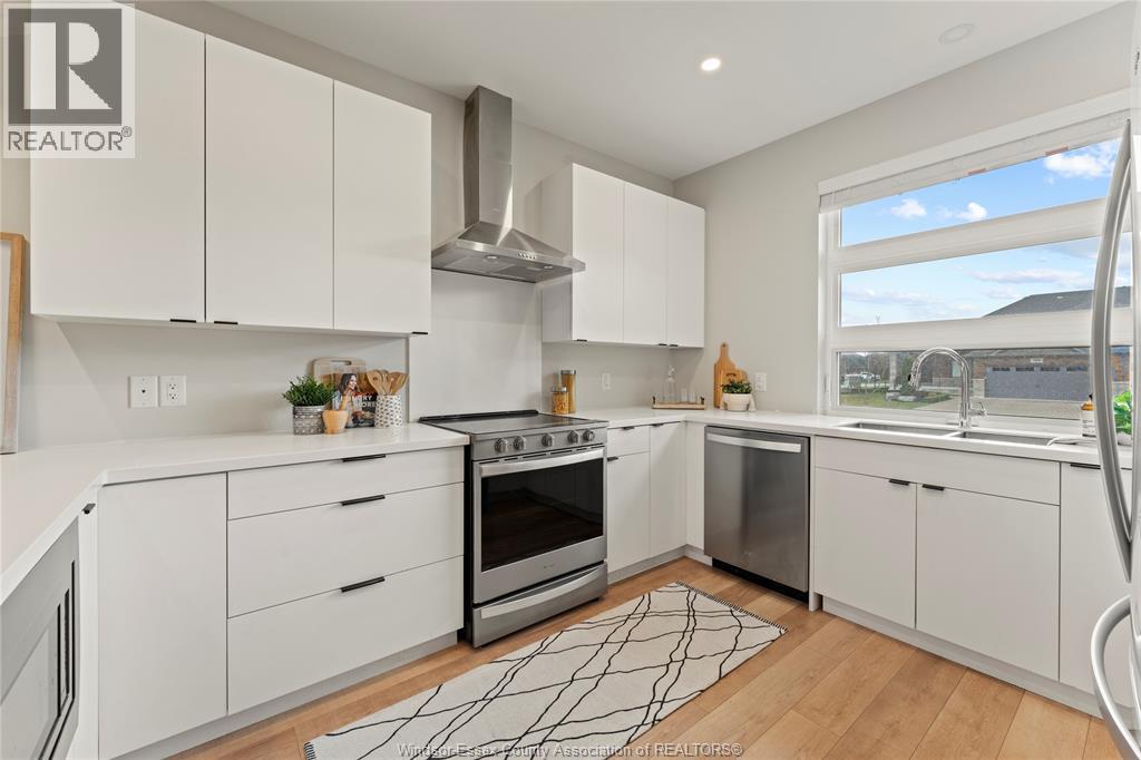This oversized ranch style semi townhome rests in a prime Kingsville location with upgraded finishes throughout! This 2+1 bedroom, 3 bath contemporary styled design spans approx. 1,550 sqft and is streamlined in a clean and functional retro look. Main floor finishes include porcelain tiles, upgraded wood flooring, curb less walk-in shower, Riobel faucets, clerestory windows, and custom California closets throughout. Open concept kitchen, dining, and family room with warm neutral, nude coloured wood flooring. Fully finished basement with large family & recreation room, spacious bedroom with walk-in California closet, separate 3pc bath and utility. Double car garage leads to organized laundry/mud room. Expansive and fully covered rear patio with outdoor fan, clean modern looking front landscaping, and cement drive. (id:4555)