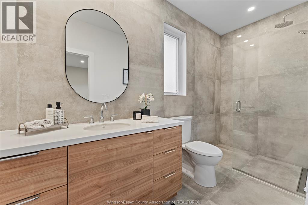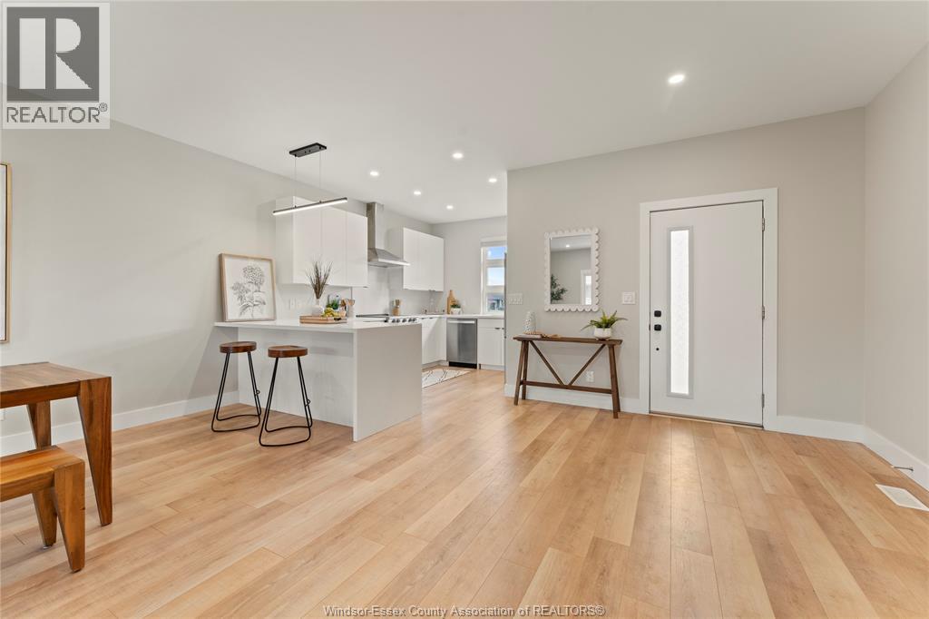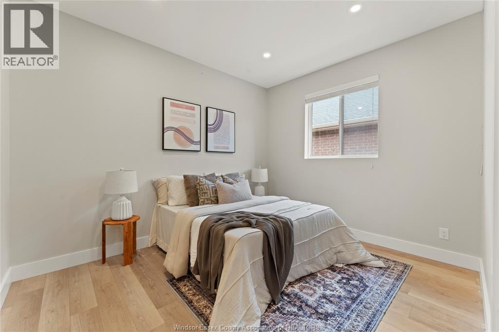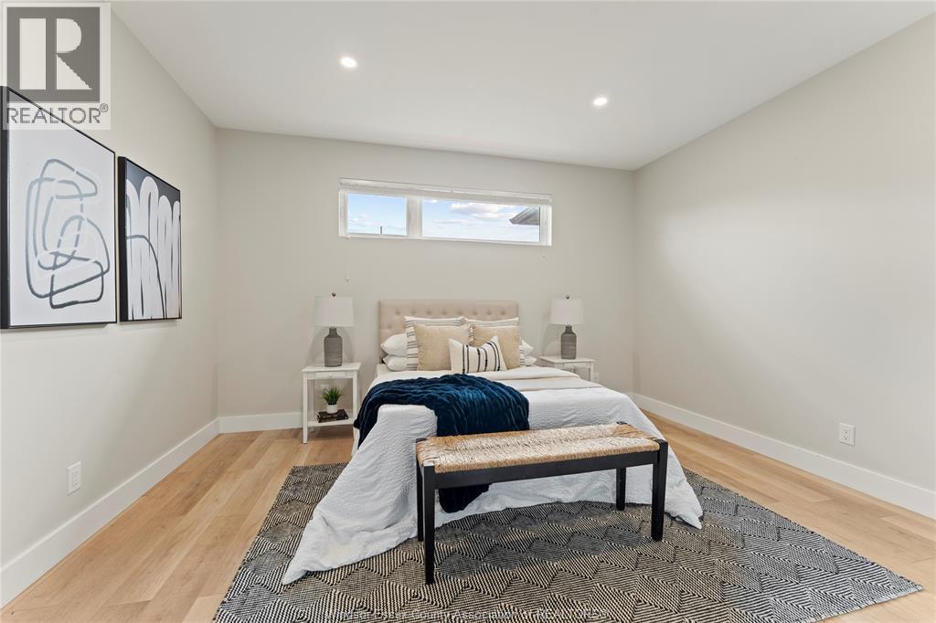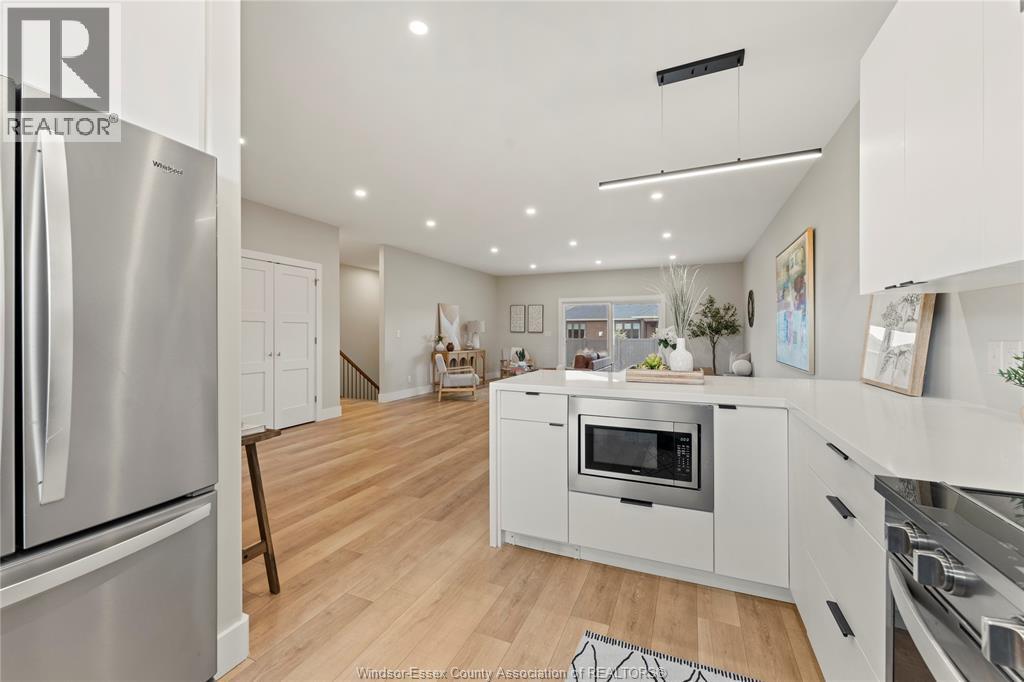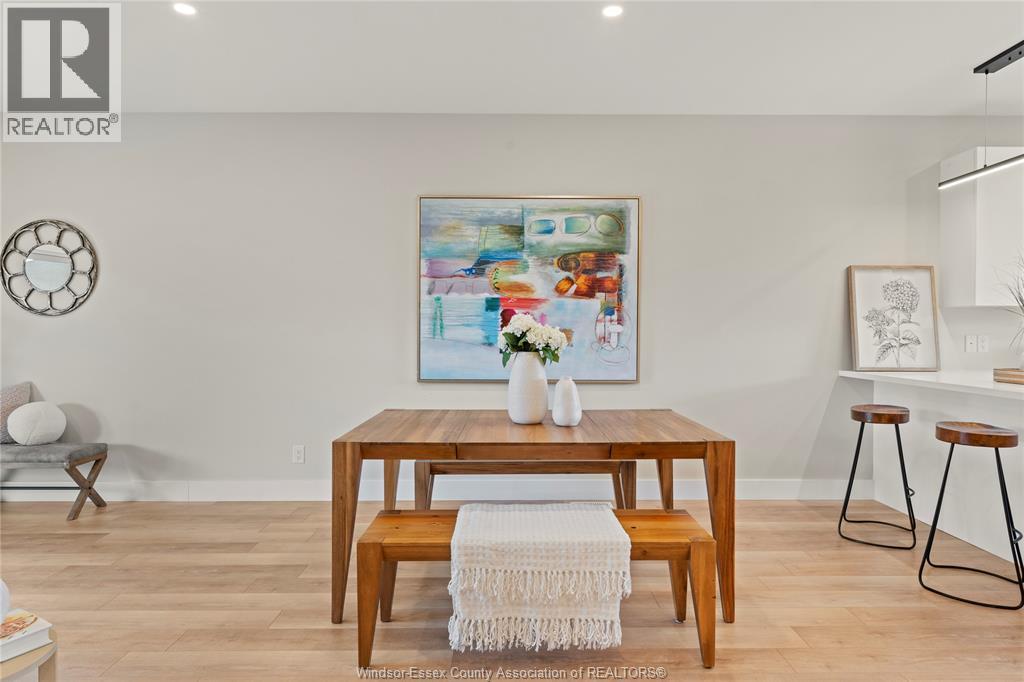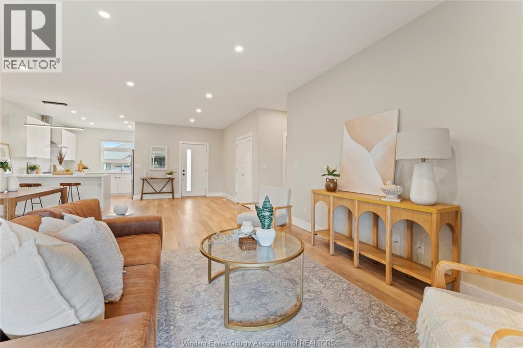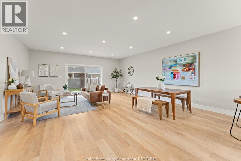 This oversized ranch style semi townhome rests in a prime Kingsville location with upgraded finishes throughout! This 2+1 bedroom, 3 bath contemporary styled design spans approx. 1,550 sqft and is streamlined in a clean and functional retro look. Main floor finishes include porcelain tiles, upgraded wood flooring, curb less walk-in shower, Riobel faucets, clerestory windows, and custom California closets throughout. Open concept kitchen, dining, and family room with warm neutral, nude coloured wood flooring. Fully finished basement with large family & recreation room, spacious bedroom with walk-in California closet, separate 3pc bath and utility. Double car garage leads to organized laundry/mud room. Expansive and fully covered rear patio with outdoor fan, clean modern looking front landscaping, and cement drive. (id:4555)