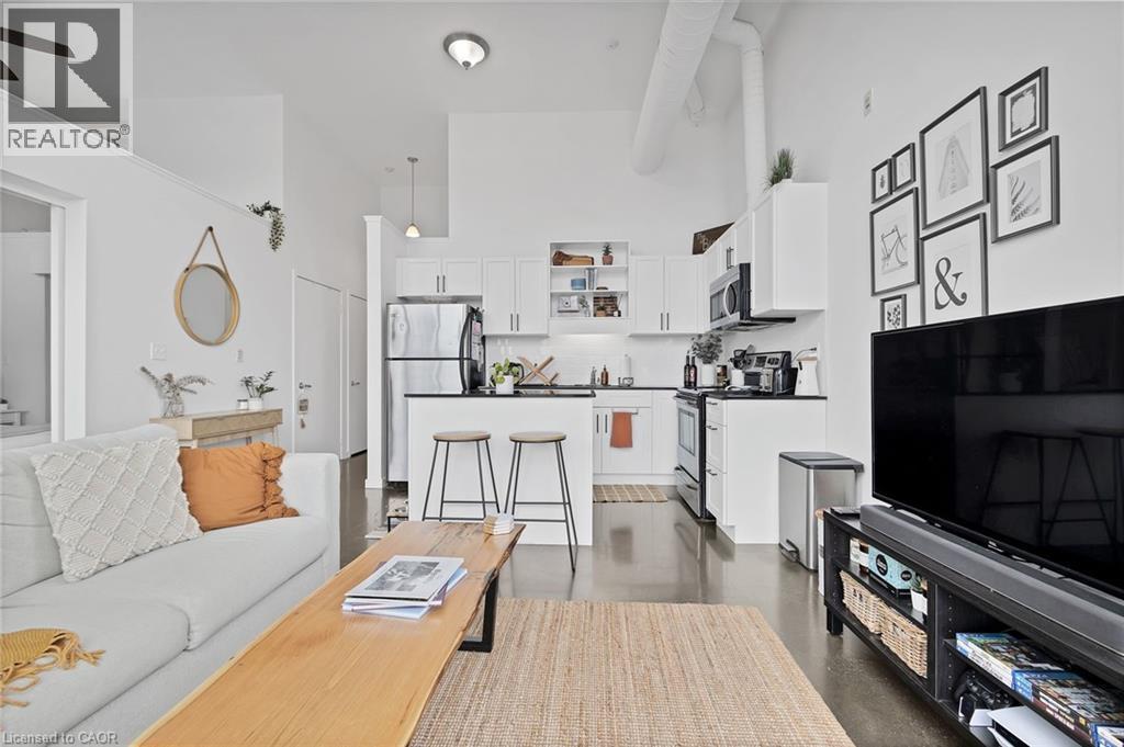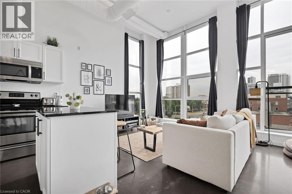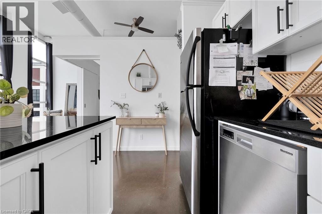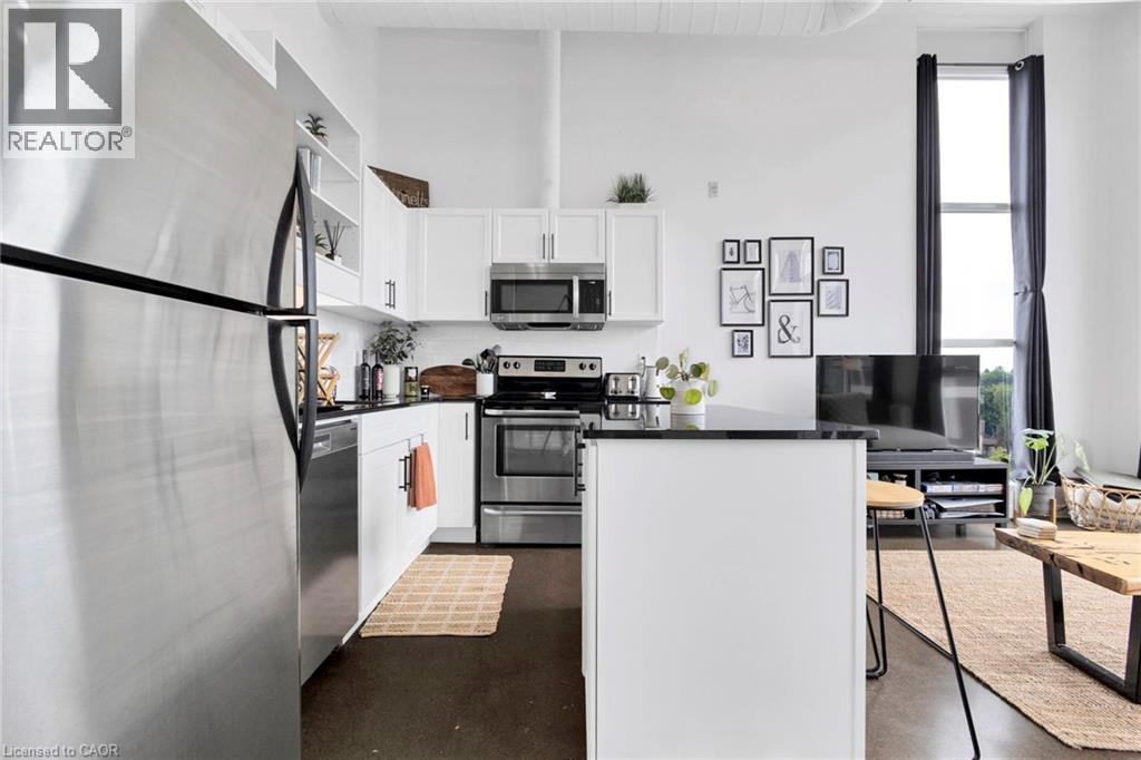 Corner Unit South east view Kaufman 5th Floor, wide view of the cityscape and only one adjoining neighbor. Open concept design and high ceilings offer a great floor plan in an economical space. Bonus computer nook wired for internet. Six appliances incl., Access to party room & one of the best views of the city on the roof top terrace that allows BBQ. Parking & storage locker incl. 1 parking spaces and locker storage! Maintenance includes, water, water heating, unit heat-AC Natural light floor to ceiling windows, newer appliances & closet organizers, floor to ceiling black out curtains. Directly to the LRT & public transit from your door step. Go & Via. As would be expected in downtown living high walk score with eatery's, Victoria Park. Events Oktoberfest & Santa parade- Waterloo School Of Pharmacy, The Tannery, Google & myriad of different business hubs of employment steps from your door. (id:4555)