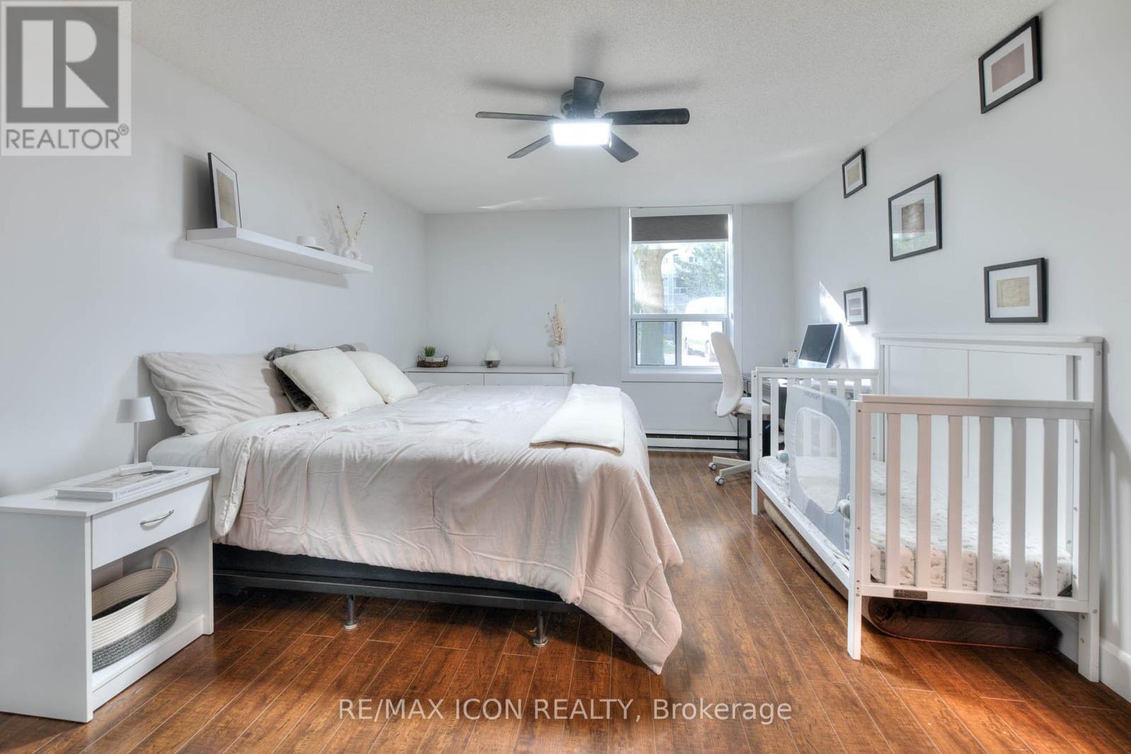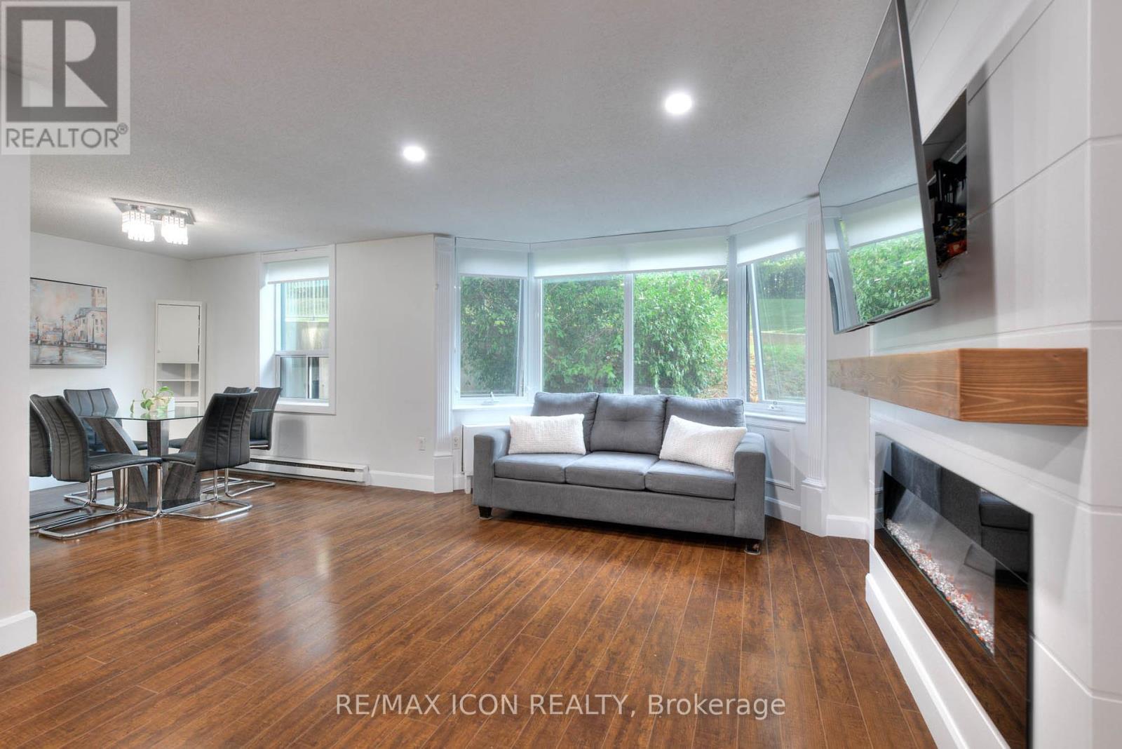 Welcome to luxury living at 103 - 35 Green Valley Drive, Kitchener. This splendid 2 bed, 2 bath residence combines modern sophistication with timeless comfort, offering a home you'll be proud to call your own. Every detail has been thoughtfully curated, from the sleek renovations to the tranquil natural setting. Step inside and you'll be greeted by bright, freshly painted interiors (2025) accented with upgraded baseboards, window frames, and door casings (2025), giving the unit a refined elegance. Lovely flooring pairs beautifully with newly added pot lights (2022) and updated light fixtures, creating a warm and inviting ambiance throughout. The spacious kitchen has been upgraded with a new countertop (2020), along with a newer stove and fridge (2023), complemented by a washer and dryer (2025). An elegant electric fireplace (2023) adds both comfort and style. The thoughtful renovations continue with renovated closets, a new electrical panel (2022), and upgraded outside windows (2024), ensuring both functionality and peace of mind. Beyond the unit itself, serenity abounds. The calming flow of the Grand River and the surrounding walking trails offer a daily retreat into nature. Conveniently situated near Highway 401 and Conestoga College, this residence provides easy access to major routes, while a nearby plaza offers groceries, dining, and retail options just steps away. Families will also appreciate its close proximity to schools, parks, and public transit. The building welcomes you with a secure entrance and inviting lobby, including variety of amenities, a gym with sauna, a quiet room, a party room, and a bike room. Surrounding parks provide safe and enjoyable outdoor spaces for both adults and children alike. This home offers more than just a place to live-it delivers a lifestyle of convenience, and elegance. We invite you to experience the allure of this remarkable residence and make it your own. (id:4555)