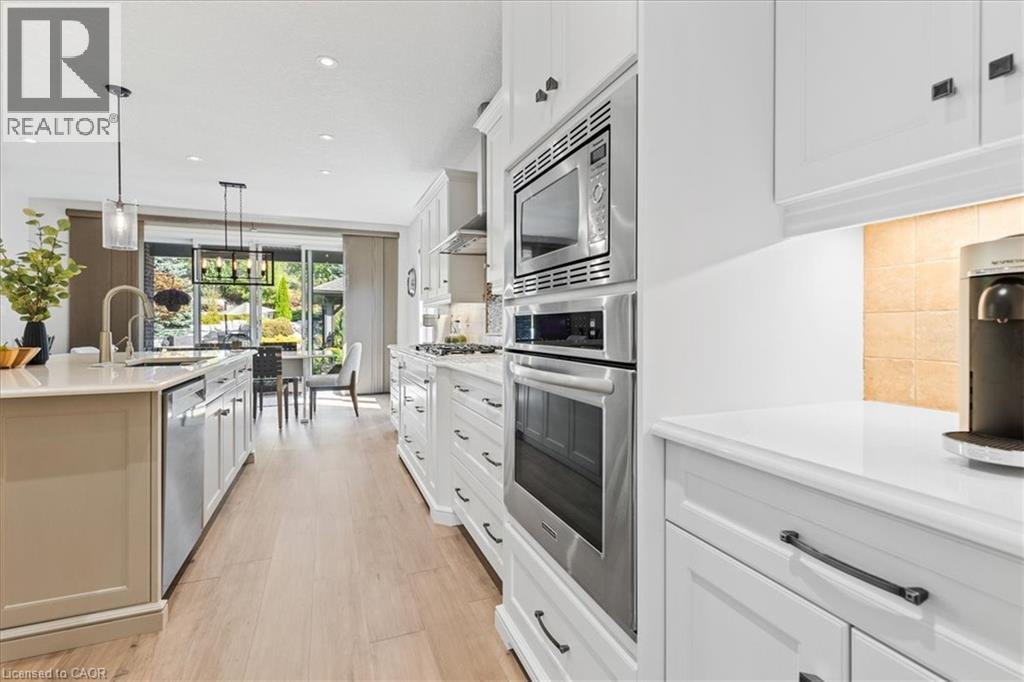 Welcome to 237 River Birch— in prestigious Hidden Valley. This custom home combines luxury finishings with warm, inviting spaces set off by a stunning landscape that surrounds the home. Inside this gorgeous estate home, find newly installed white maple engineered hardwood flowing seamlessly throughout the main and second floors, setting a bright but elegant tone.The chef’s kitchen showcases fresh and elegant quartz countertops, high-end appliances, and a custom quartz dining table in the eat-in area. The adjacent living room features a new stone wrapped fireplace with custom built-ins and panoramic views of the breathtaking backyard. Upstairs, the primary suite offers a spacious custom walk-in closet and a newly updated spa-style en-suite. Two additional bedrooms each enjoy their own walk-in closets and private ensuites. The lower level, warmed by in-floor heating, provides a versatile space: an ample rec room with a fireplace, a craft or game area, a gym with direct garage access, and a fourth bedroom. The extra-wide, high-ceiling double garage easily accommodates three vehicles in tandem with generous ceiling height-ideal for a car lift and ample built in storage. Step outside to your covered deck to view the private gardens which cascade down Hidden Valley’s glacial esker. The meticulously landscaped grounds include a tranquil brook, pristine saltwater pool, covered deck, pavilion, and a built-in gas BBQ with a large outdoor firepit—perfect for entertaining or quiet evenings. Modern sophistication meets everyday comfort—welcome home to 237 River Birch (id:4555)