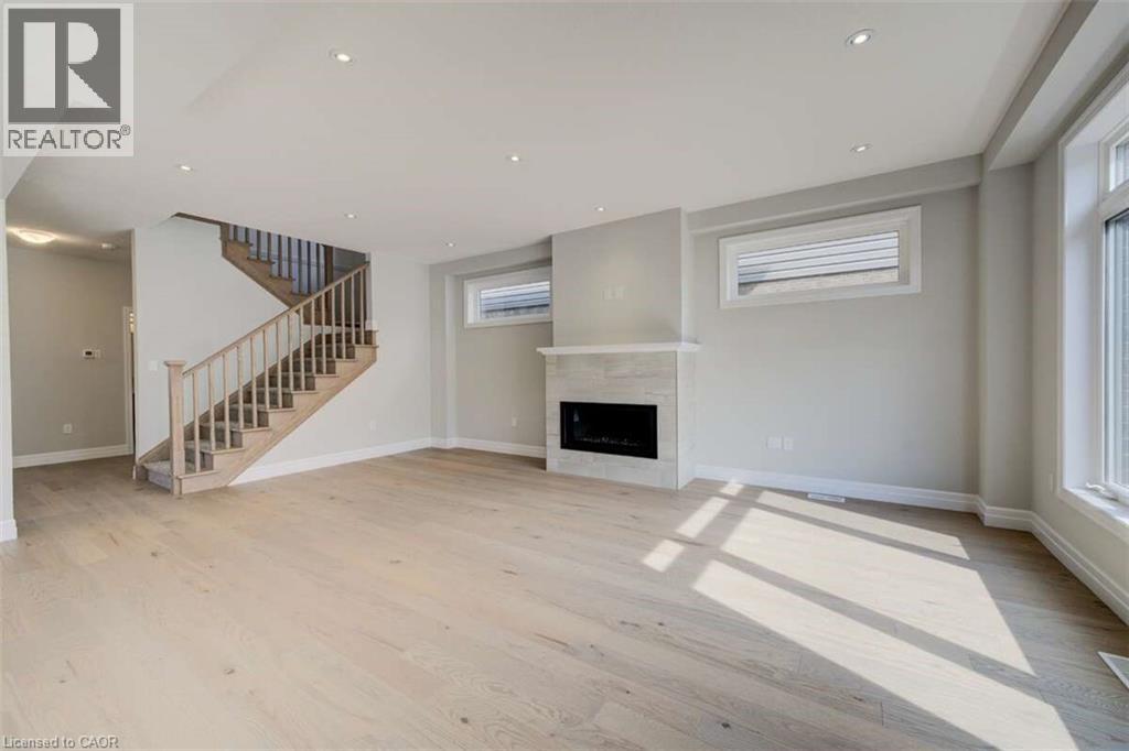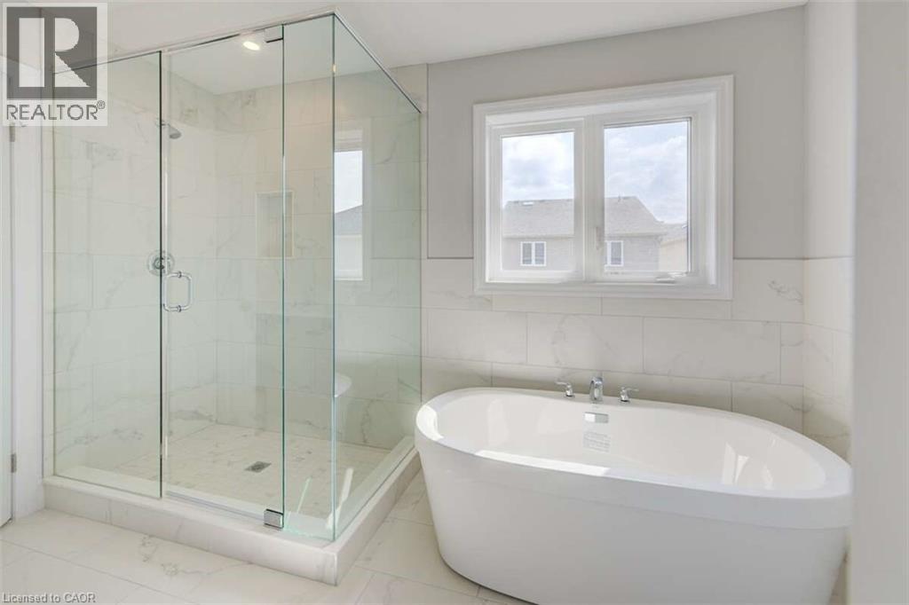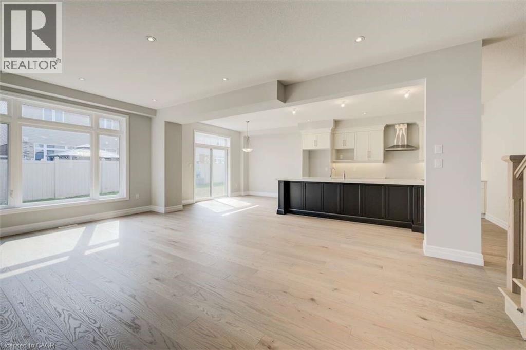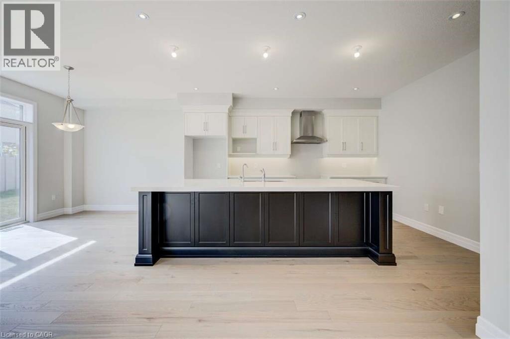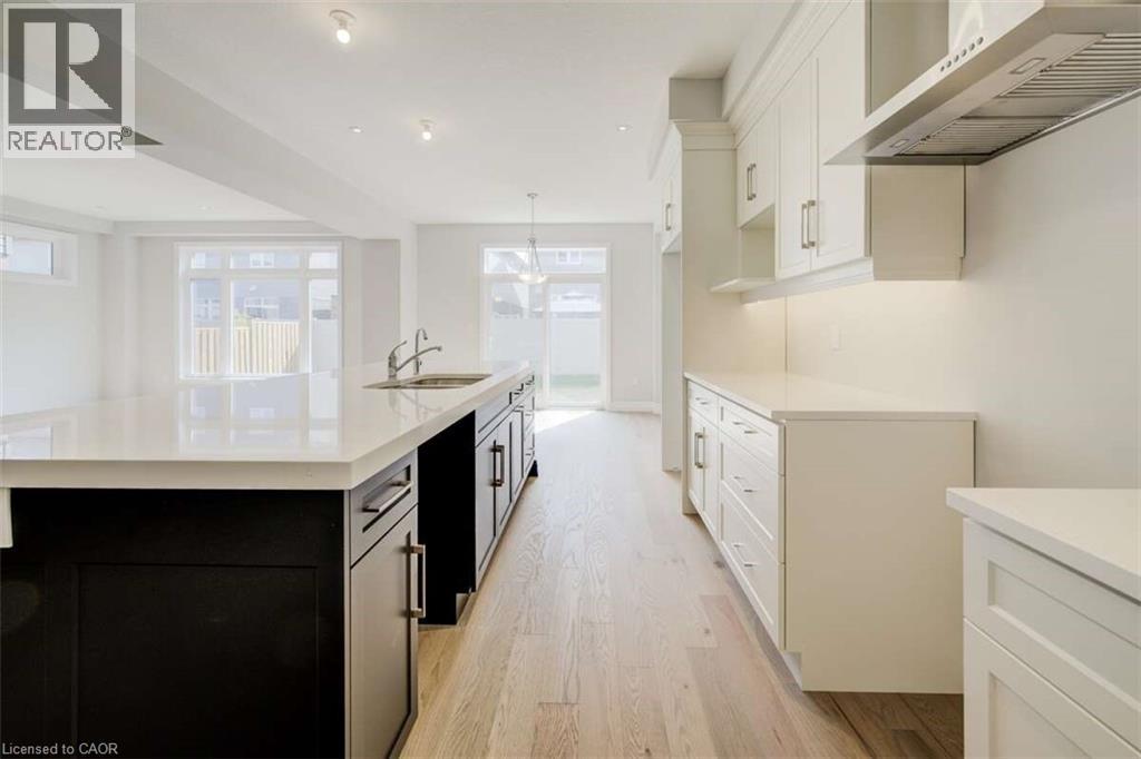 For more info on this property, please click the Brochure button.Located at 83 Crosswinds Drive in Kitchener, ON, this open-concept two-story home is 2485 finished square feet with an attached double garage and a paved driveway, withing walking distance of a neighborhood park. The main floor, with a 9-foot-high ceiling, consists of a great room, kitchen, dinette, den with a large front-facing window and a powder room. The great room includes a modern linear gas fireplace, pot lights and a large window with a view of the backyard. The kitchen, brightly lit by pot lights, contains upgraded white cabinetry with upper under-cabinet lighting, premium quartz countertops and a generous black island that includes a breakfast bar. The dinette features a pendant light fixture and a sliding patio door with access to the rear yard. Hardwood flooring covers the main level, except for tile flooring in the powder room and entrance from the garage. An oak staircase to the second floor is brightened by a window in the landing area. The upper level includes four bedrooms, a main bathroom with two vanities and a skylight, as well as a conveniently located laundry room. The master bedroom has a coffered ceiling, a generous walk-in closet and a luxurious ensuite with a free-standing soaker tub, tile shower with glass surround and door and a separate toilet room. Additional items included are air conditioning, five appliances and a chimney-style rangehood in the kitchen. This new home is finished and move-in ready! Property not yet assessed. (id:4555)