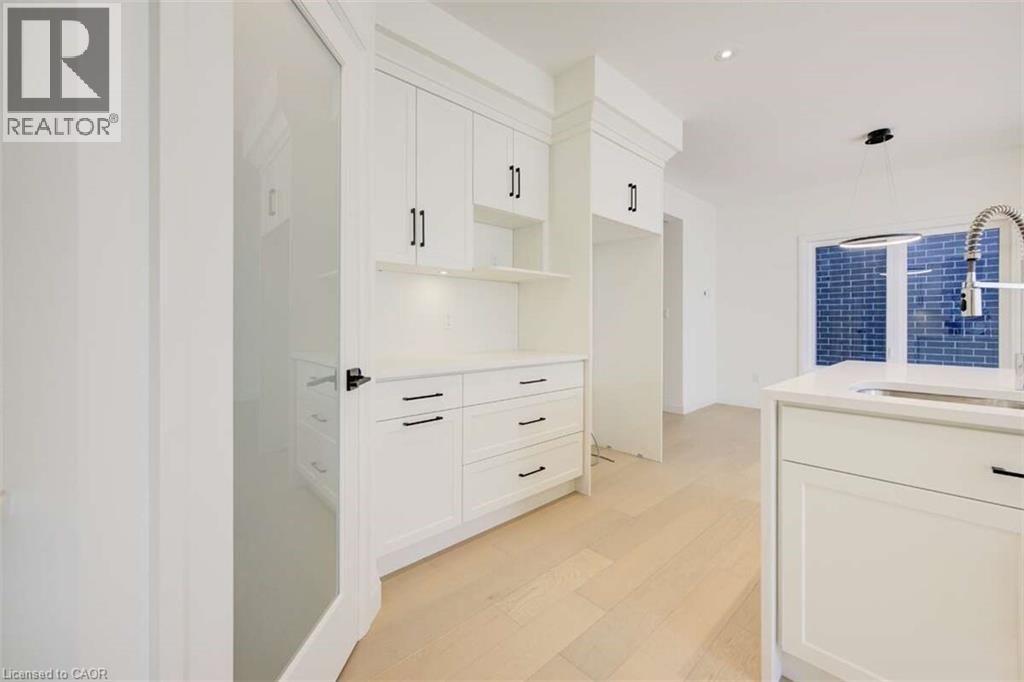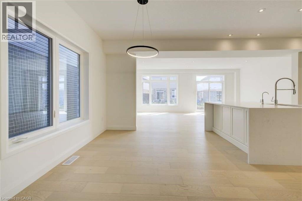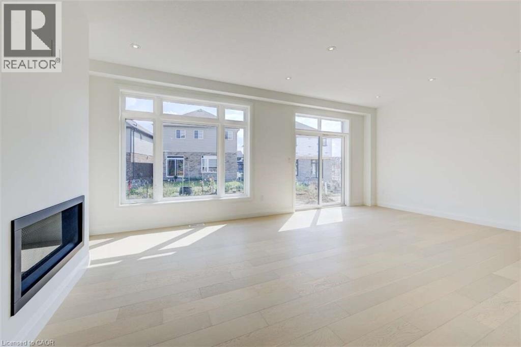 For more info on this property, please click the Brochure button. Located at 278 Rivertrail Ave in Kitchener, ON, this two-story home is 2176 finished square feet with an attached garage and a paved two vehicle-wide driveway. The upgraded stone front and entry door are a welcome introduction to the main floor open-concept design with nine-foot ceilings. The great room includes a modern linear gas fireplace, pot lights, a large window and a sliding patio door to access the rear yard. The kitchen, brightly lit with pot lights, contains upgraded white cabinetry with premium quartz countertops, a large island with a waterfall countertop, under top cabinet lighting, a walk-in pantry and dinette area. Hardwood flooring covers the main level, except for tile flooring in the powder room. An oak staircase leads upstairs, where the second floor is brightened by a skylight in the vaulted ceiling. This level includes four bedrooms, a main bathroom with two vanities and a skylight, as well as a conveniently located laundry room. The master bedroom has a coffered ceiling, a generous walk-in closet and a luxurious ensuite with a skylight, a free-standing soaker tub, a tile shower with glass door and a separate toilet room. Additional items included are air conditioning, five appliances and a chimney-style rangehood in the kitchen. This new home is move-in ready! Property not yet assessed. (id:4555)
