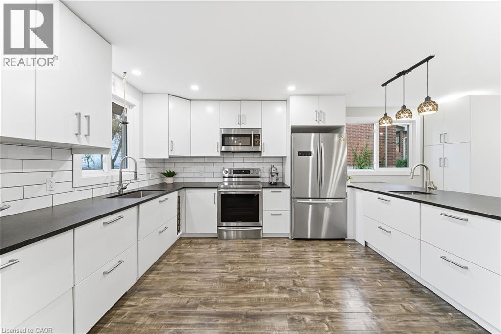 Welcome to 23 Stonegate Drive - a fully renovated family home offering over 2,900sqft of finished living space. Featuring 5 bedrooms, 3.5 bathrooms, and a fully finished walkout basement, this home perfectly combines modern design with a rare natural backdrop. With no rear neighbours and breathtaking views of the Grand River, it offers both privacy and serenity. Every detail has been thoughtfully updated - flooring, trim, doors, lighting, kitchen, bathrooms, and appliances - creating a fresh, contemporary aesthetic throughout. The main floor showcases an impressive kitchen with granite countertops and generous cabinetry, an inviting dining area with a bay window, and a bright living room that opens onto an elevated deck overlooking mature trees. A convenient main-floor laundry room and a 2-piece powder room complete the space. Upstairs, you’ll find four spacious bedrooms and two beautifully renovated bathrooms, including a serene primary suite designed for relaxation. The walkout lower level expands your living space with a large recreation room, cozy gas fireplace, fifth bedroom, updated 3-piece bathroom, and a covered patio leading to your private trail down to the river. Step outside and enjoy the outdoors right from your backyard - walk the river trails, launch a canoe, or simply take in the tranquil views. All this, just minutes from shopping, skiing, highway access, and more. (id:4555)