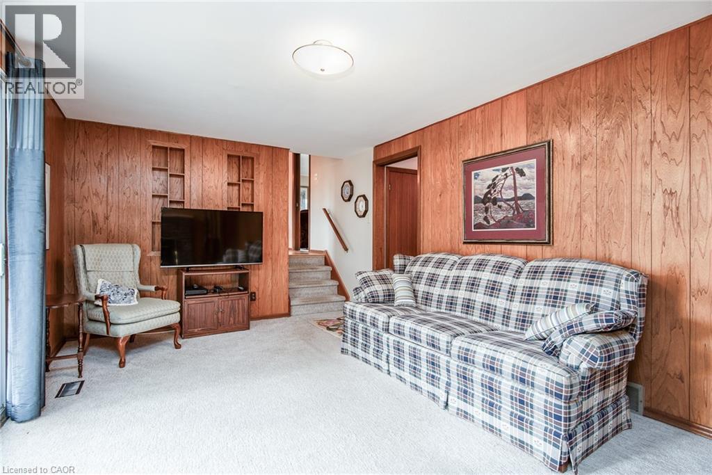 Spacious Side Split in a Sought-After, Tree-Lined Neighbourhood Welcome to 155 Shuh Avenue, a charming single detached side-split located in one of Kitchener's most private and established neighbourhoods. Set on a beautiful, mature lot surrounded by trees, this property offers plenty of space, character, and potential for those looking to make it their own. Inside, you'll find a warm, country-style kitchen featuring solid wood cabinetry, a large farmhouse sink, and a lovely view of the landscaped backyard. All appliances are included. A separate dining room with wainscoting and decorative ceilings opens to an L-shaped living room with a large bay window. Upstairs offers three comfortable bedrooms, each with solid wood or mahogany doors, and a spacious five-piece bathroom. The lower level includes a cozy family room with a gas fireplace and sliders that lead to a partially shaded patio area with privacy lattice. There's also a two-piece bathroom with additional shower, a laundry area with washer, dryer, and laundry tub, plus a large rec room ideal for hobbies or play. Additional space includes a storage/mechanical room with 125-amp service and a bonus storage or play area under part of the house. Other features include: Single car garage with man door and remote opener Driveway parking for up to four vehicles Brick and stone exterior with aluminum siding Rain-guard gutters Water softener and water heater (owned) Air conditioning system This home has great bones and tons of character, ready for your finishing touches and updates. Enjoy living in a quiet, family-friendly area close to highway access, shopping, and great schools—a triple-A location with lasting value. (id:4555)