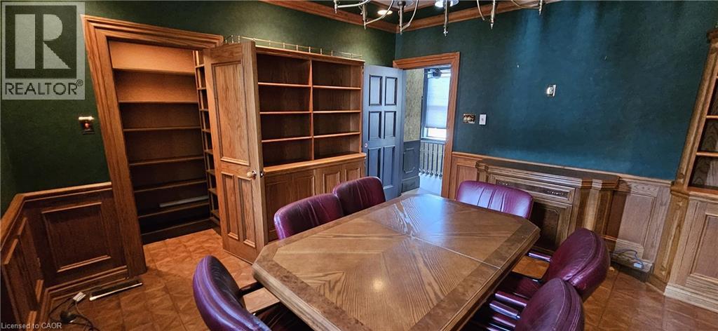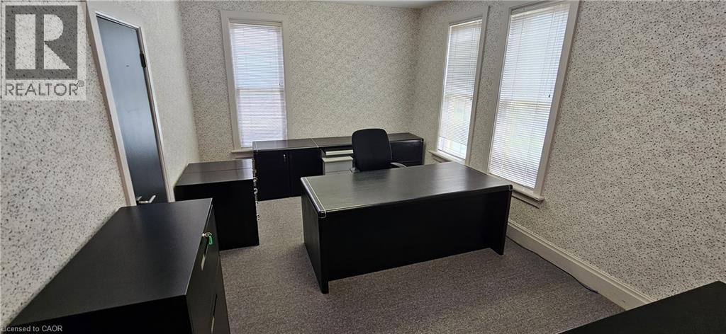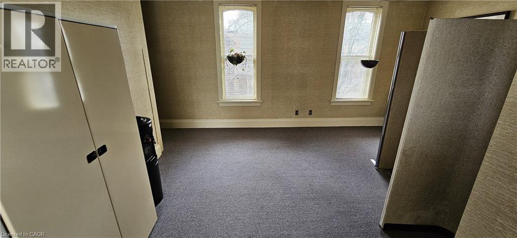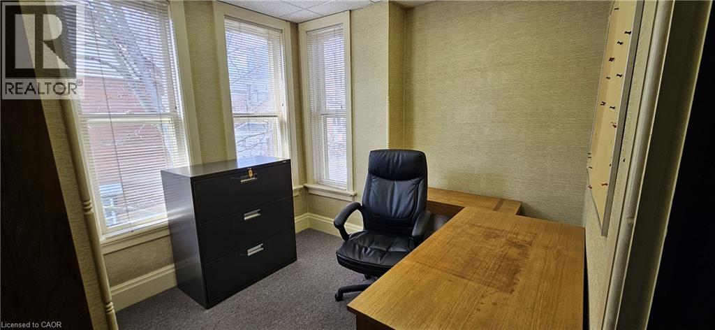 CHARACTER-FILLED OFFICE SPACE. 106 Young Street W – a rare opportunity to lease a piece of architectural charm in the heart of the city. This beautifully maintained commercial property offers approximately 1,000 sq ft of UPPER office space, blending classic design with everyday functionality. From the moment you arrive, the curb appeal captivates with its historic façade, charming covered porch, and manicured landscaping. Step inside to discover a professional yet inviting interior filled with natural light and timeless finishes. The layout includes multiple private offices, a stately boardroom with rich wood paneling and built-in shelving, and common areas that can flex to suit your team’s needs. Large windows, high ceilings, and detailed trim work throughout preserve the building’s original character, while updates ensure comfort and practicality. 1 bathroom, basement storage, cameras with 24 hour video recording, new lights, and filing cabinetry complete the package. Ideal for professionals, creatives, or small businesses looking for a unique setting. Available immediately. (id:4555)