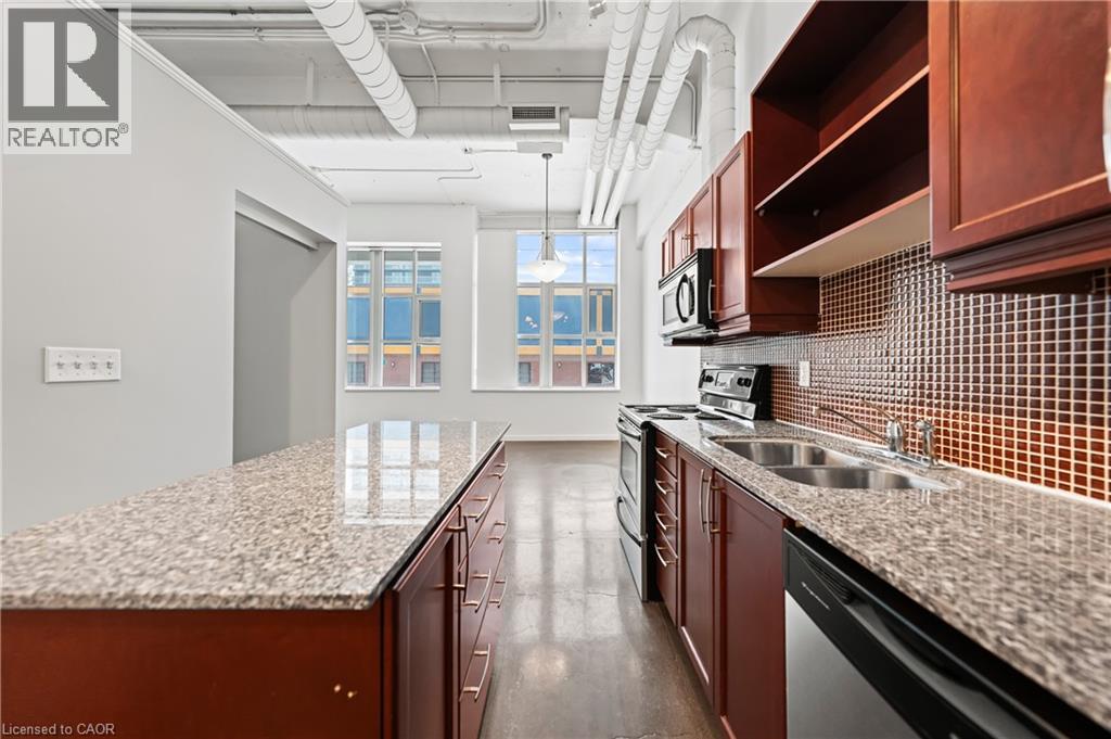 Welcome to the Kaufman Lofts, where style and convenience meet in the heart of Kitchener’s Innovation District. This spectacular 1-bed, 1-bath, 581 SF south-facing suite is now available for lease, offering the perfect blend of modern finishes and an unbeatable location. Step inside to discover a bright, open-concept layout with polished concrete floors, soaring ceilings, and expansive windows that flood the space with natural light. The kitchen is equipped with granite countertops, a centre island, and an undermount sink—designed to be both functional and stylish. Additional features include in-suite laundry, 1 parking space, a storage locker, and access to the building’s beautifully landscaped rooftop terrace with BBQs, ideal for relaxing or entertaining. Just steps from the Tannery, Google, the LRT station, D2L, Miovision, Vidyard, the University of Waterloo’s Integrated Health Campus (School of Pharmacy and the Michael G. DeGroote School of Medicine, a partnership with McMaster University), Victoria Park, and a wide variety of restaurants, pubs, cafés, and boutique shops. Whether you’re looking for convenience, connectivity, or lifestyle, this location has it all. With its combination of design, location, and amenities, this opportunity at the Kaufman Lofts is one you won’t want to miss. (id:4555)