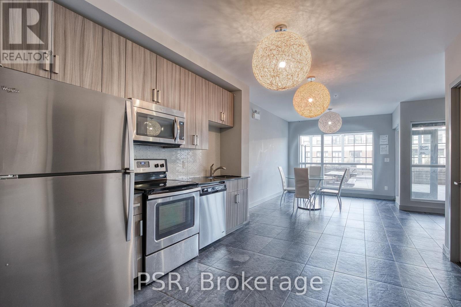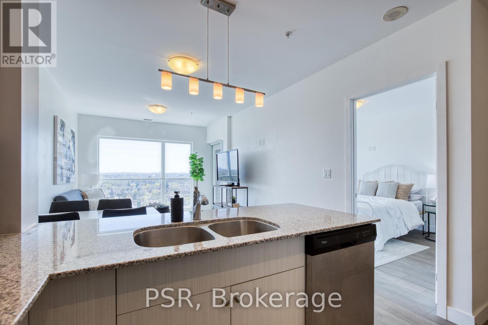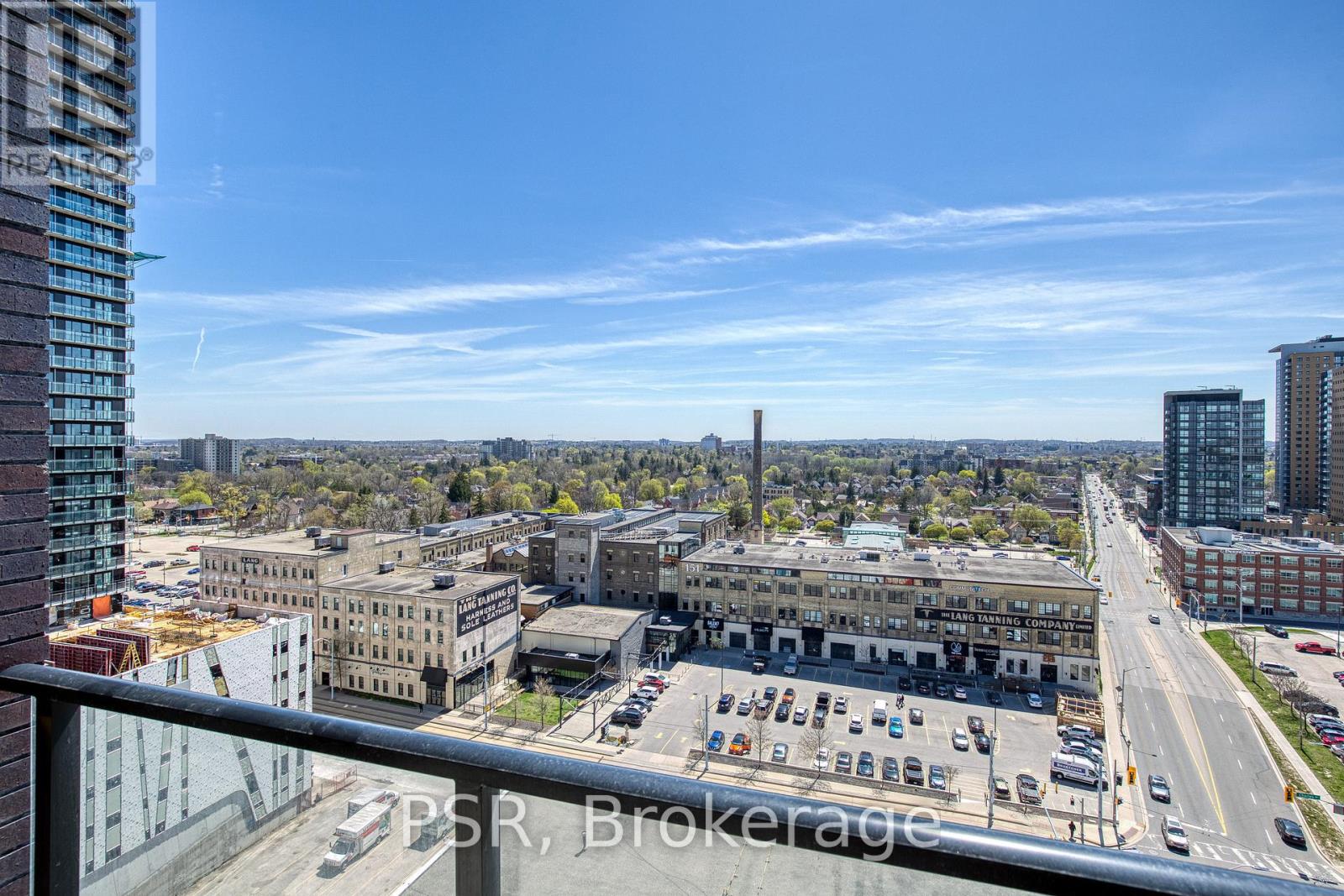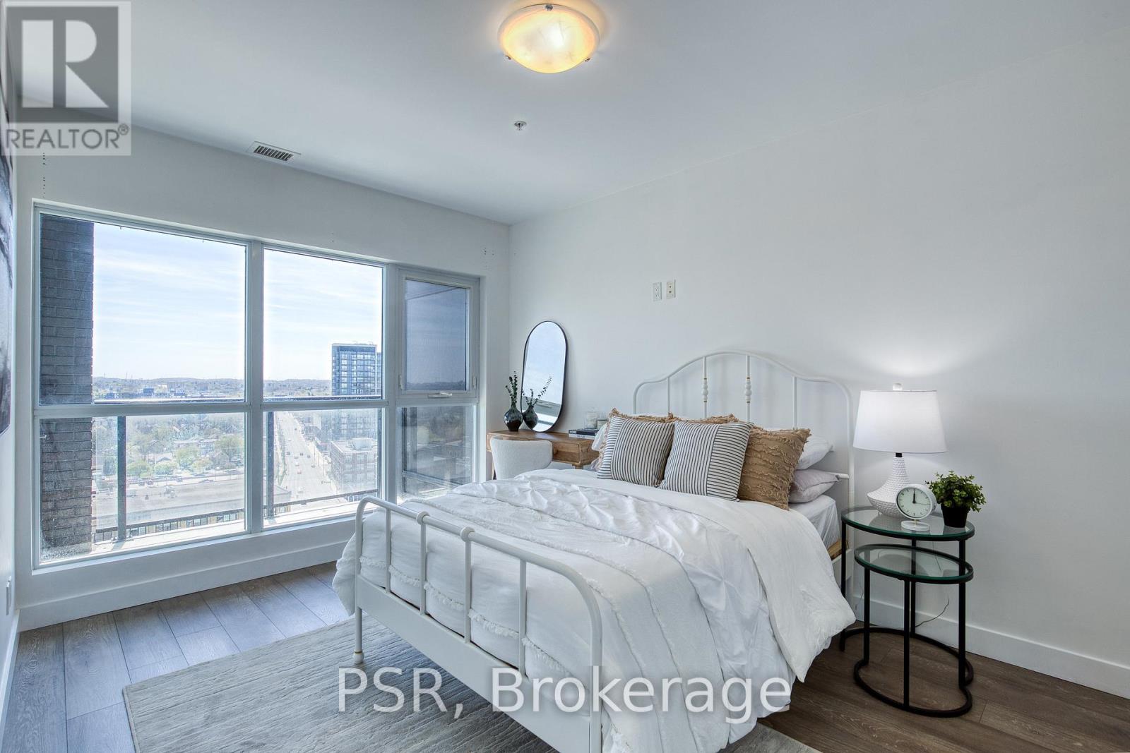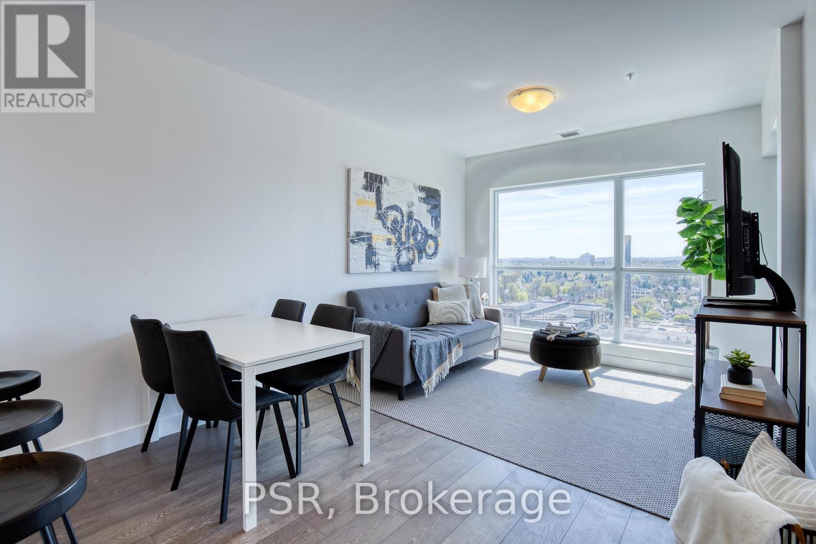 Live in the middle of it all in this bright 1 bedroom plus den condo at 1 Victoria, steps from downtown Kitchener, the LRT, Innovation District, Victoria Park, and shops and restaurants. The open-concept layout offers a functional kitchen with plenty of storage, leading into the living area with floor-to-ceiling windows and walkout to a private balcony with city views. The bedroom is well proportioned with good closet space, and the separate den works well as a home office. A modern 4-piece bathroom, in-suite laundry, and one parking space add everyday convenience. Residents enjoy access to premium amenities, including a fitness centre, theatre/media room, party lounge, and a stunning rooftop terrace, perfect for entertaining or relaxing above the city skyline. This is an excellent option for professionals who want walkability, quick transit access, and an easy commute to Kitchener's tech employers and hospital. (id:4555)