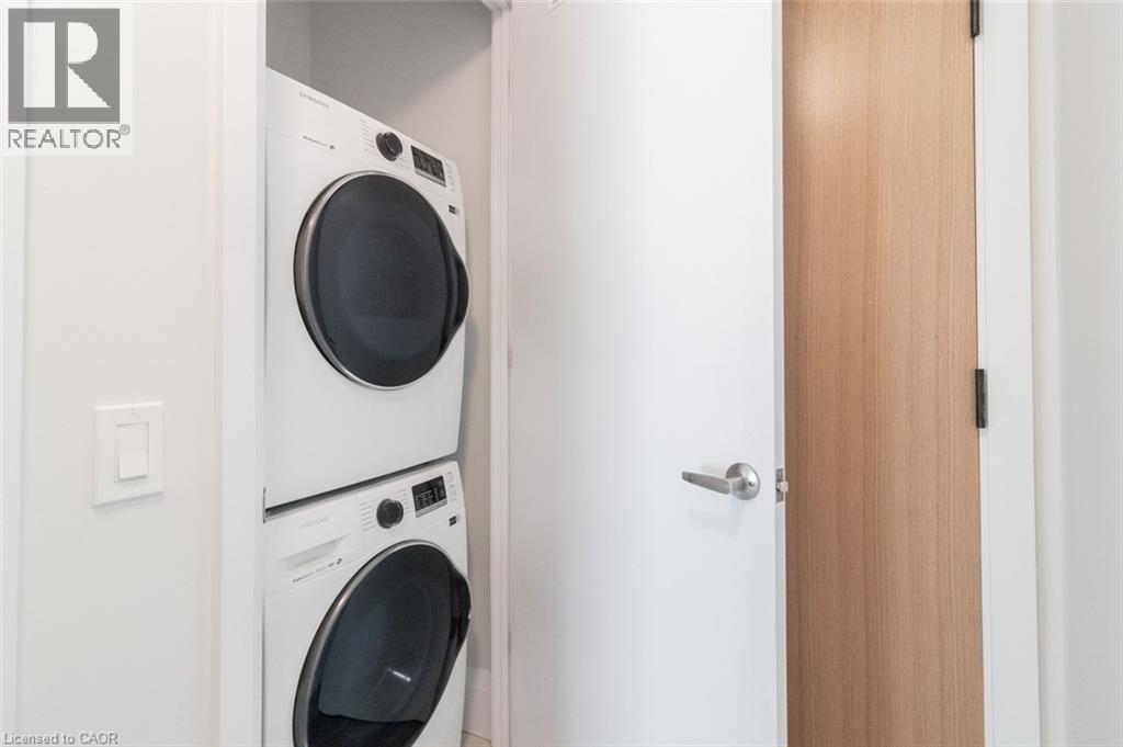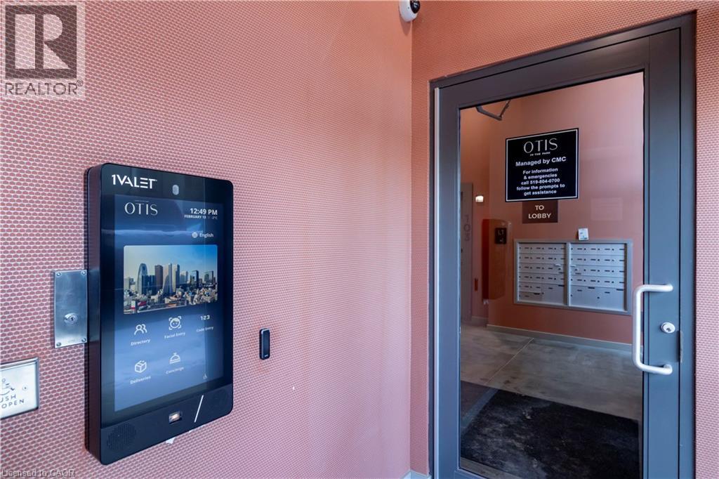 Amazing location situated right by Victoria Park. Close to the Light Rail Transit station, Innovation District, City Hall, restaurants and shops of King Street and so much more. You will love living here in this luxury condo building with secure entry, elevator access, your own private balcony in the heart of DTK. Within walking distance to all that downtown Kitchener has to offer and festivals and events during the summer, this is an ideal location to call home. This spacious 1 bedroom, 1 bath unit has upscale upgrades like a glass shower, kitchen island with breakfast bar, ensuite laundry and wide plank hardwood flooring throughout. Floor-to-ceiling, double glazed windows, double glazed balcony door. Caesarstone kitchen countertops, caesarstone seamless backsplash, Blomberg® European appliance package, including panel-ready refrigerator, dishwasher, wall mounted oven, and modern cooktop. Home automation package including smart thermostat, lighting and locking system, secure wireless internet in suites, security cameras around perimeter of the building and a pet washing station. Victoria Park features: Victoria Park Pavilion, Picnic shelter & adjacent summer kitchen, Playground & splash pad, Access to the Iron Horse Trail, Horsehoe pit & basketball court, Historic Clock Tower, ‘The Boathouse’ restaurant on the lake, Winter rink & open space for soccer. NO PARKING AVAILABLE (id:4555)