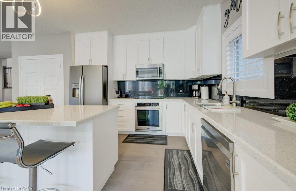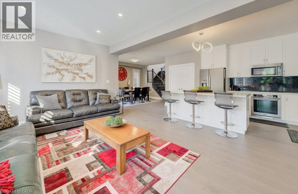 Welcome to Your Dream Home in Prestigious Kiwanis Park! Built in 2018 and located in one of Kitchener's most desirable neighbourhoods, this beautifully designed home offers an exceptional layout, premium finishes, and unbeatable access to both nature and city conveniences. A concrete driveway and striking curb appeal welcome you into a spacious front foyer, setting the tone for the impressive interior. The main floor features a sun-filled open-concept living space with a custom media wall and sleek gas fireplace—perfect for relaxing or entertaining. The modern kitchen is loaded with quartz countertops, stainless steel appliances, a pantry, and an oversized island with seating. A convenient 2-piece bath and main-floor laundry add ease to everyday living. Upstairs, enjoy a large family room—ideal for a playroom, media lounge, or home office. The primary suite is a true retreat, featuring a spacious walk-in closet and a luxurious 5-piece ensuite complete with a separate tiled shower with glass doors, a soaker tub, and a double vanity. Two additional bedrooms share their own spacious 5-piece bathroom, thoughtfully designed with a vanity and sink on each side, and a separate door leading to the toilet and shower area—ideal for shared use and added privacy. Step outside to a covered deck that extends your living space into the backyard—perfect for outdoor dining and lounging. The large unfinished basement offers endless potential for future development. All of this within walking distance to Kiwanis Park, scenic trails, expansive green spaces, and the Grand River. You're just minutes from both universities, Conestoga Mall, Highway 85, and with quick access to the 401. This is your chance to own a modern, move-in-ready home in one of Waterloo’s most family-friendly and nature-rich communities—don’t miss it! (id:4555)