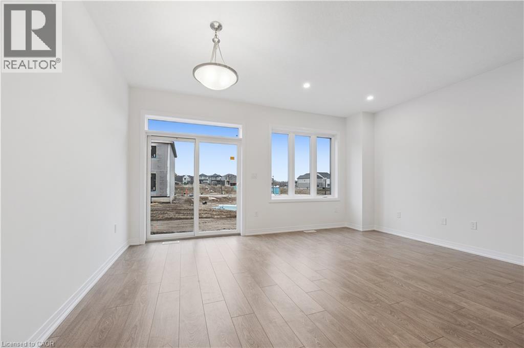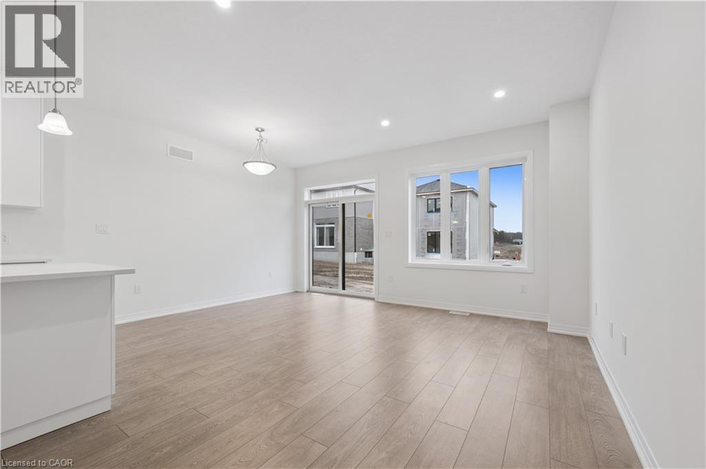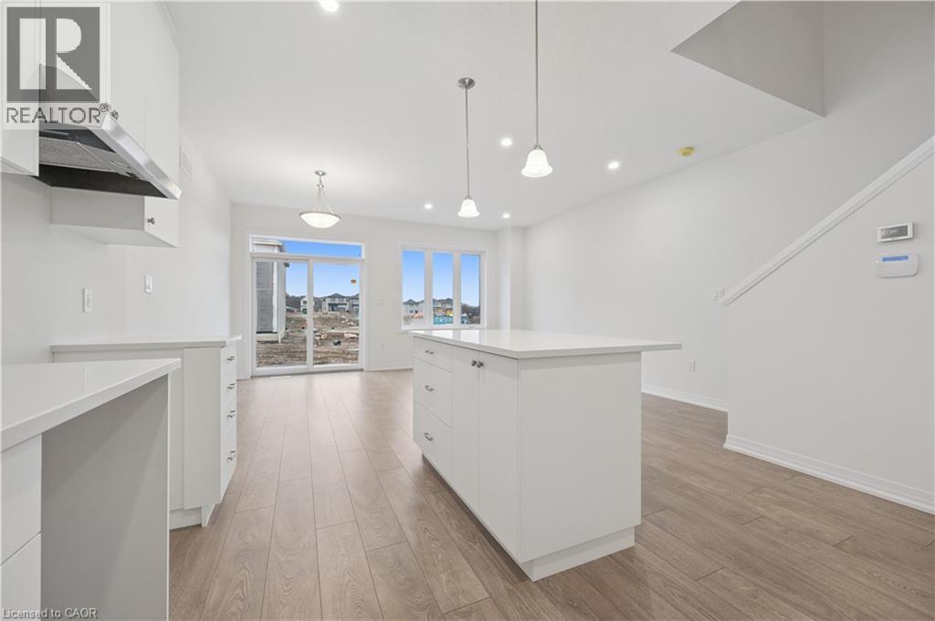 Brand new, FREEHOLD townhouse, ready now, at Harvest Park in Doon South, with finishes chosen by the builder's design team. 9 ft ceiling on the main floor, kitchen with white cabinetry, quartz countertops & island. On trend light-toned laminate flooring on main floor. At the 2nd level, the primary bedroom is spacious and offers a large walk-in closet. The main, upstairs bath offers double vanity & quartz countertops. Three additional bedrooms complete this level. Excellent location in a sought-after neighbourhood - near HWY 401 access, Conestoga College and beautiful walking trails. Energy star certified! CURRENT PROMOTION - enjoy A FREE stainless FRIDGE, STOVE AND DISHWASHER. Sales Centre located at 154 Shaded Cr Dr in Kitchener - open Monday, Tuesday, Wednesday, 4-7 pm and Saturday, Sunday 1-5 pm. 3 bedroom, 2.5 bath version of this layout (same main floor) are also available. (id:4555)
