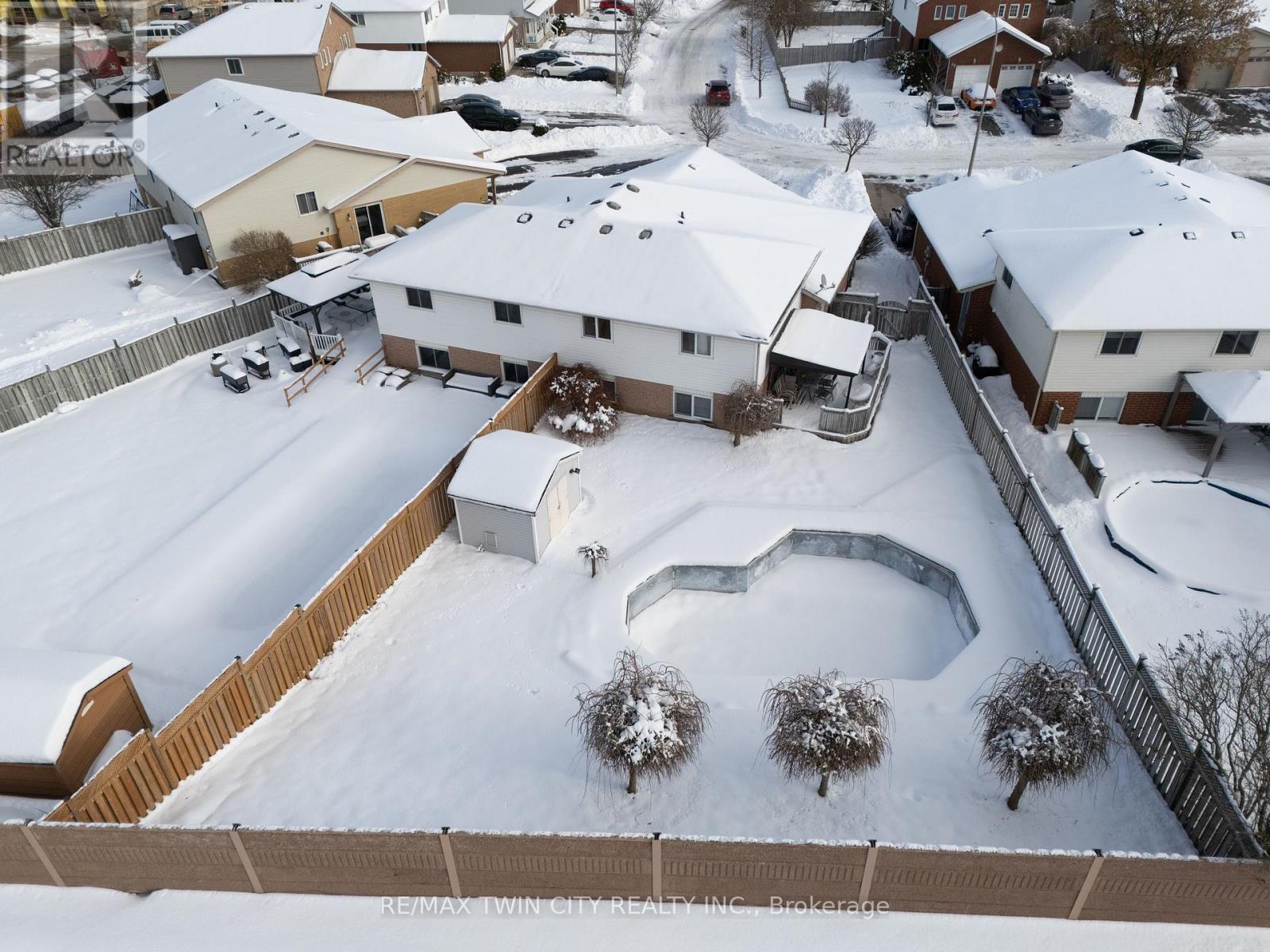 Welcome home to 28 Ridgeway: a beautifully maintained semi-detached home nestled in a fantastic, family-friendly neighbourhood. This spacious 3-bedroom, 2-bathroom residence offers an impressive layout and is completely carpet-free, featuring stylish laminate flooring throughout. Step inside and be impressed by the generous living spaces. The bright front living room is perfect for welcoming guests and hosting gatherings, offering flexibility to suit your lifestyle. The well-appointed kitchen comes fully equipped with appliances (dishwasher sold as-is), making it both functional and inviting. Adjacent to the kitchen is a cozy dinette area, ideal for enjoying family meals. Just a few steps down, the expansive family room offers the perfect place to relax or entertain, whether you're hosting friends or enjoying movie nights with family by the fireplace (note: fireplace has not been used by current owners). This level also features a stunning 3pc bathroom, complete with an oversized glass shower, bench seating, rain shower head with mosaic tile finishes. Upstairs, you'll find 3 well-sized bedrooms and a 4pc bathroom, providing comfortable space for the whole family. The lower level is insulated and drywalled offers a laundry area, ample storage and a versatile rec room, ideal for future playroom, additional living space or a home office. The pie-shaped backyard is truly an entertainer's dream. Enjoy at deck, an in-ground pool surrounded by composite decking (pool sold as-is; liner requires replacement), beautiful landscaping, a storage shed and no rear neighbours, offering full privacy. Recent updates include New water softener (2023), AC 2019 and Washer only couple years old. Ideally located with easy access to Highway 7/8, this home allows you to get anywhere with ease while still enjoying nature year-round at the nearby Huron Natural Area. Close to schools, parks, shopping, this exceptional family offer an opportunity you won't want to miss-book your showing today! (id:4555)