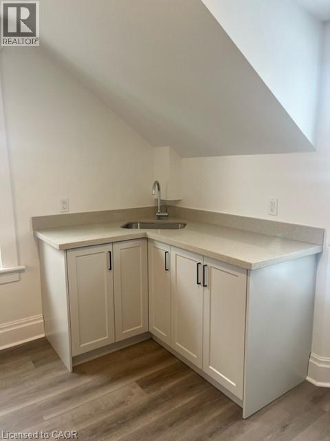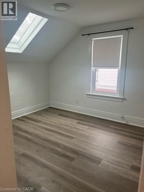 Beautifully renovated 2 bedroom upper unit in this legal non-conforming duplex, conveniently located in Downtown Kitchener! Completely updated with bright tasteful kitchen featuring granite counters and newer appliances, in suite laundry, new luxury vinyl plank flooring throughout (carpet free!), 2 bedrooms and living room with skylight. Updated 4 piece bathroom! Large covered front porch (exclusive use). 2 parking spots! Unfinished attic is great for additional storage space. Tenant pays hydro. Very conveniently located within walking distance to LRT and shopping. March 15 possession date available. Great for single young professional! Safe neighbourhood. (id:4555)
