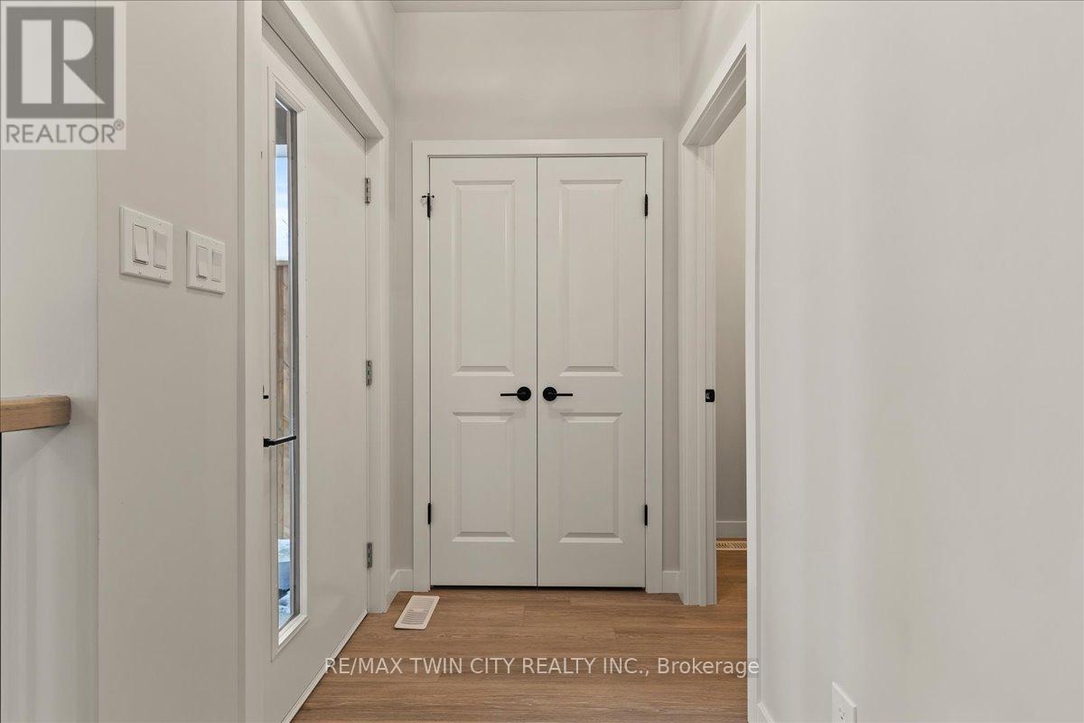 Beautiful rental! This energy efficient and modern compact unit offers luxury finishes comparable to a custom home. At 860 square feet and offering 2 bedrooms, 1.5 bathrooms, this unit comes with large main floor windows, 9' ceilings and a wide open layout making for a bright space. The living room, kitchen, and powder room all occupy the main floor. The two-tone kitchen is a combination of a white oak finish with satin grey floor to ceiling cabinets and soft close mechanisms along with quartz countertops throughout the kitchen and bathrooms. Brand new stainless steel kitchen appliances and stackable laundry washer and dryer. The black hardware contrasts the white trim and matches the black plumbing fixtures throughout. LVP flooring in the entire unit matches the oak staircase and iron spindles leading to the basement. Two bedrooms; one with built in drawers, a laundry, and a four-piece bathroom make up the lower level. Conveniently Country Hill location! (id:4555)