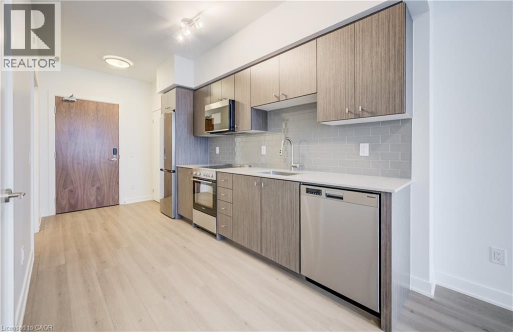 When others are hesitant, this is the moment to buy—welcome to DUO Station Park. This exceptional 1-bedroom, 1-bathroom condo offers carefree living in one of Kitchener’s most sought-after, evolving communities. Enjoy north-west exposure from your private balcony, where breathtaking sunsets become part of your daily routine. The bright, open-concept layout features a modern kitchen with new appliances, in-suite laundry, and a convenient location close to the elevator, along with one parking space. Short-term rentals (Airbnb) are permitted with this unit, offering great potential for additional income. As DUO Station Park continues to grow, so do its impressive amenities—designed for comfort, accessibility, and lifestyle. Entertain in the party room, enjoy bowling lanes, relax in the swim spa with lift access, or take advantage of the fitness centre and Peloton room. Outdoor features include a children’s play area and a half running track, offering something for everyone. Perfectly located in Midtown, you’re just minutes from Uptown Waterloo and Downtown Kitchener, across from the Google building with transit LRT, dining, tech hubs, Universities and everyday conveniences right at your doorstep. A smart investment, a vibrant lifestyle, and a place you’ll love to call home. (id:4555)