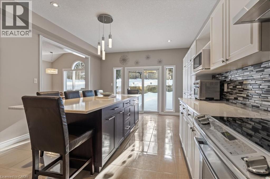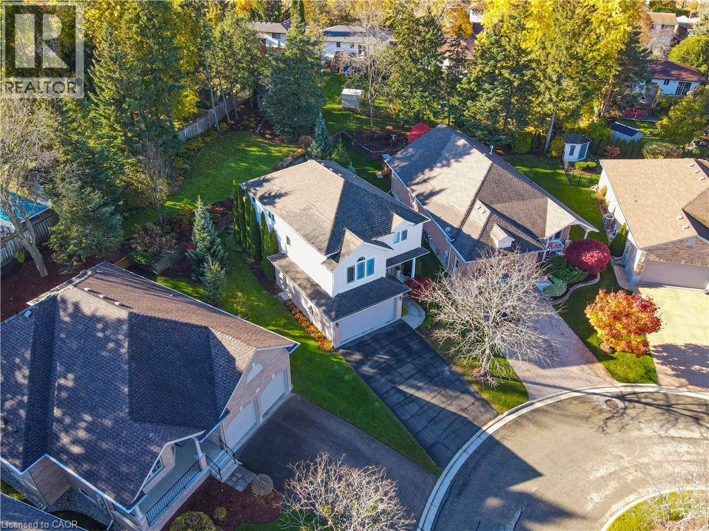 Tucked away on a quiet, child-safe cul-de-sac in Kitchener’s PRESTIGIOUS WESTMOUNT ENCLAVE, this elegant CUSTOM-BUILT residence offers timeless style, modern comfort, and a coveted location just steps from Westmount Golf & Country Club. Set on a private, just under a QUARTER-ACRE PIE-SHAPED LOT, the property is wrapped in lush, mature trees and enhanced by professional landscaping, creating a spectacular treed oasis ideal for outdoor living. A 2-TIER DECK sets the stage for summer entertaining, barbecues, and peaceful evenings surrounded by nature. The yard also features an IN-GROUND IRRIGATION SYSTEM and a ROUGH-IN FOR A HOT TUB, oversized shed for storage, adding to the functionality and future potential of the space. Inside, over 2,800 SQ FT of thoughtfully designed living space features soaring VAULTED CEILINGS, a striking 22-FOOT KITCHEN with island seating for six, and expansive formal living and dining rooms, both finished with RICH HARDWOOD FLOORING — perfect for hosting and entertaining in style. Upstairs, a warm and inviting FAMILY ROOM WITH VAULTED CEILINGS and hardwood floors leads to three generously sized bedrooms. The PRIMARY SUITE is a standout, offering DOUBLE CLOSETS and a spacious, fully renovated SPA-LIKE ENSUITE — a peaceful retreat with the space, natural light, and luxury finishes today’s buyers expect. A spacious MAIN BATHROOM for kids features a DEEP SOAKER TUB, blending function and comfort for busy family life. The FULLY FINISHED LOWER LEVEL adds even more versatility, featuring a RECREATION SPACE perfect as a kids’ play area, home gym, or teen lounge, along with a PRIVATE BEDROOM & FULL 3 PC BATHROOM ideal for a teenager, guest suite, or extended family. Discreetly luxurious and impeccably maintained, this executive home seamlessly blends LOCATION, LIFESTYLE, AND LAYOUT in one of Kitchener’s most sought-after CUSTOM HOME COMMUNITIES. some photos virtually staged (id:4555)